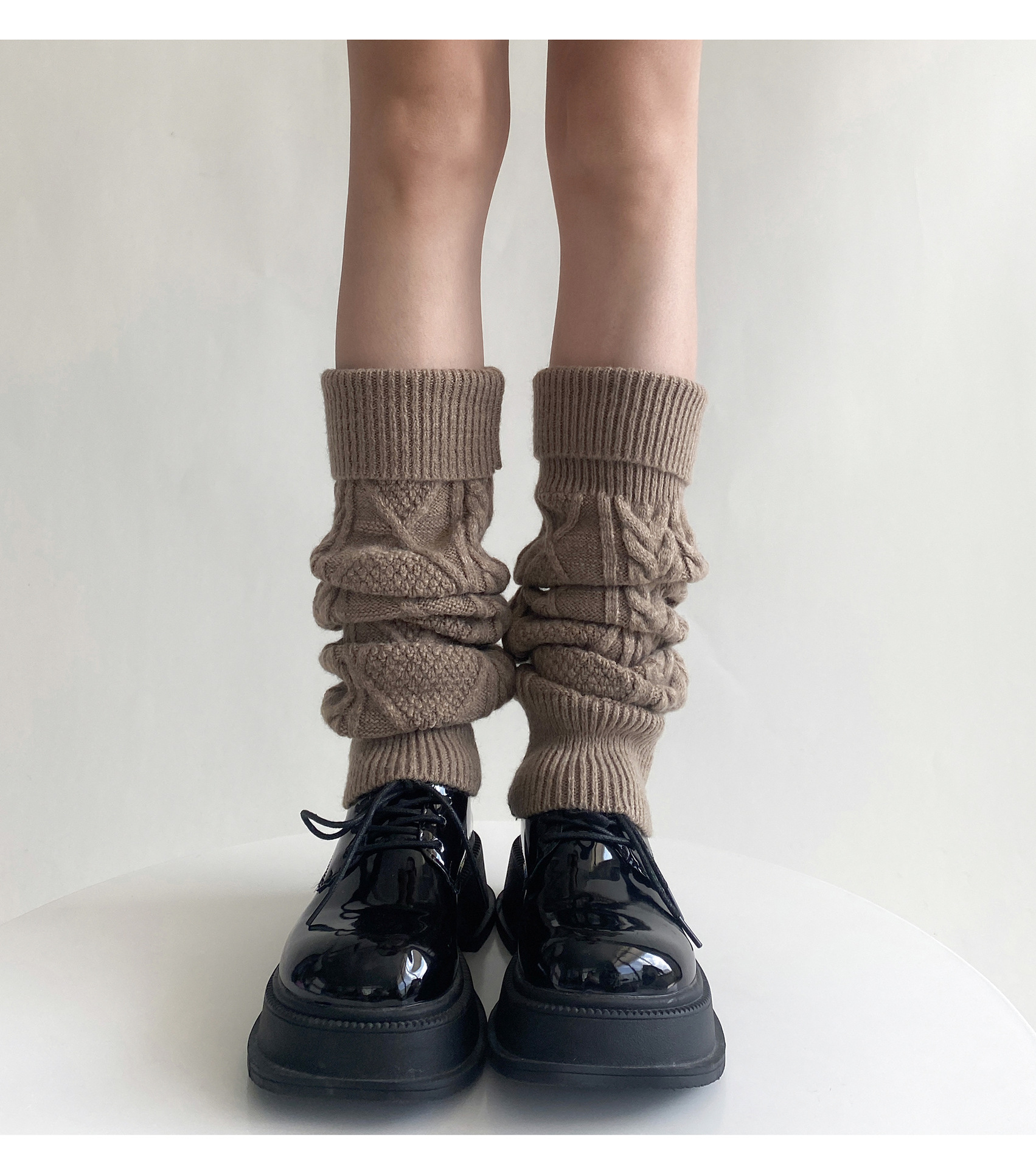 트위스트 두꺼운 바늘 양말 가을과 겨울 따뜻한 한국 울 다리 커버 JK 힙 부츠 단색 독특한 옷깃 송아지 양말