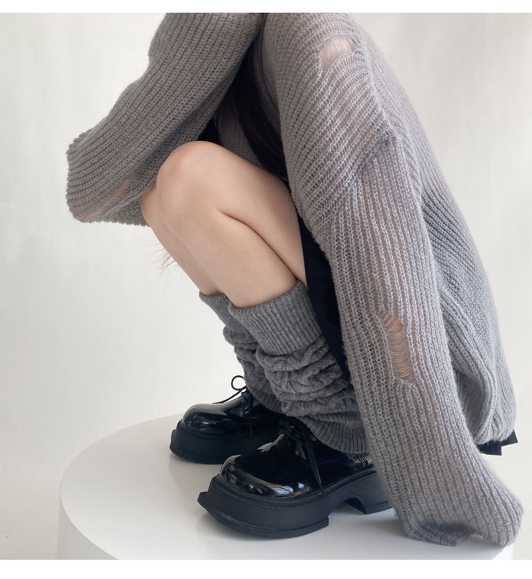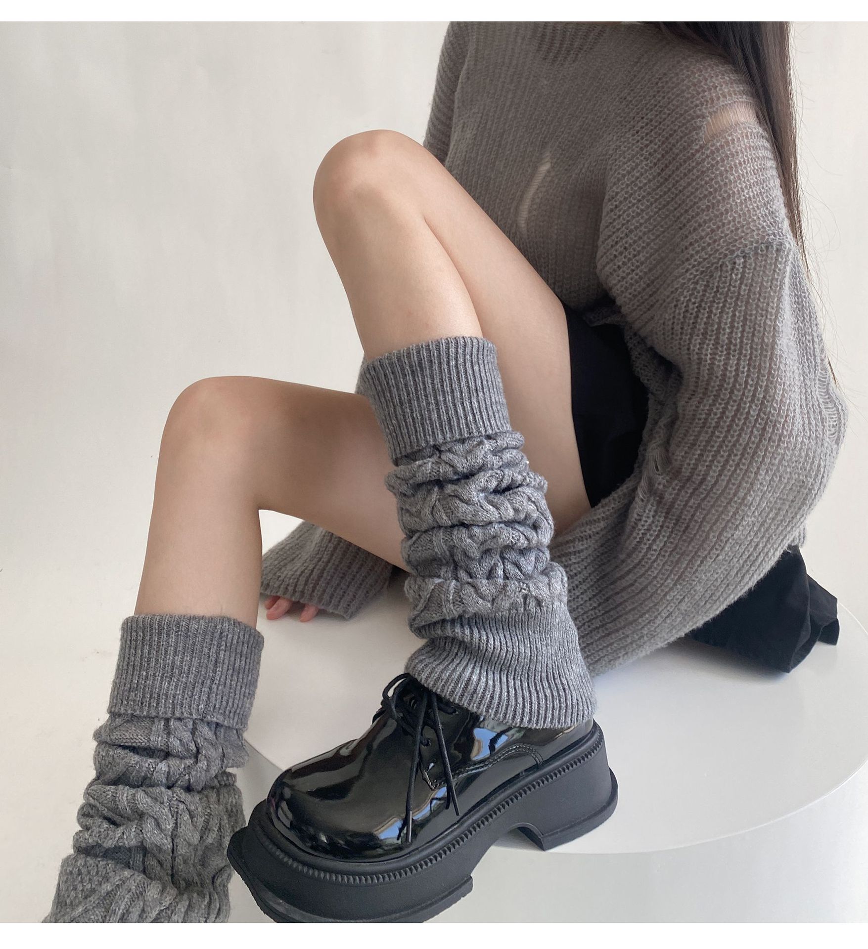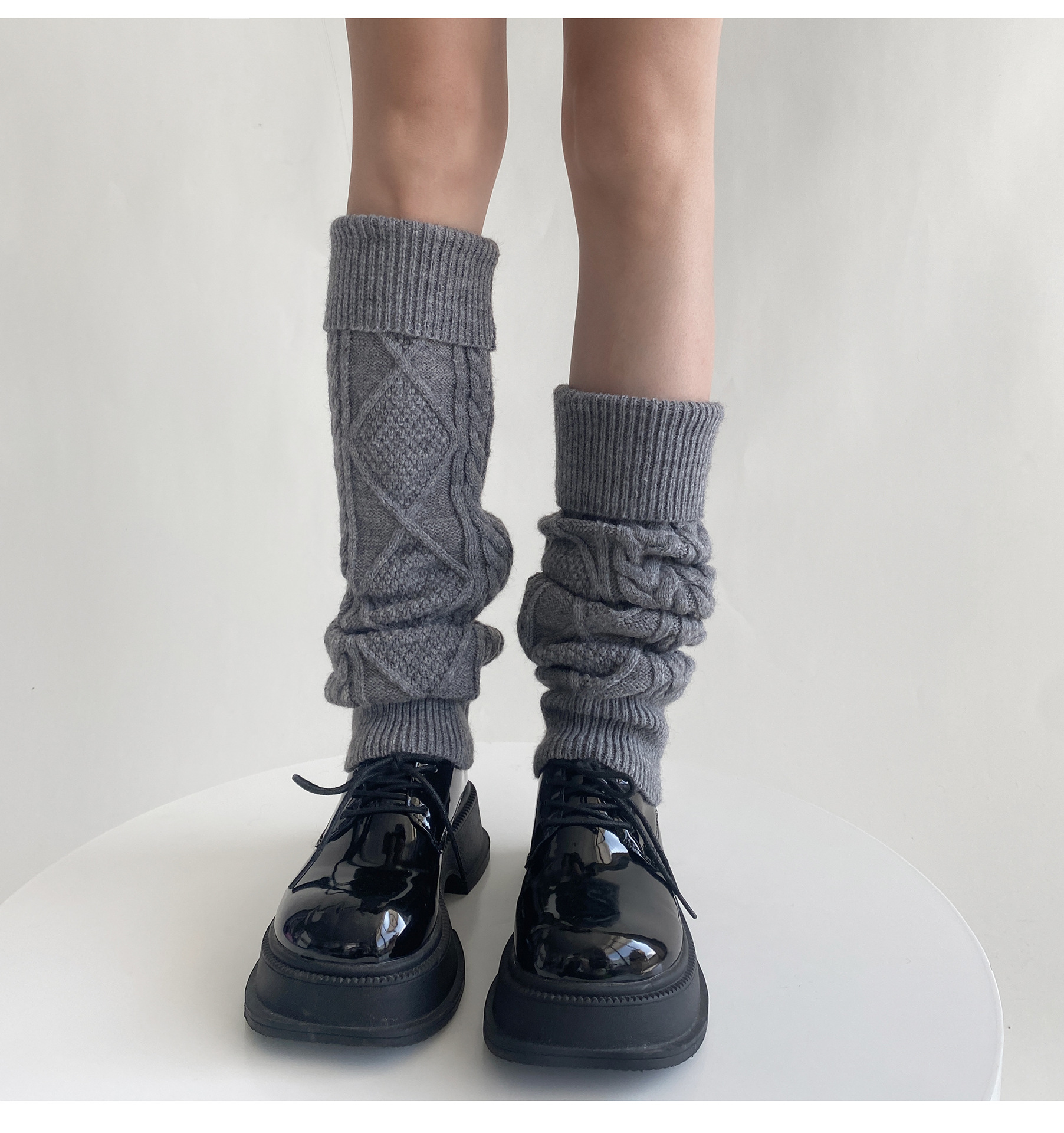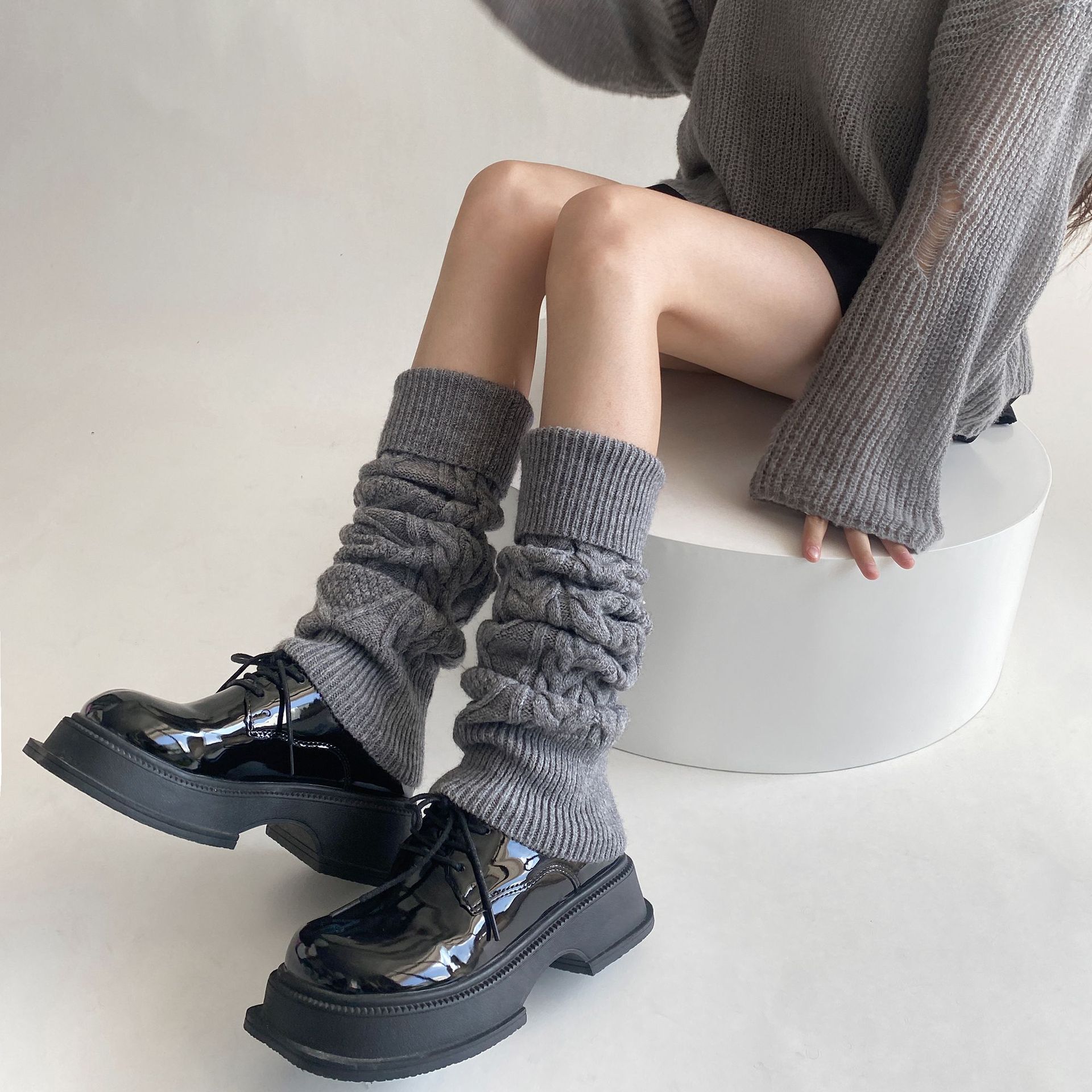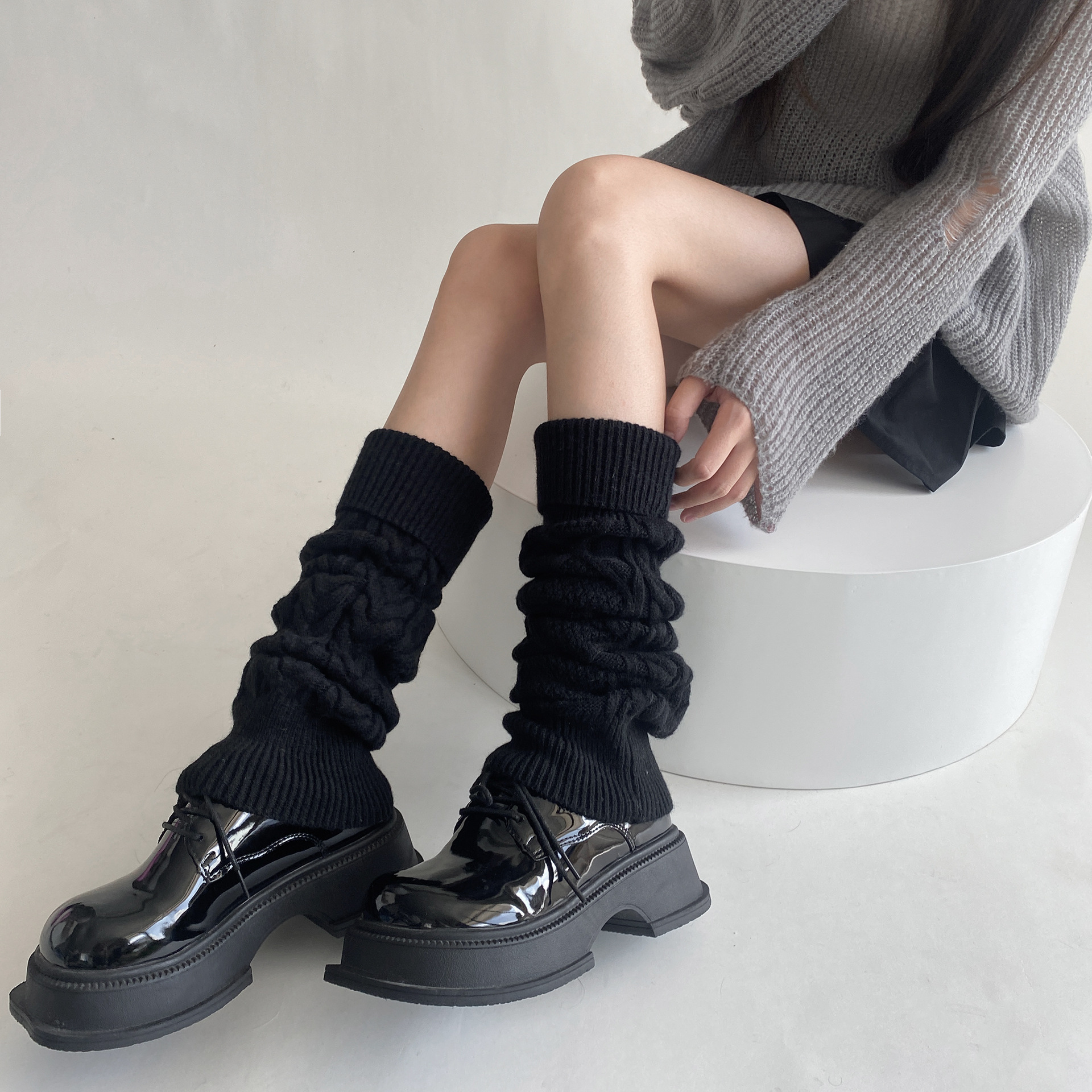 트위스트 두꺼운 바늘 양말 가을과 겨울 따뜻한 한국 울 다리 커버 JK 힙 부츠 단색 독특한 옷깃 송아지 양말스토어 가기