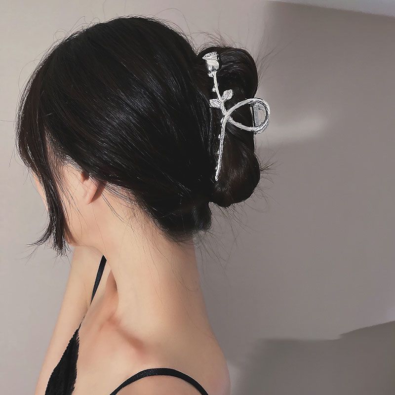 로즈 그랩 클립 여성용 금속 상어 머리핀 백 헤드 하이 포니 테일 그랩 클립 일본-한국 스타일 하이 엔드 센스 모자 여성용 클립