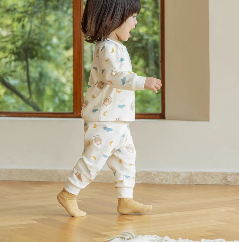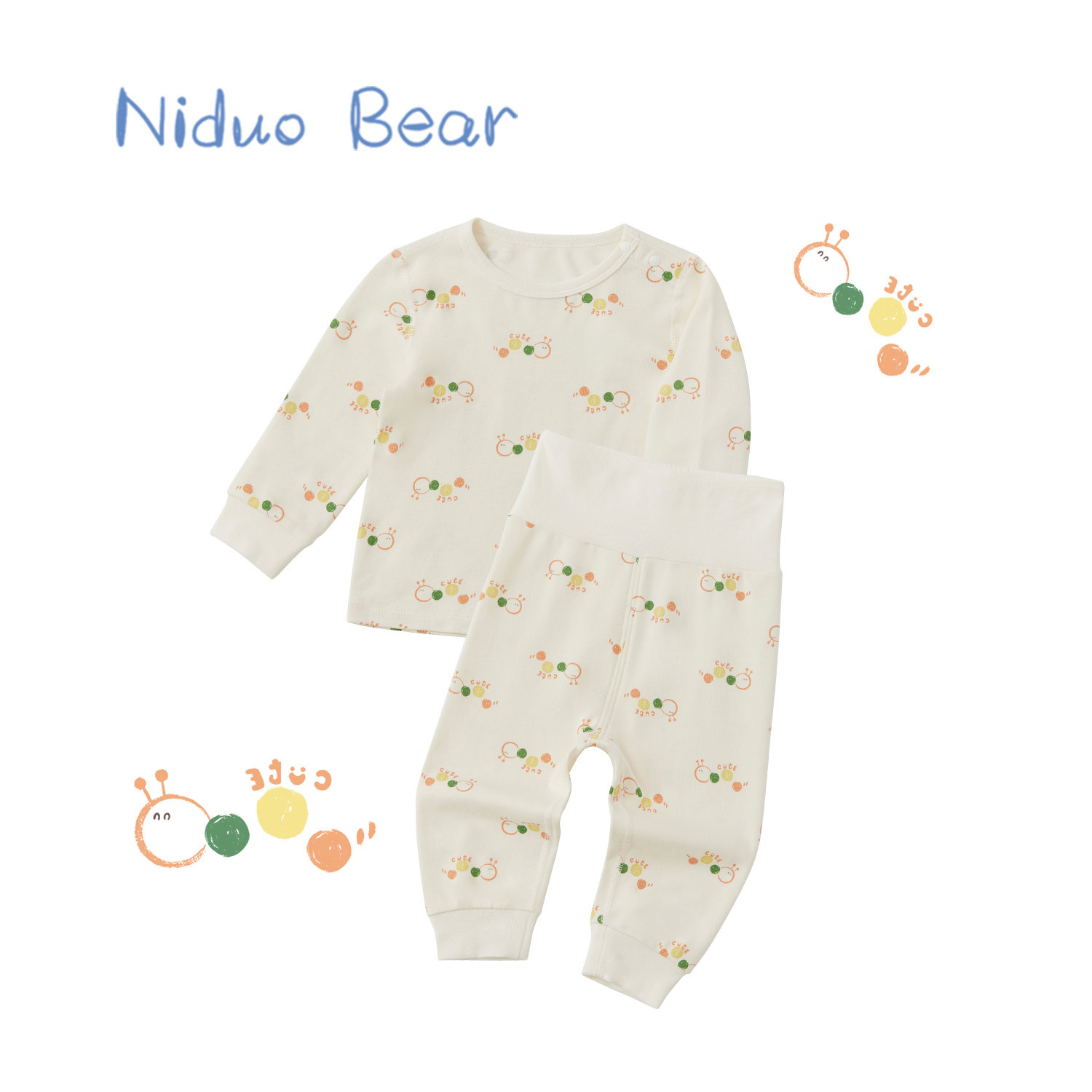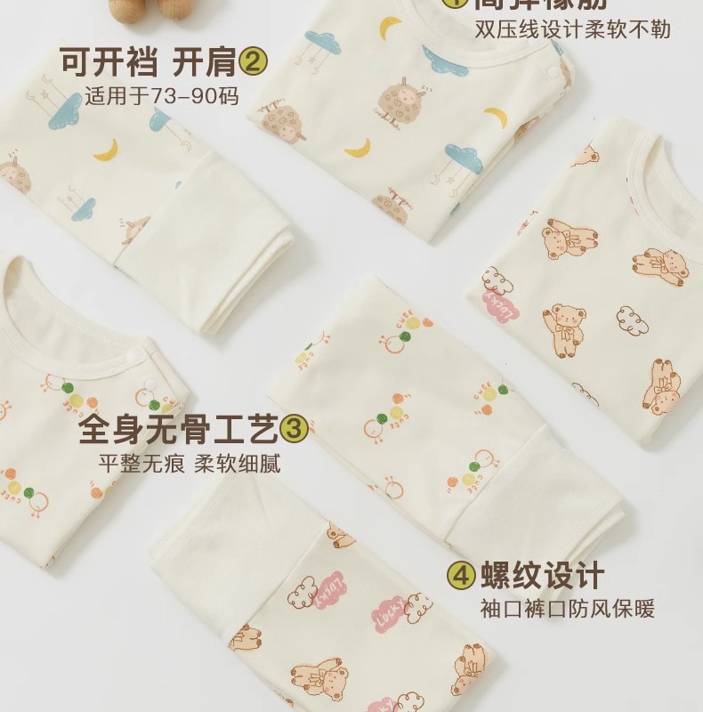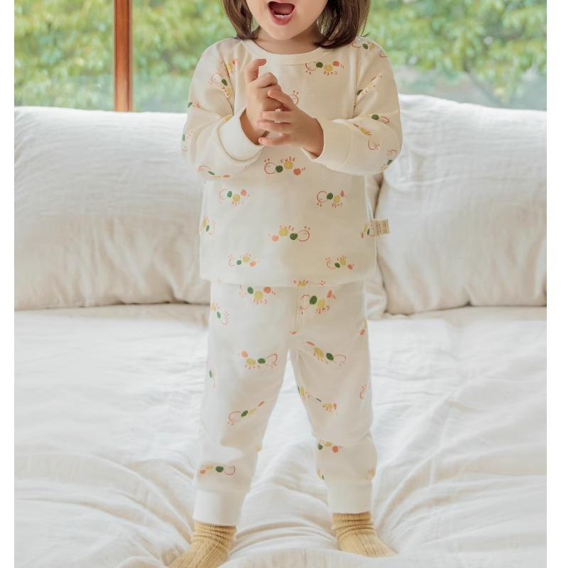 Nido 곰 봄과 가을 아기 하이 웨이스트 배꼽 보호 속옷 세트 어린이 가을 옷 세트 잠옷 아기 면 따뜻한