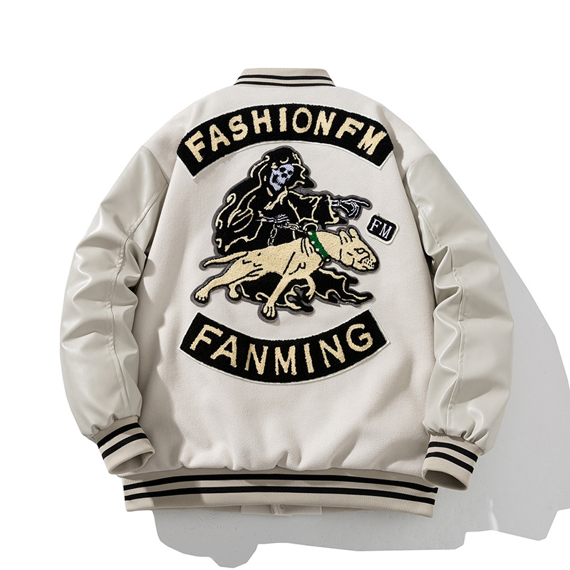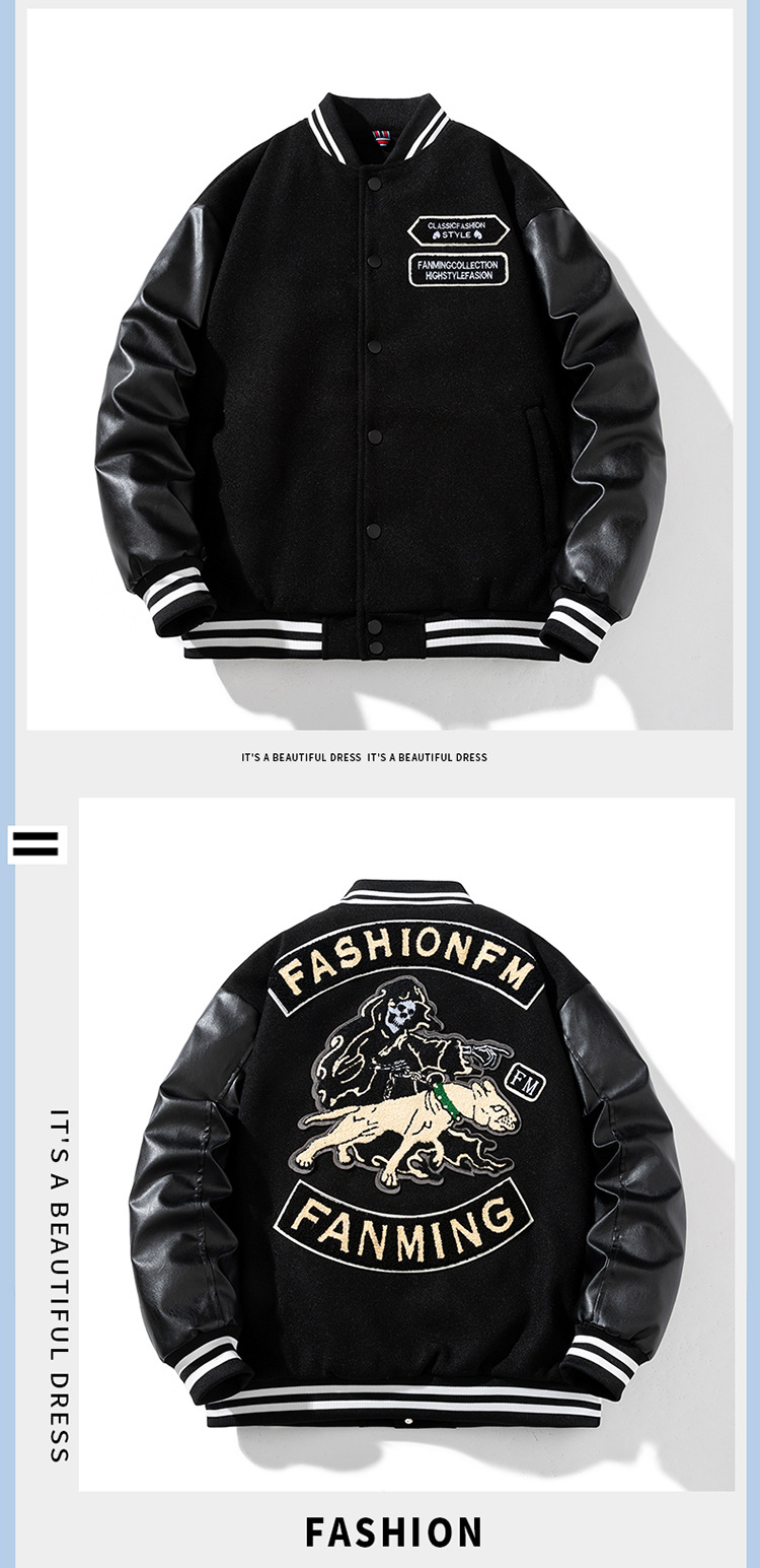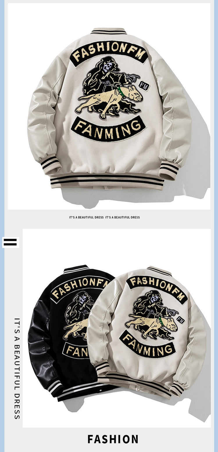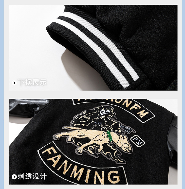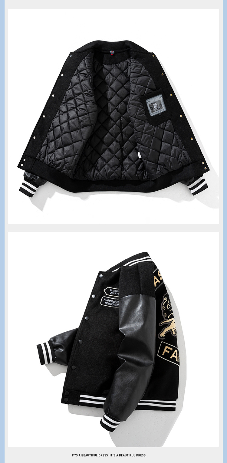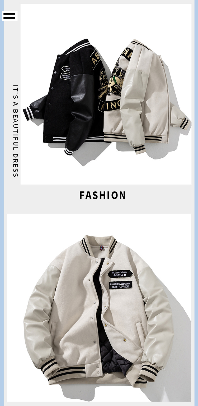 미국 야구 세트 남자의 가을과 겨울 두꺼운 폭격기 재킷 느슨한 스티치 유행 빈티지 퀼트 PU 가죽 자켓스토어 가기