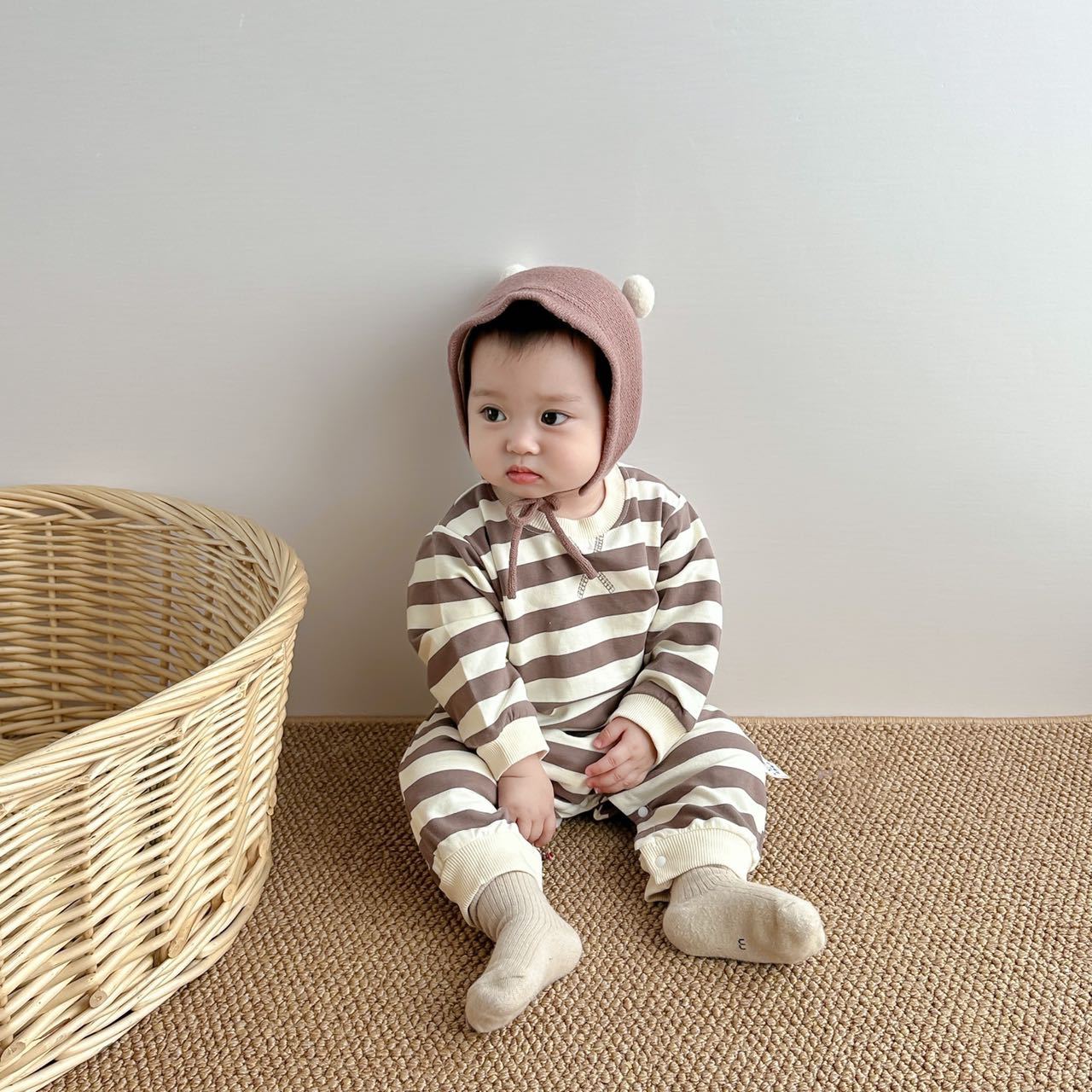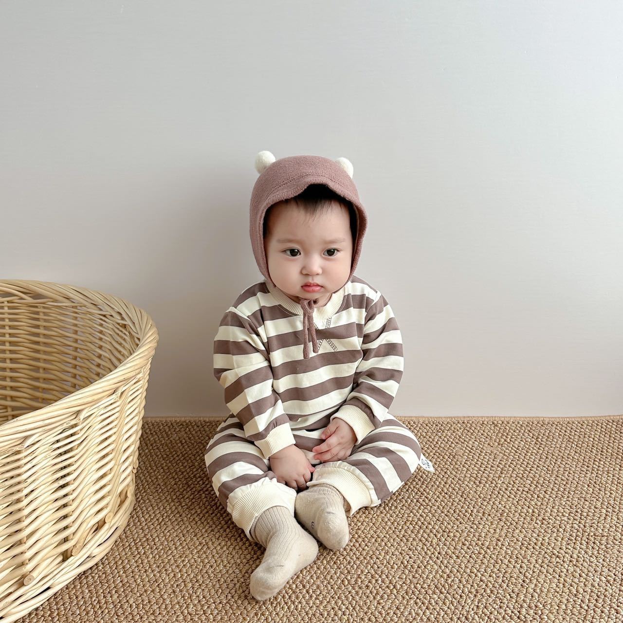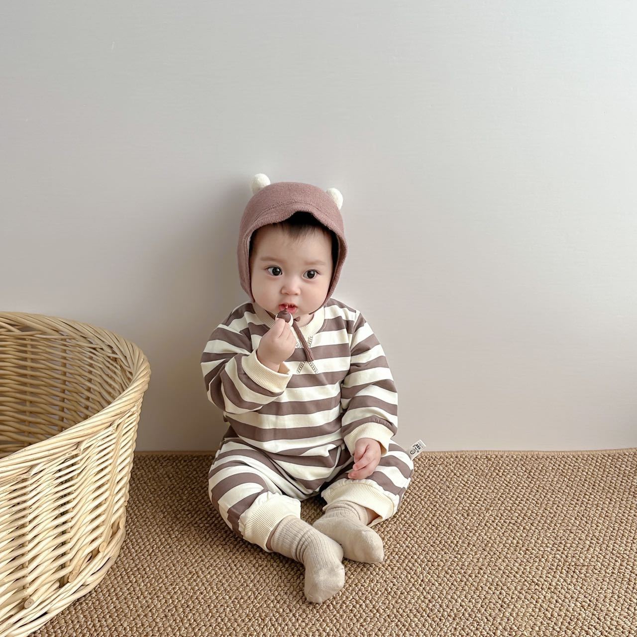 한국식 아동복 아기 봄과 가을 면 편안한 스트라이프 스웨트 셔츠 점프 수트 아기 긴 등산복