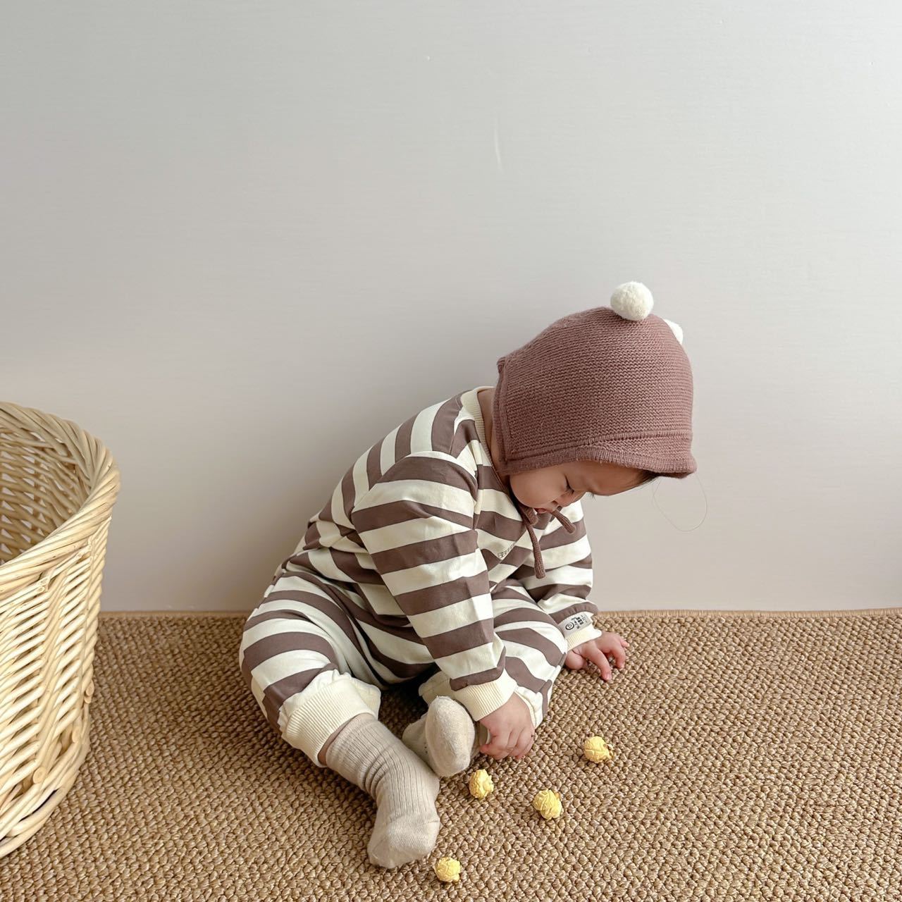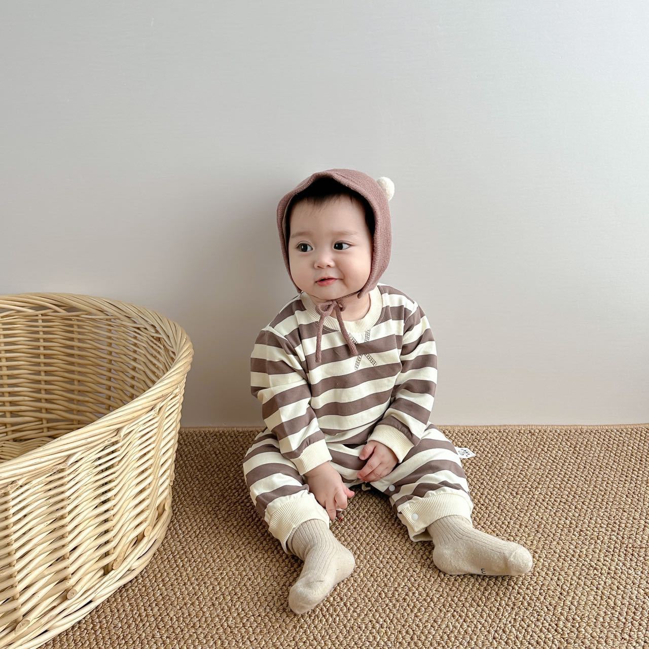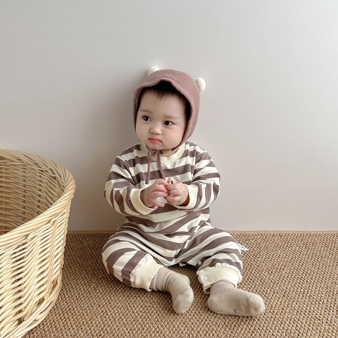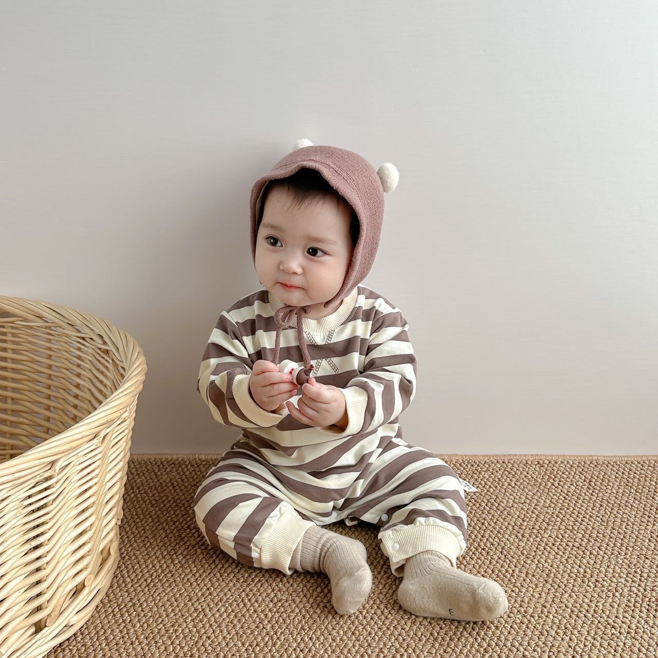 한국식 아동복 아기 봄과 가을 면 편안한 스트라이프 스웨트 셔츠 점프 수트 아기 긴 등산복