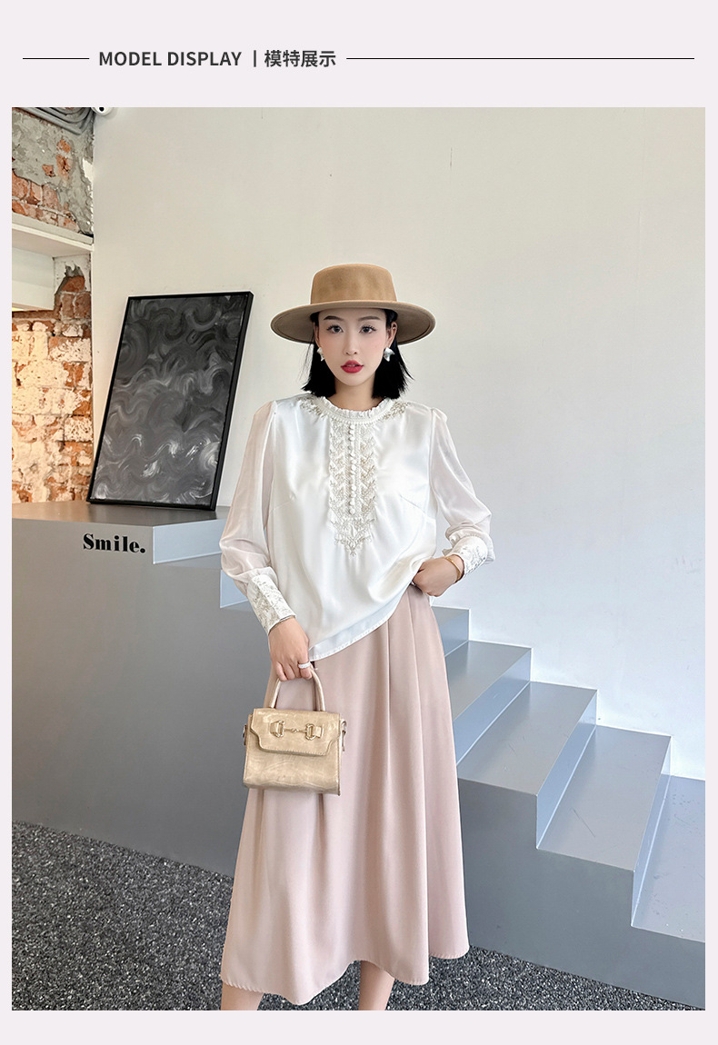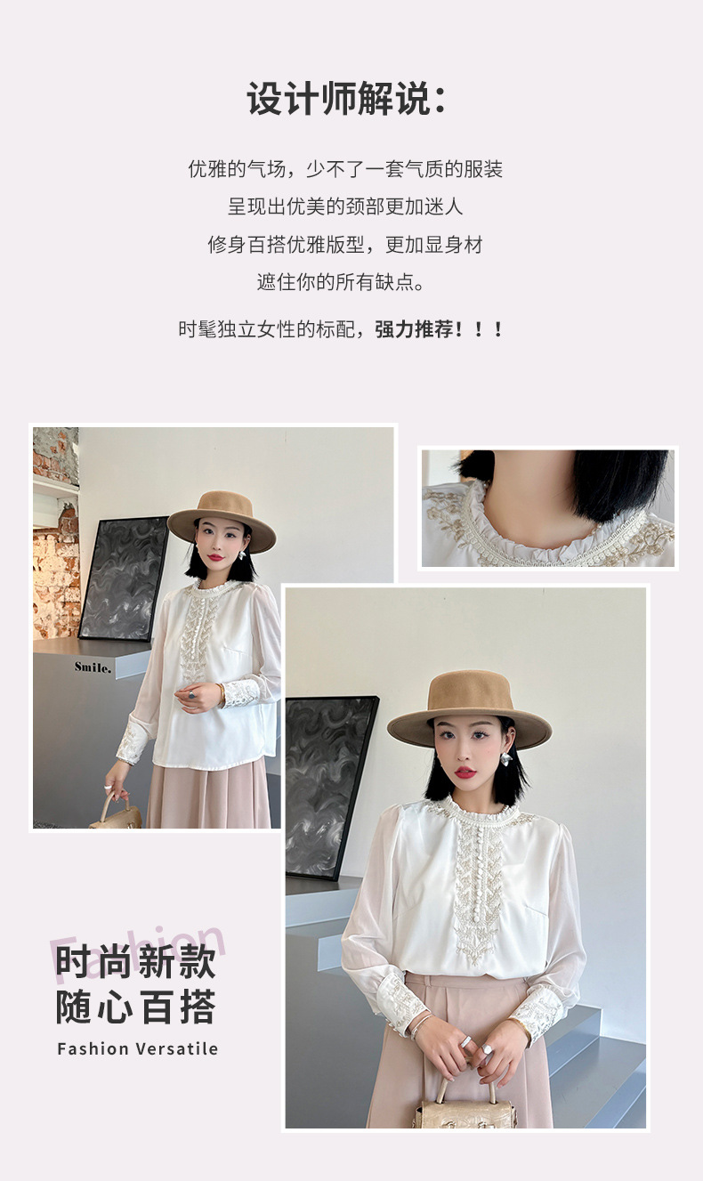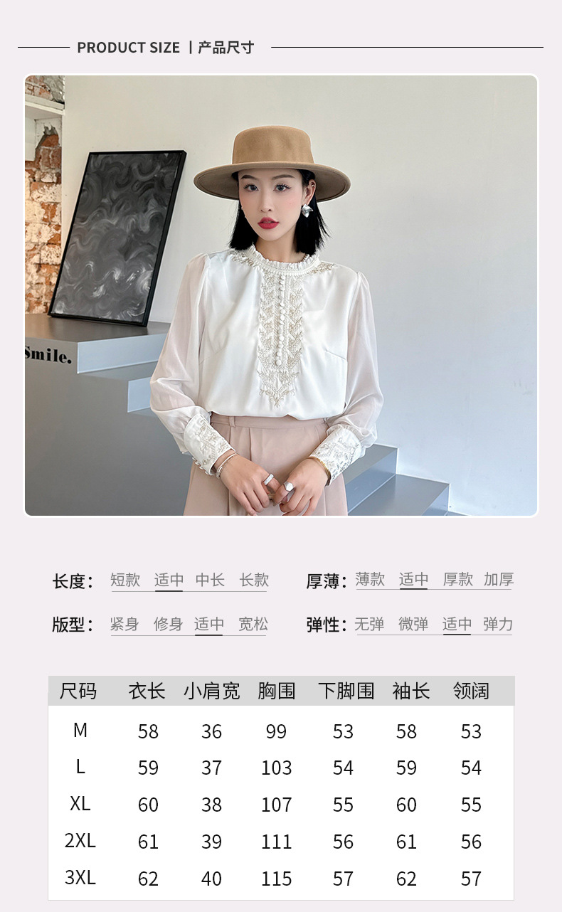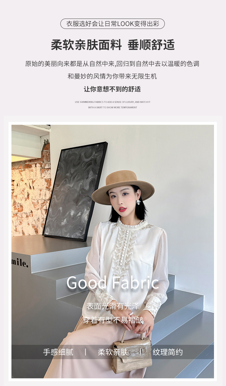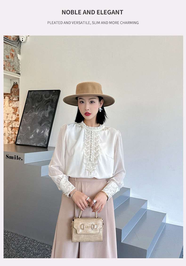 리얼 샷 자수 셔츠 여자의 가을 2023 새로운 나무 귀 풀오버 모조 뽕나무 실크 긴 소매 탑