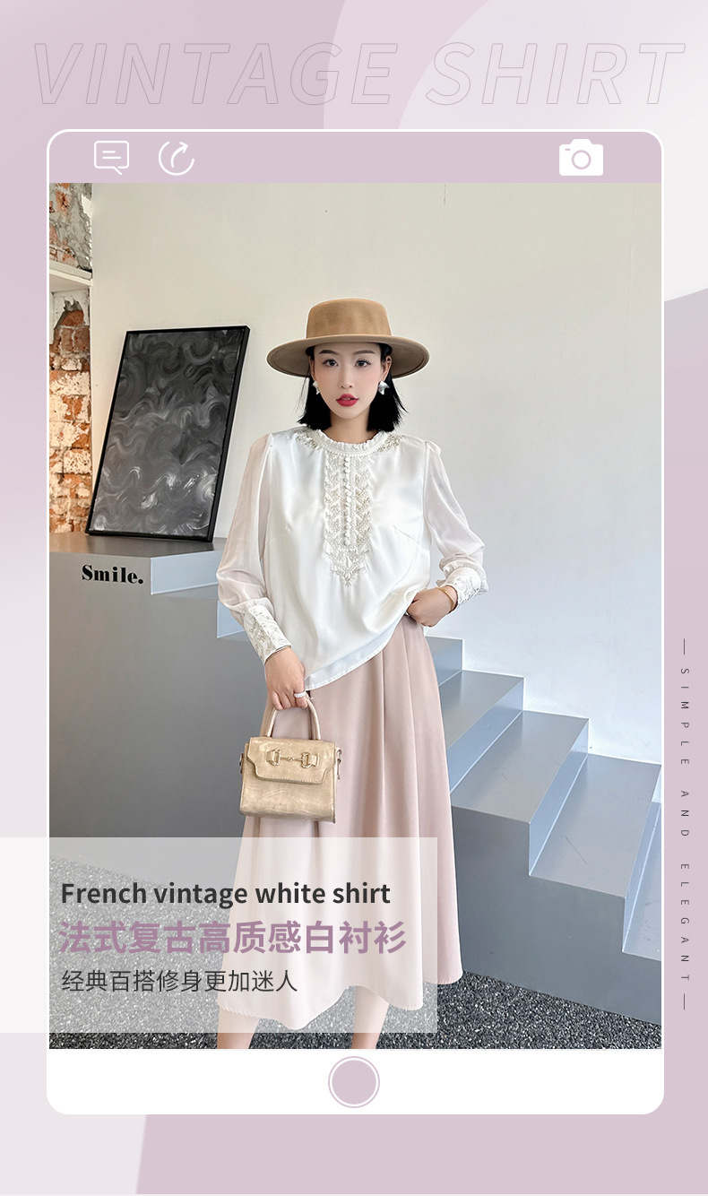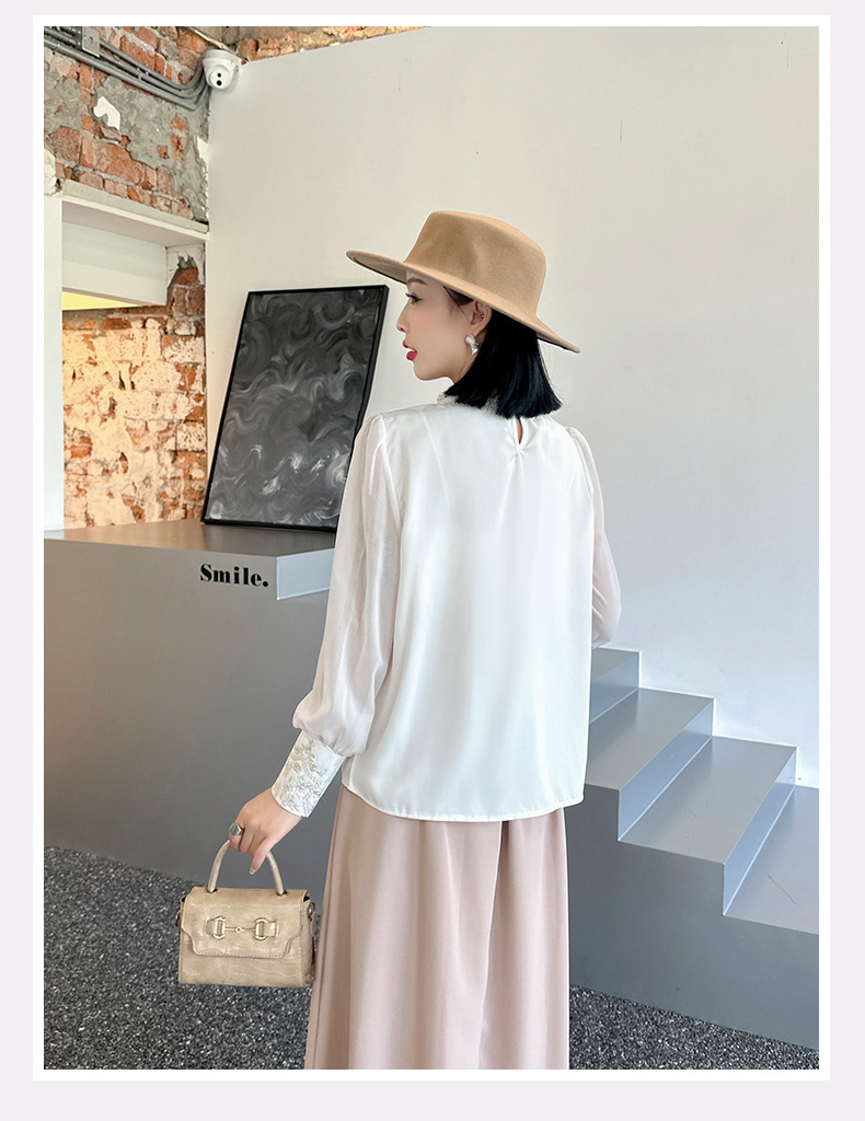 리얼 샷 자수 셔츠 여자의 가을 2023 새로운 나무 귀 풀오버 모조 뽕나무 실크 긴 소매 탑스토어 가기