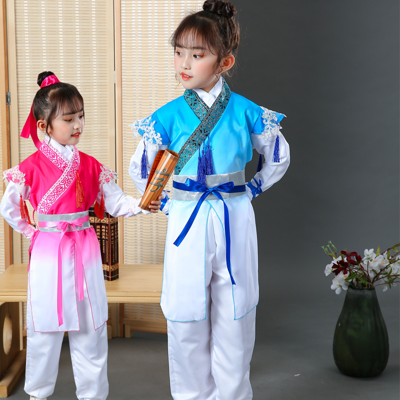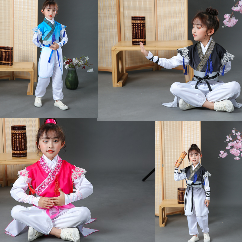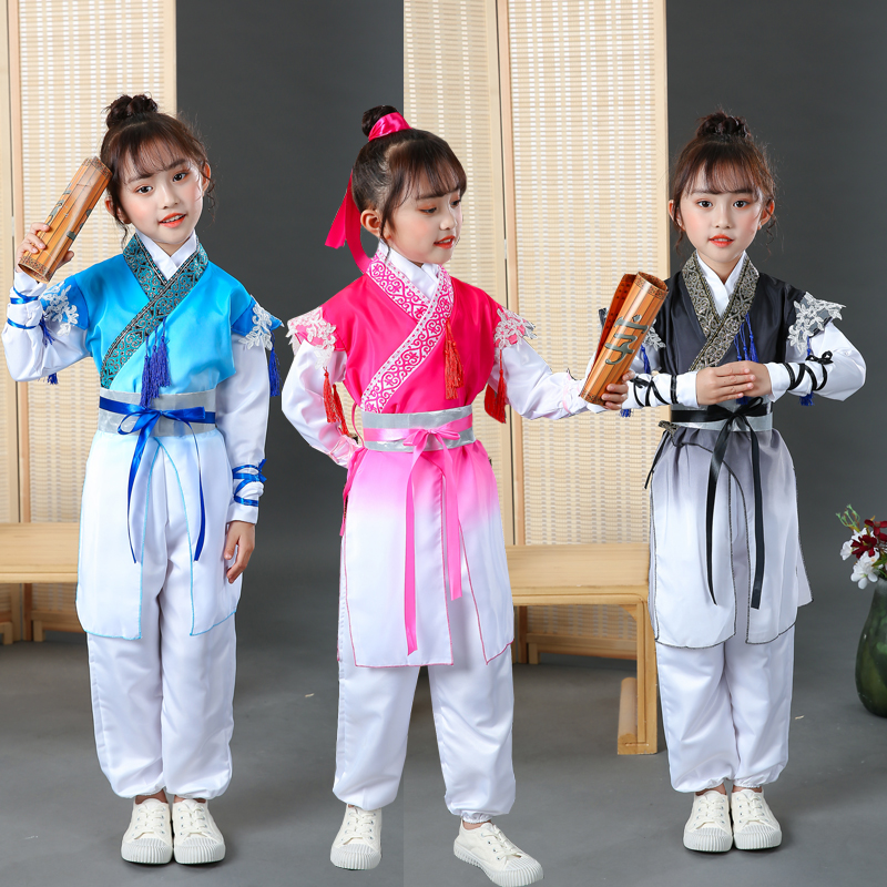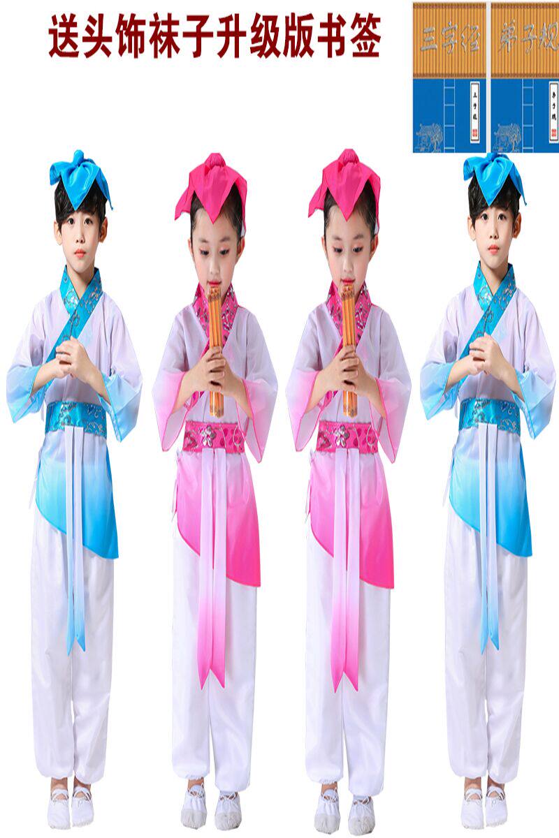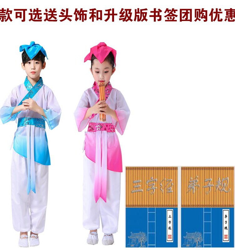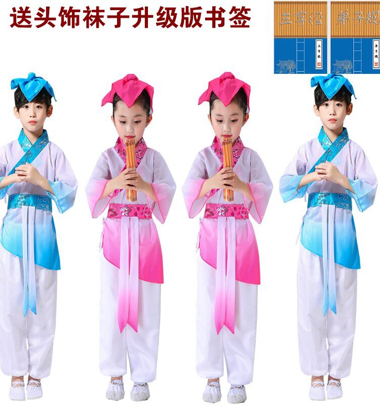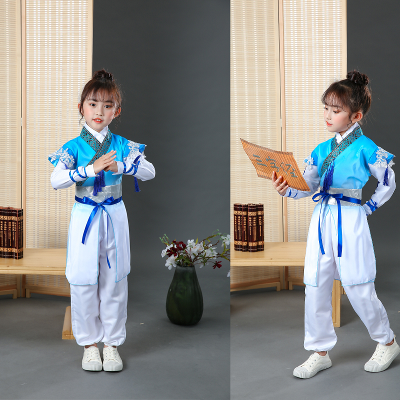 중국 효도 고대 의상 한푸 어린이 제자 규칙 블루 중립 새 책 어린이 춤 세트 3 자 세트 Guoxue 세트스토어 가기