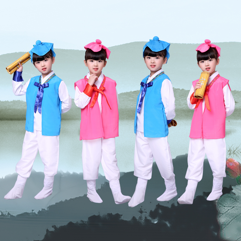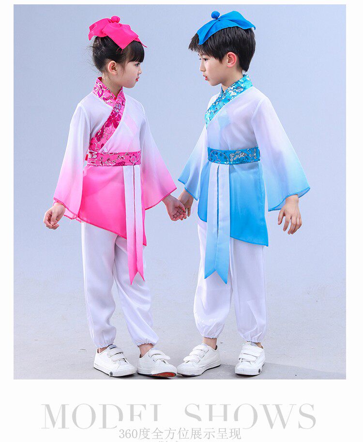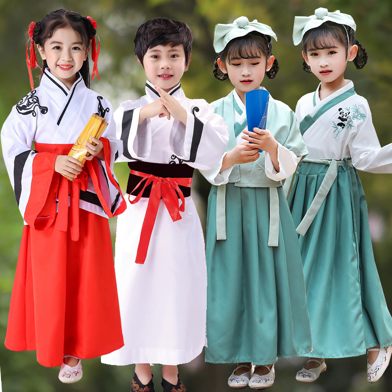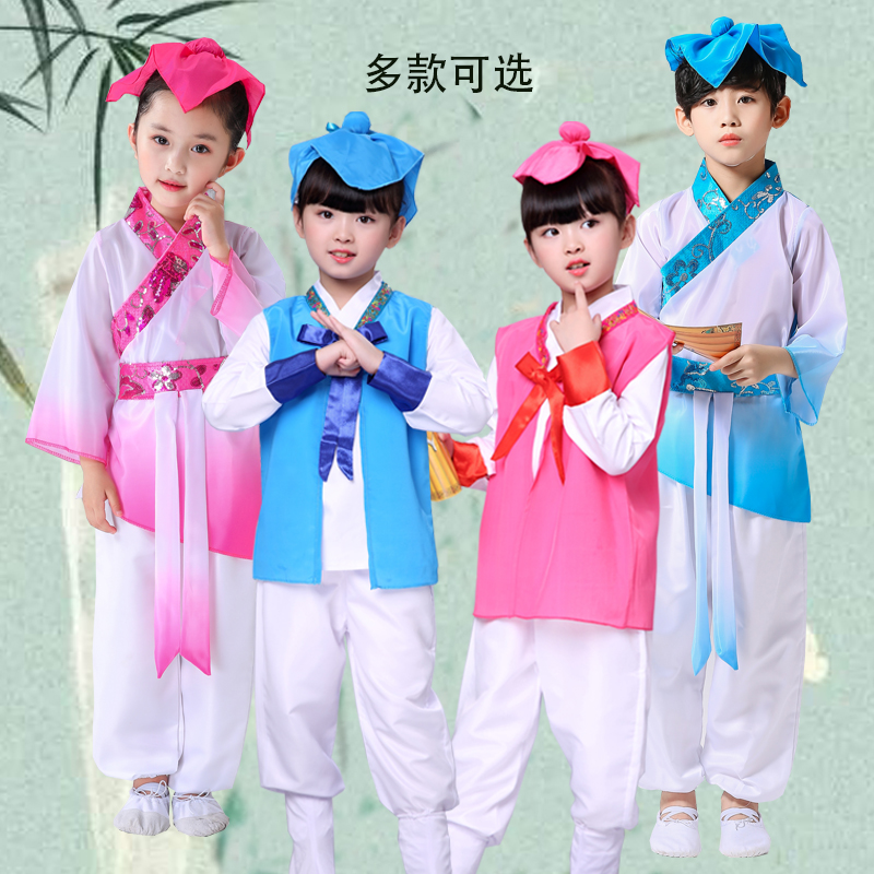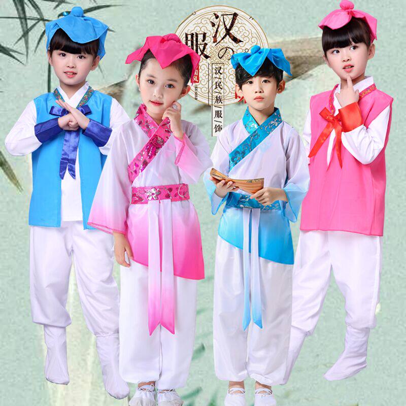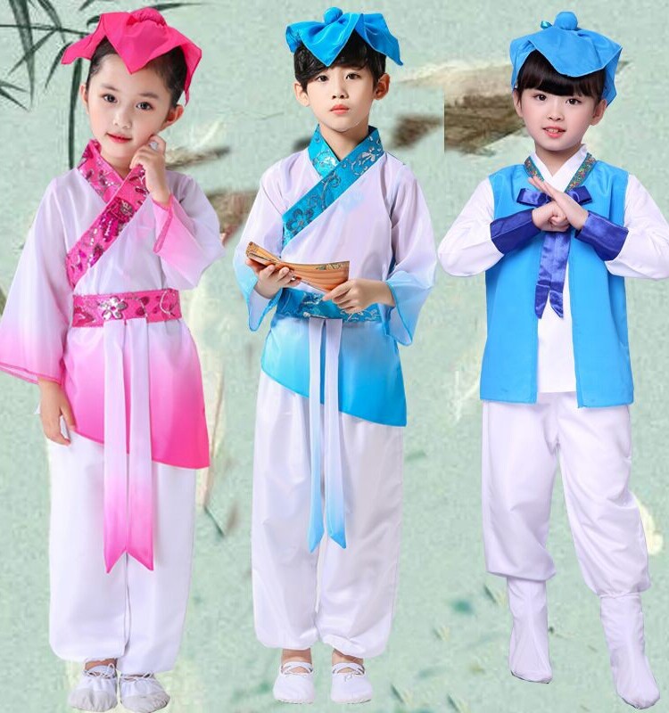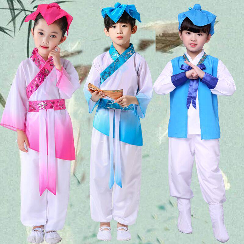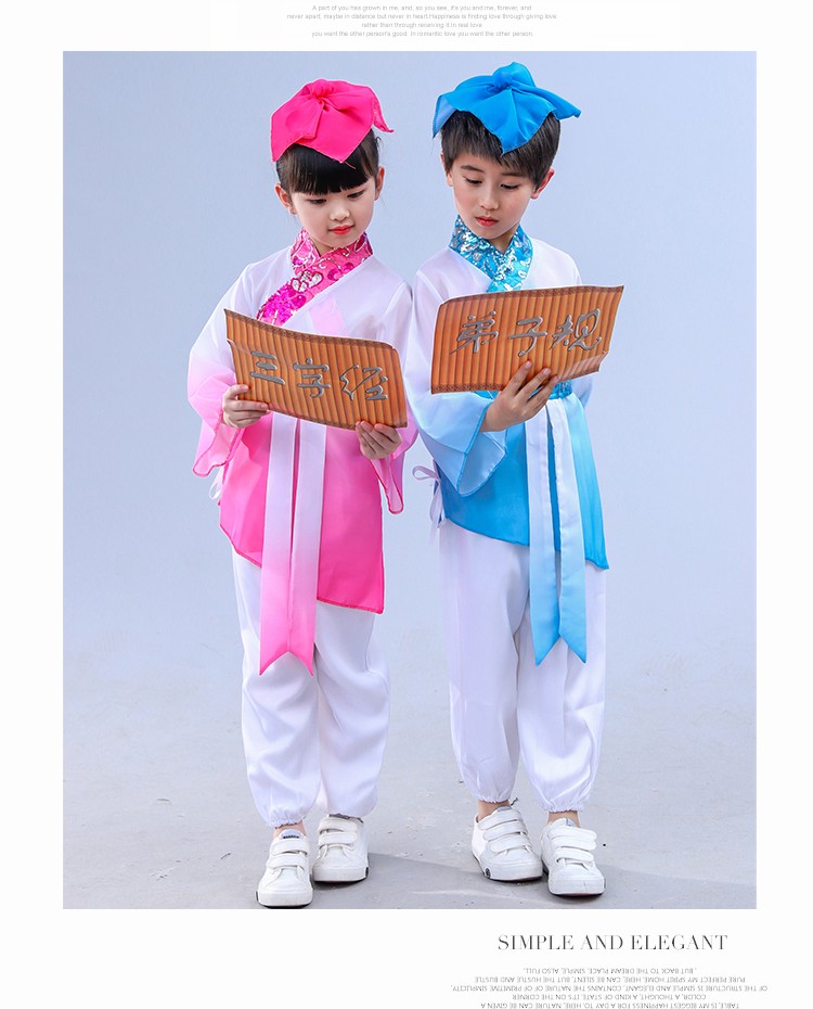 중국 효도 고대 의상 한푸 어린이 제자 규칙 블루 중립 새 책 어린이 춤 세트 3 자 세트 Guoxue 세트스토어 가기