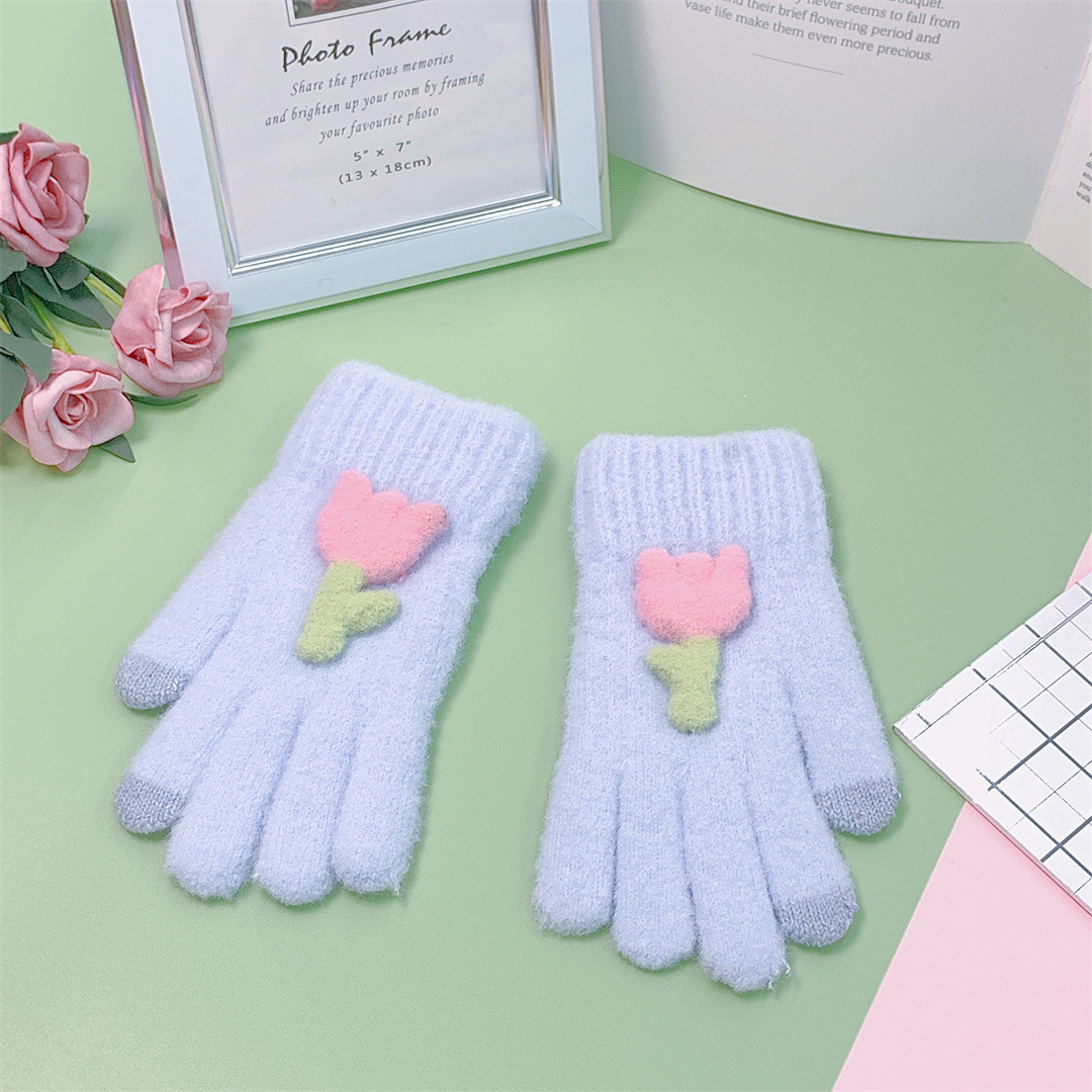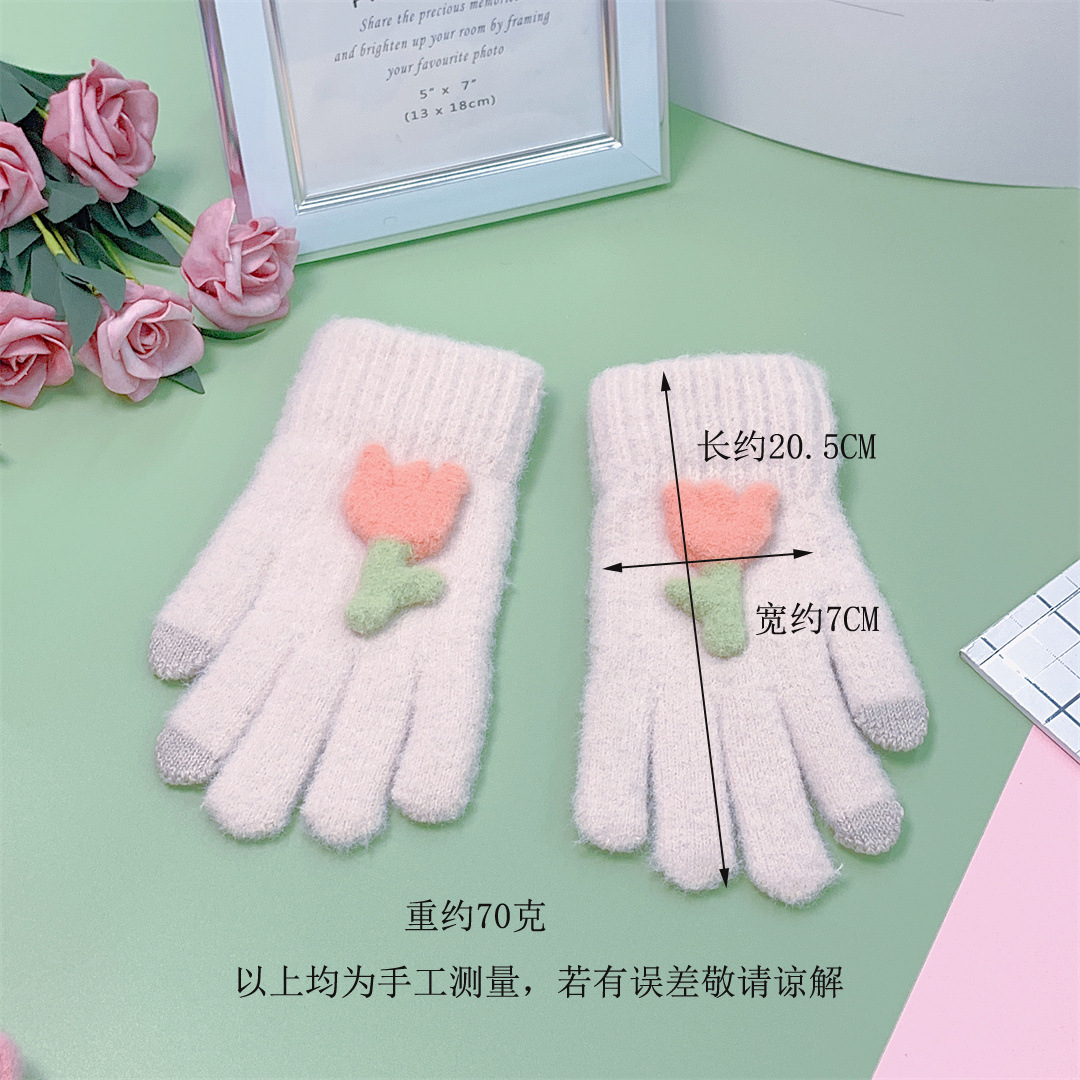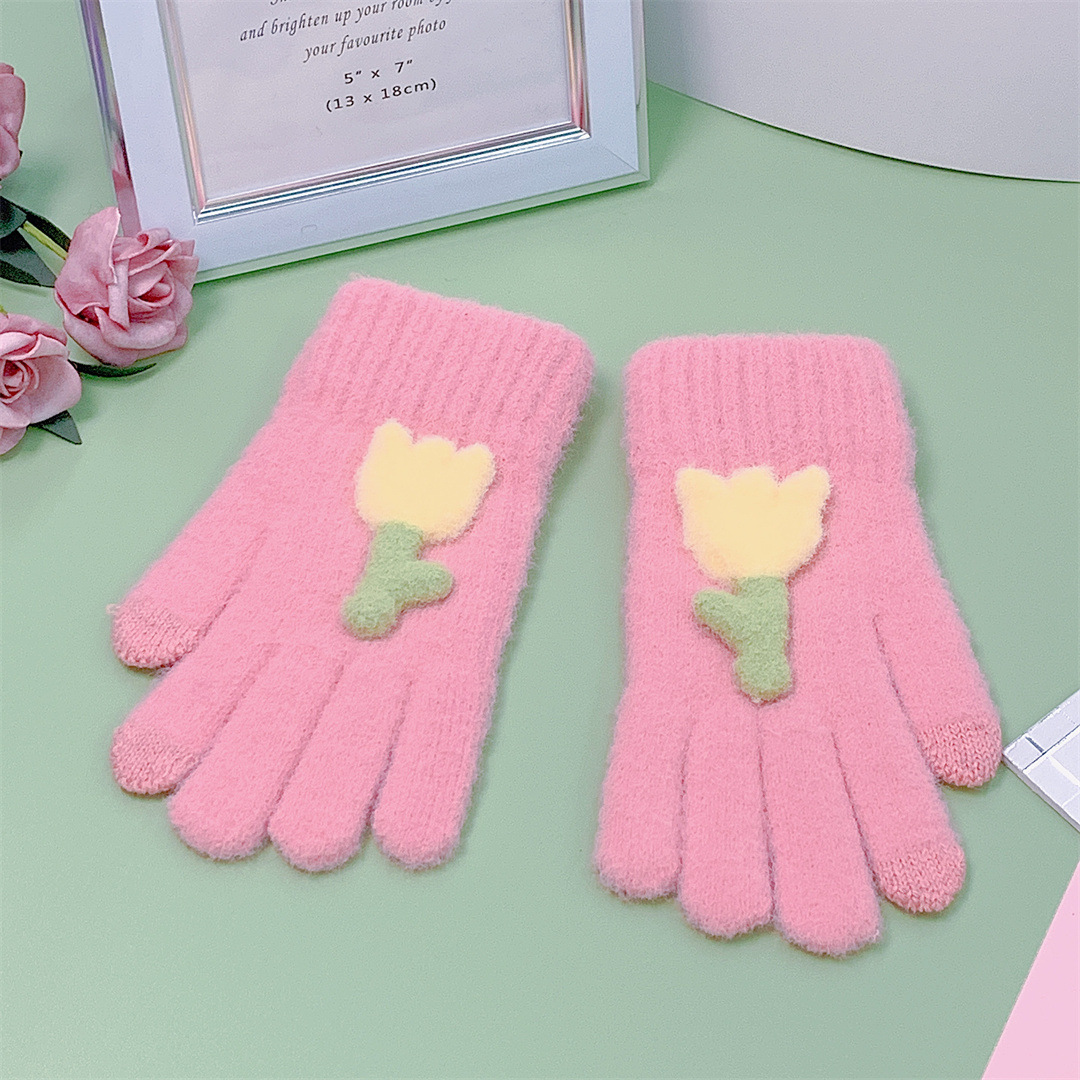 가을과 겨울 새로운 여성 성인 기모 작은 신선한 터치 스크린 튤립 다섯 손가락 장갑 도매 야외 따뜻한