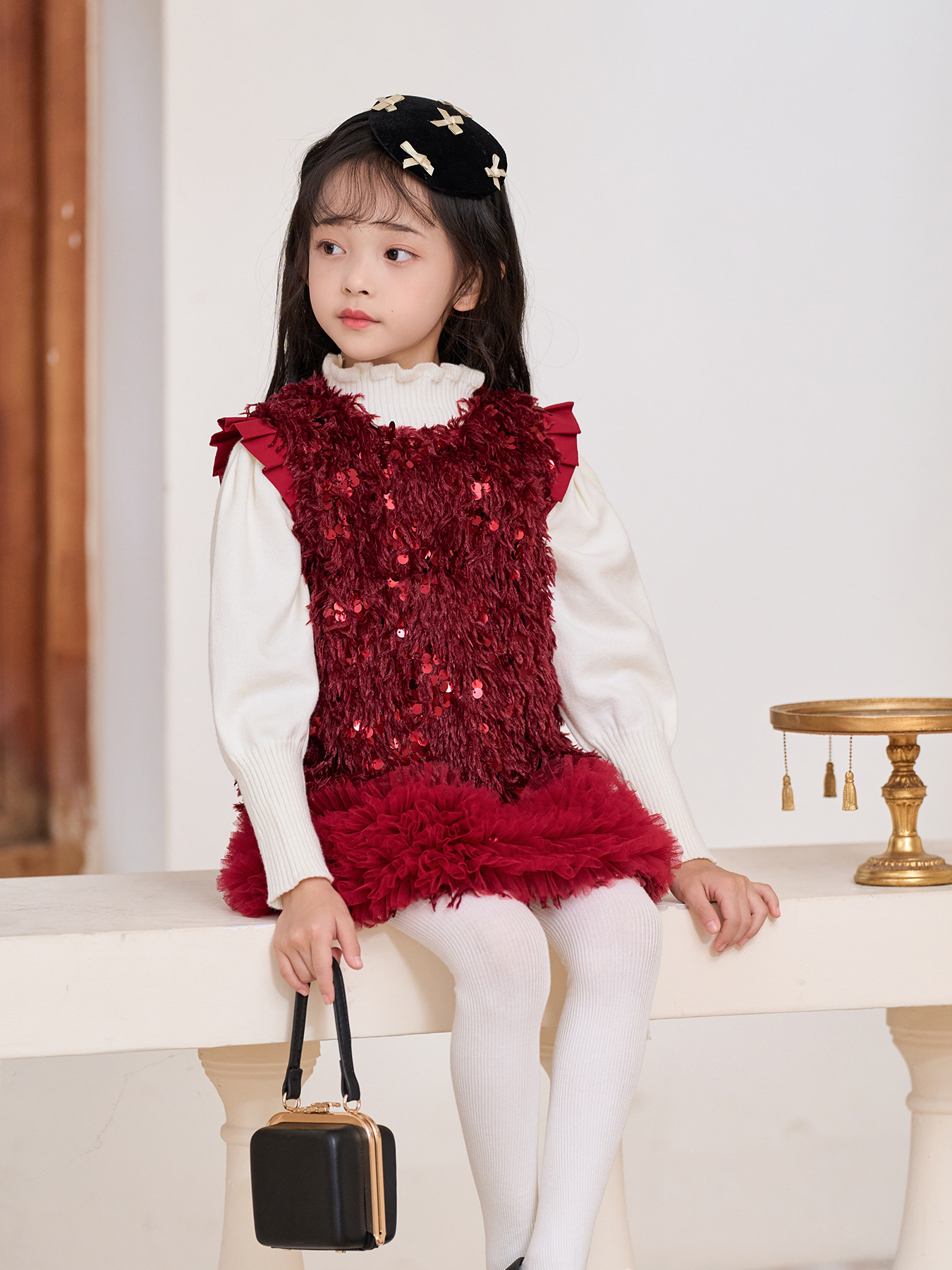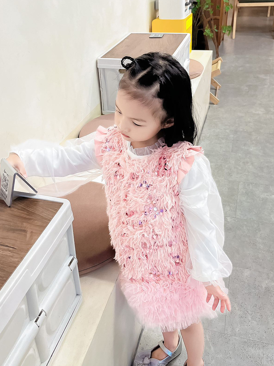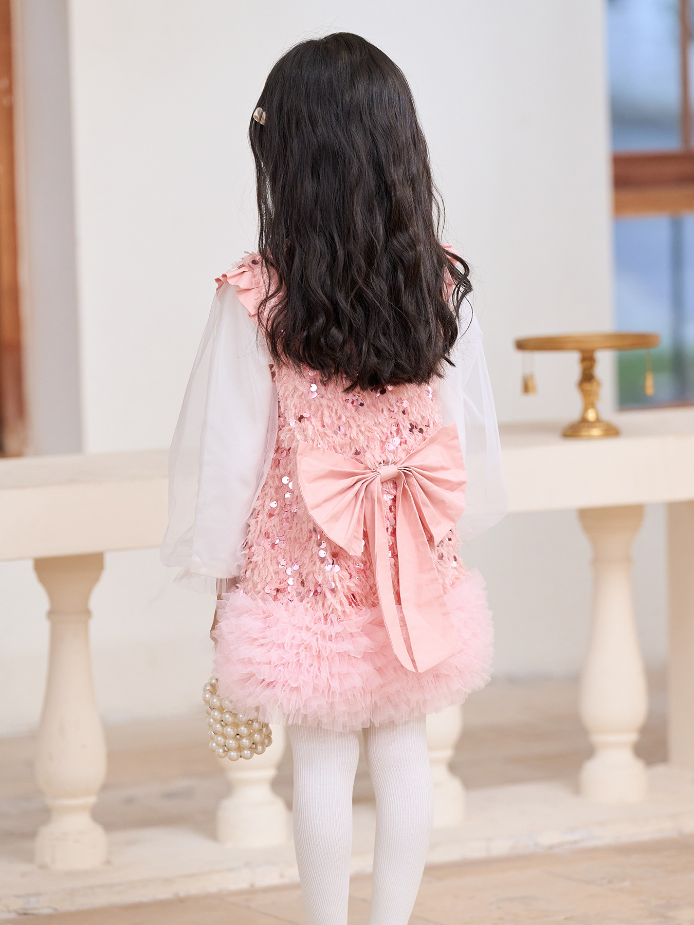2025 가을 스팽글 조끼 드레스, 세련된 신상 리본 여아 공주 드레스, 아동 드레스, 망사 드레스스토어 가기