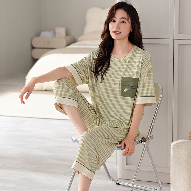 모달 쿨 옷깃 카디건 파자마 여성용 봄과 여름 짧은 소매 반바지 세트 입을 수 플러스 사이즈 느슨한 캐주얼스토어 가기