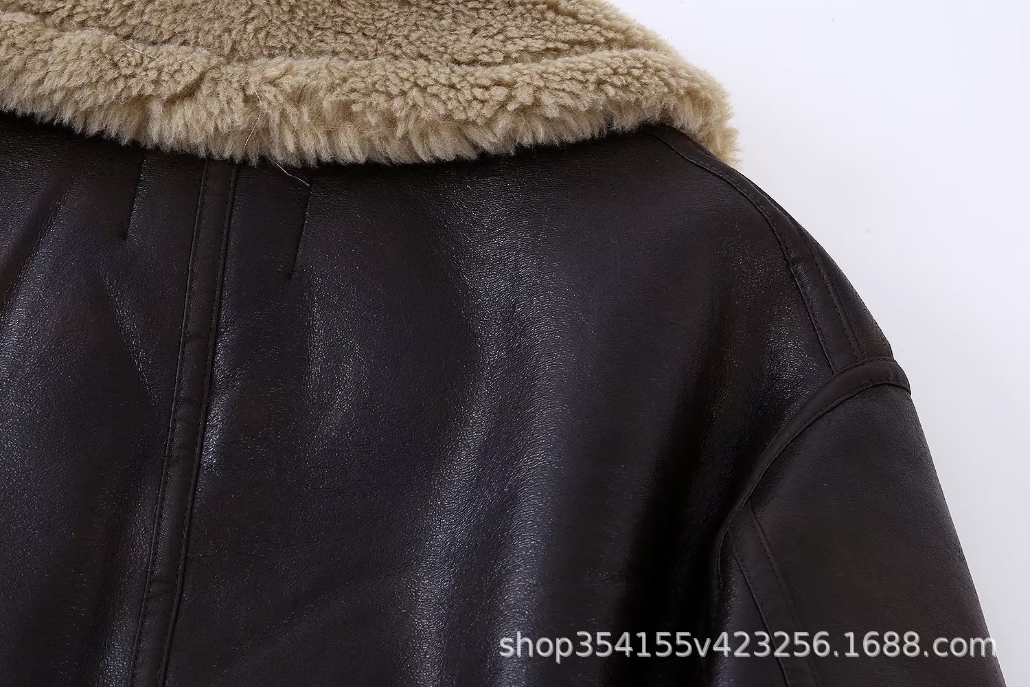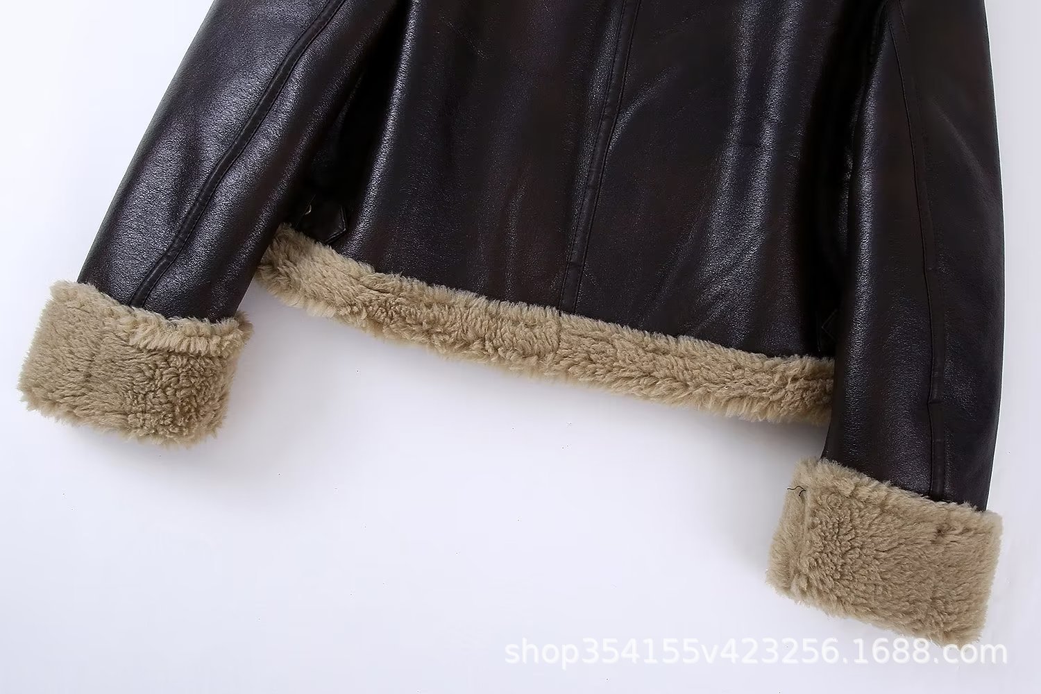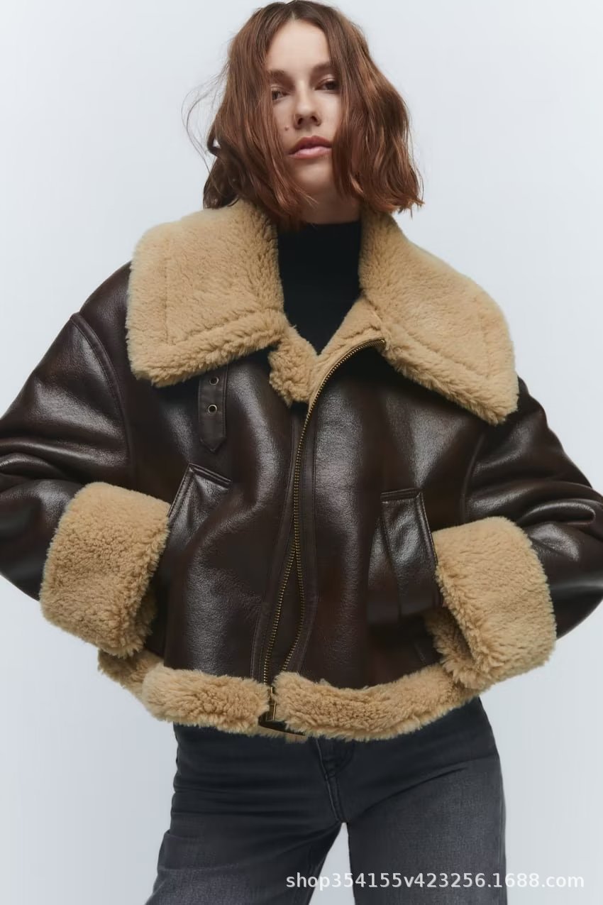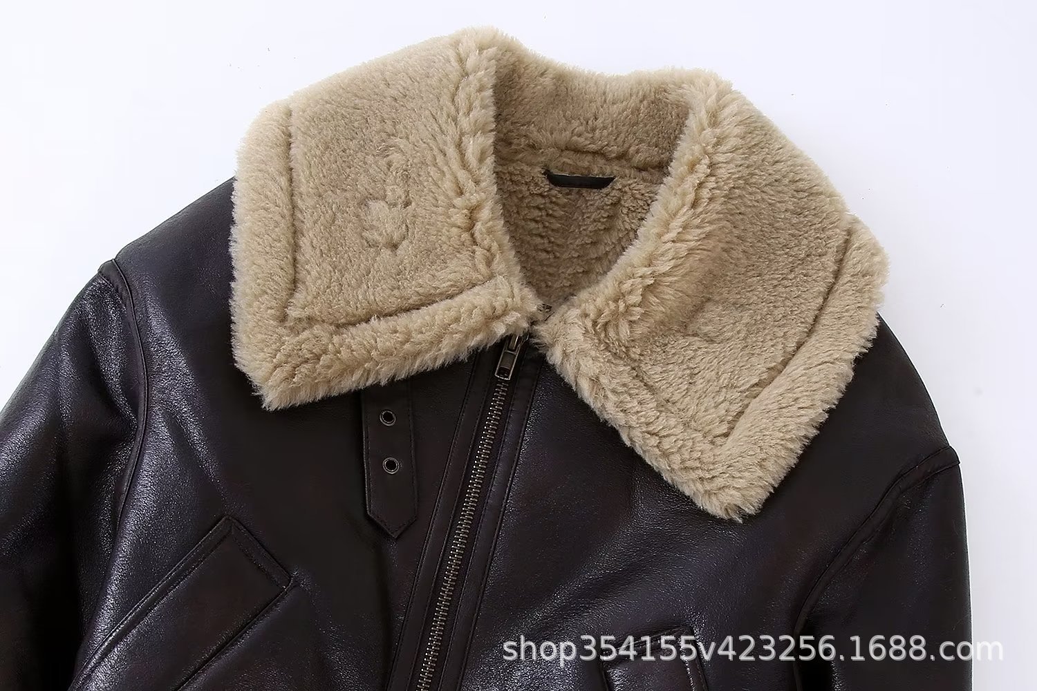 2025 가을, 겨울 새로운 스트리트 모피 원피스 두꺼운 솔리드 컬러 옷깃 지퍼 짧은 재킷 여성을위한스토어 가기