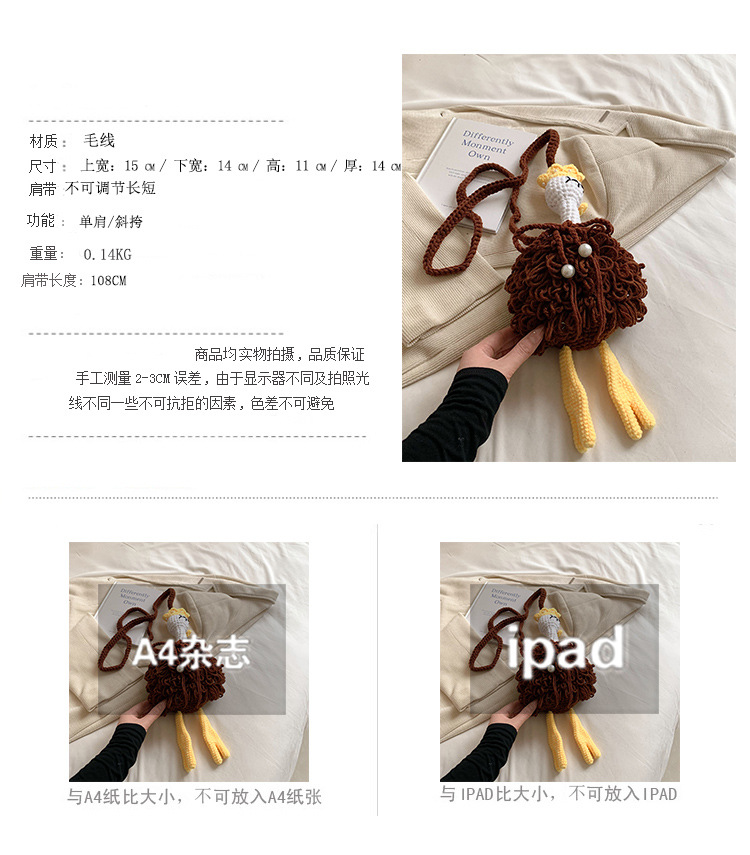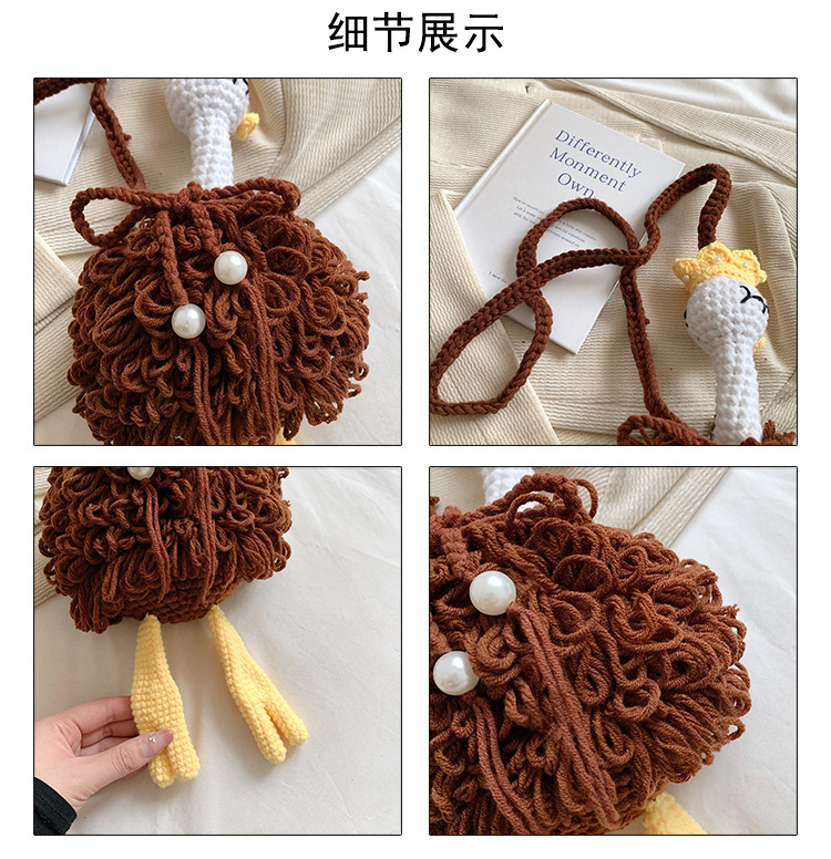 한국 새로운 타조 가방 창조적 인 완료 양모 가방 만화 어린이 메신저 가방 귀여운 소녀 휴대 전화 액세서리 가방