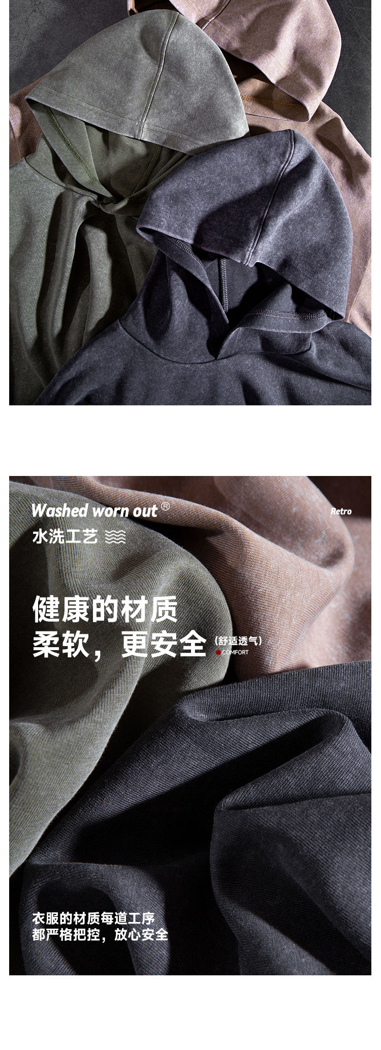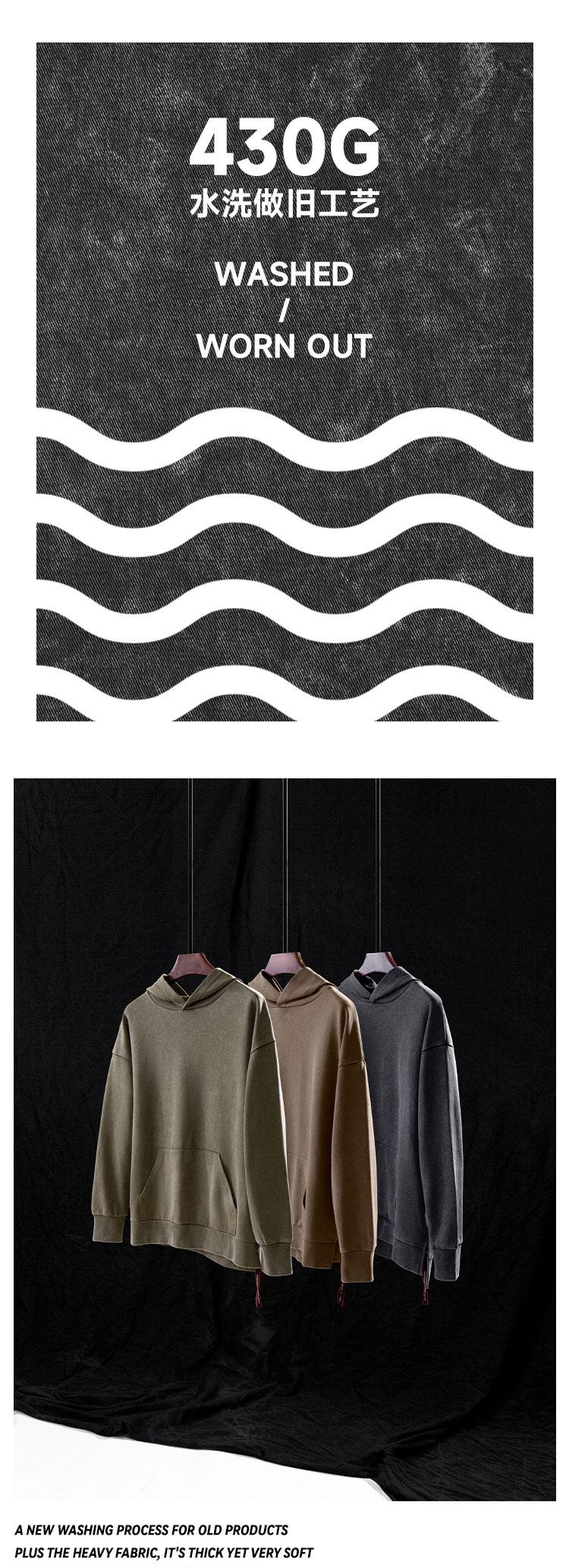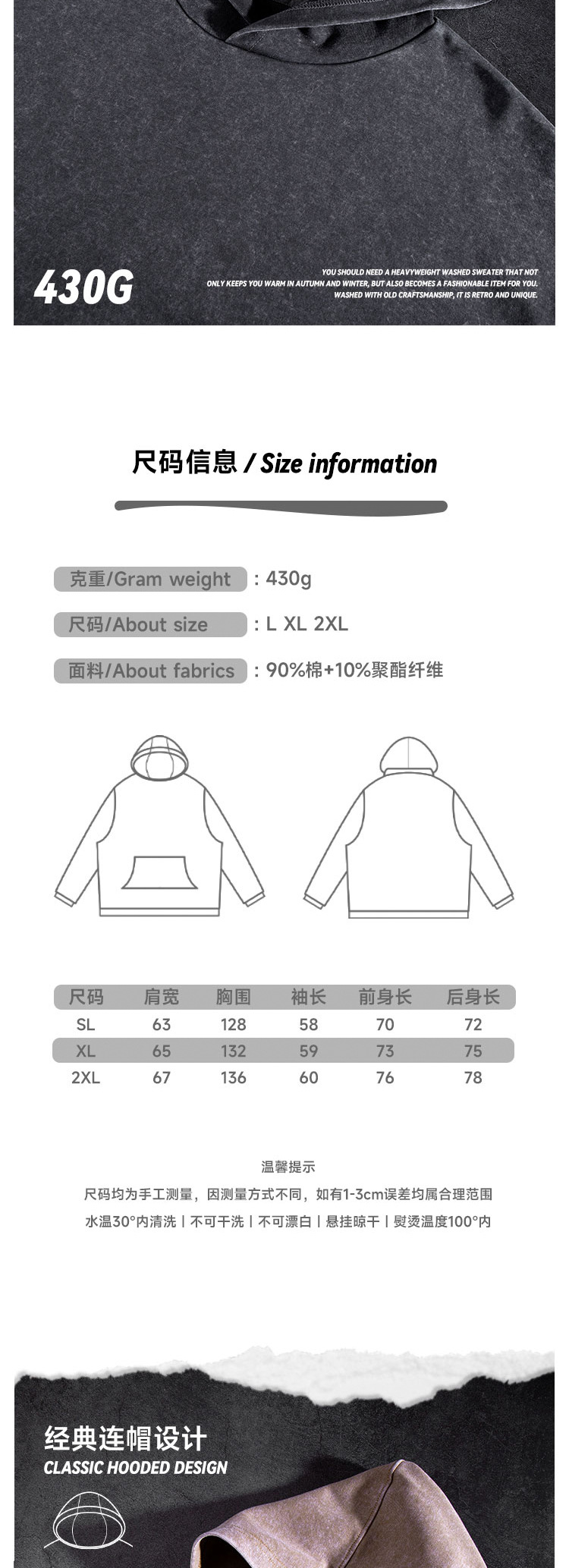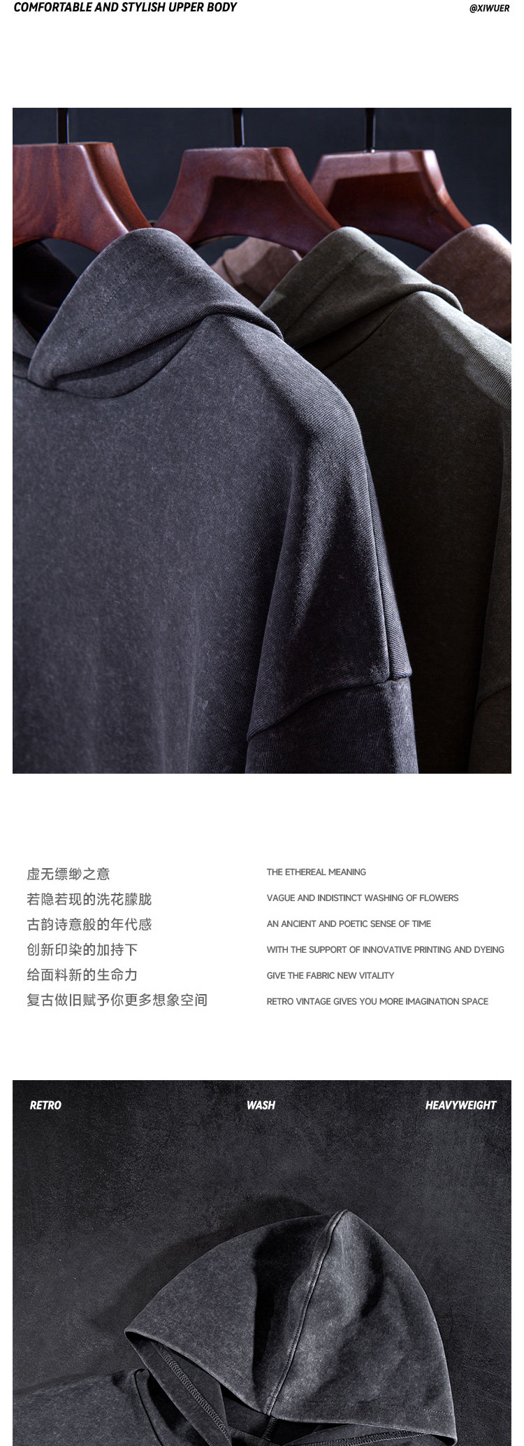 남성과 여성을 위한 430g 무거운 워싱 오래 된 복고풍 후드 스웨터 플러스 사이즈 특대 느슨한 어깨 후드 유행