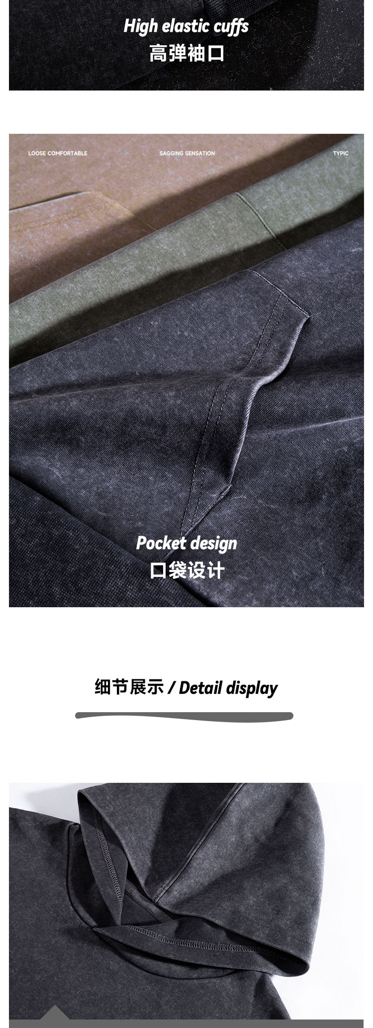 남성과 여성을 위한 430g 무거운 워싱 오래 된 복고풍 후드 스웨터 플러스 사이즈 특대 느슨한 어깨 후드 유행스토어 가기