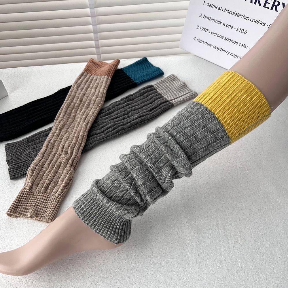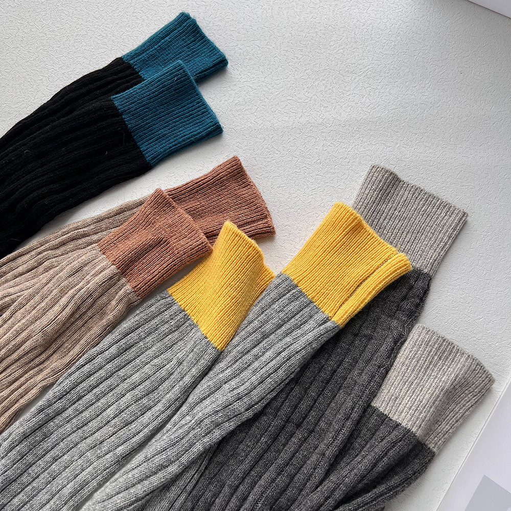 캐시미어 대비 컬러 스티칭 양말 여성용 다리 슬리브 스택 가을과 겨울 니트 따뜻한 양말 종아리 양말