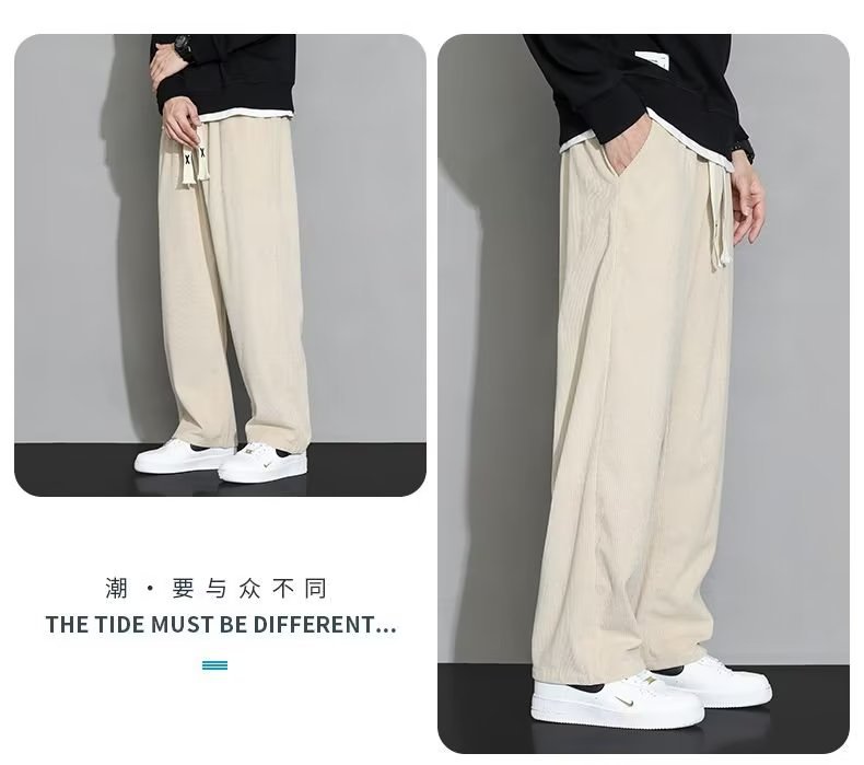 남성 트렌디 캐주얼 바지 2023 가을 새로운 루즈한 스트레이트 학생 기본 모든 매치 팬츠 와이드 레그 팬츠스토어 가기