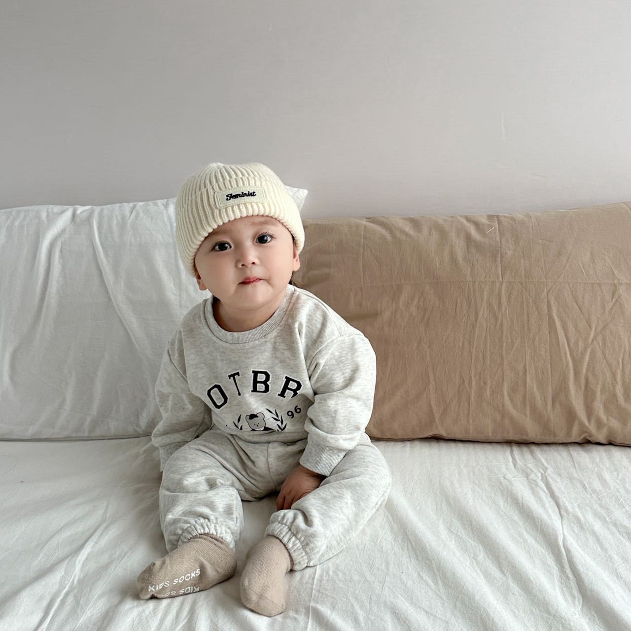 한국식 인 인쇄 곰 봄과 가을 세트 바지 긴 소매 만화 귀여운 서양 스타일 스웨터 어린이를위한 투피스 세트스토어 가기