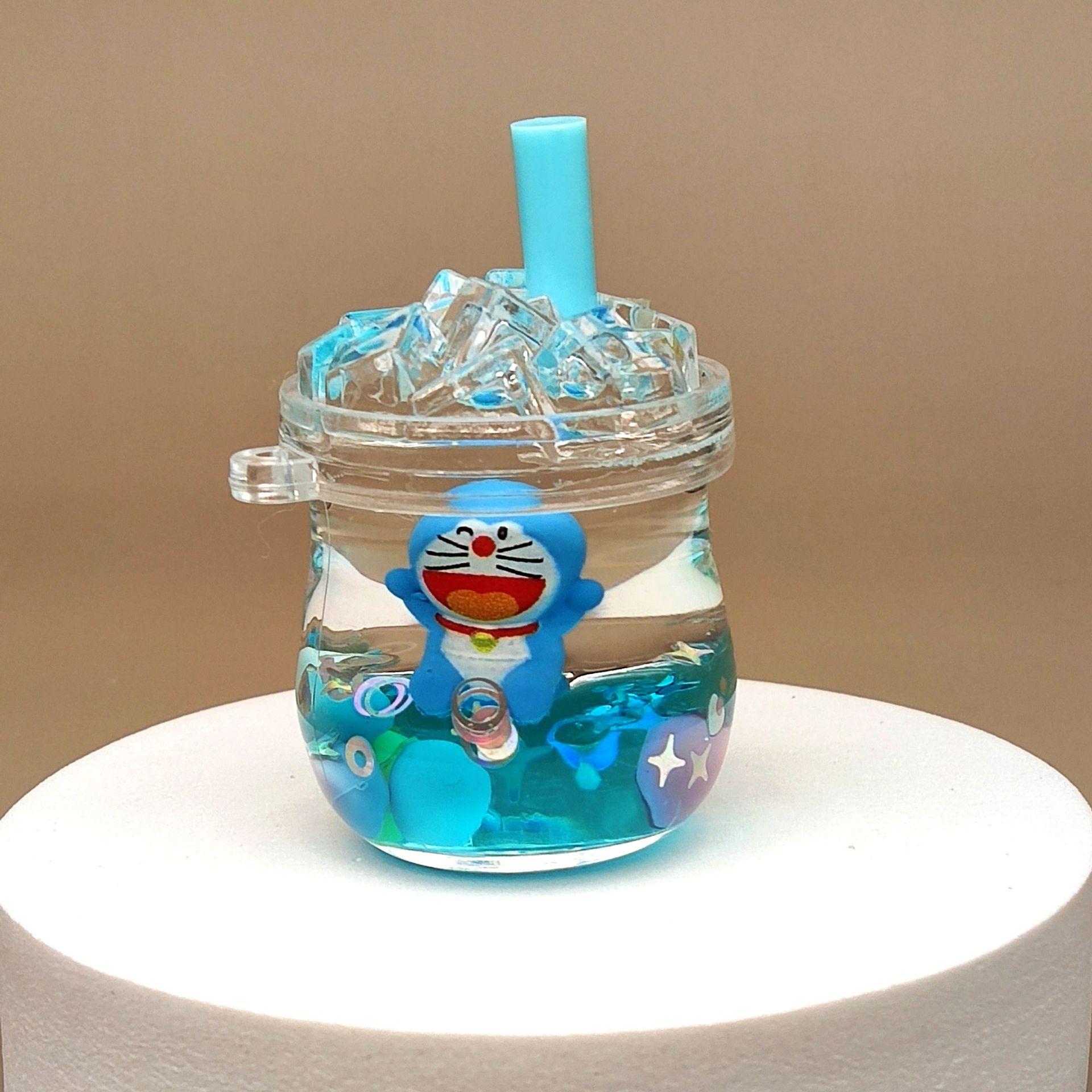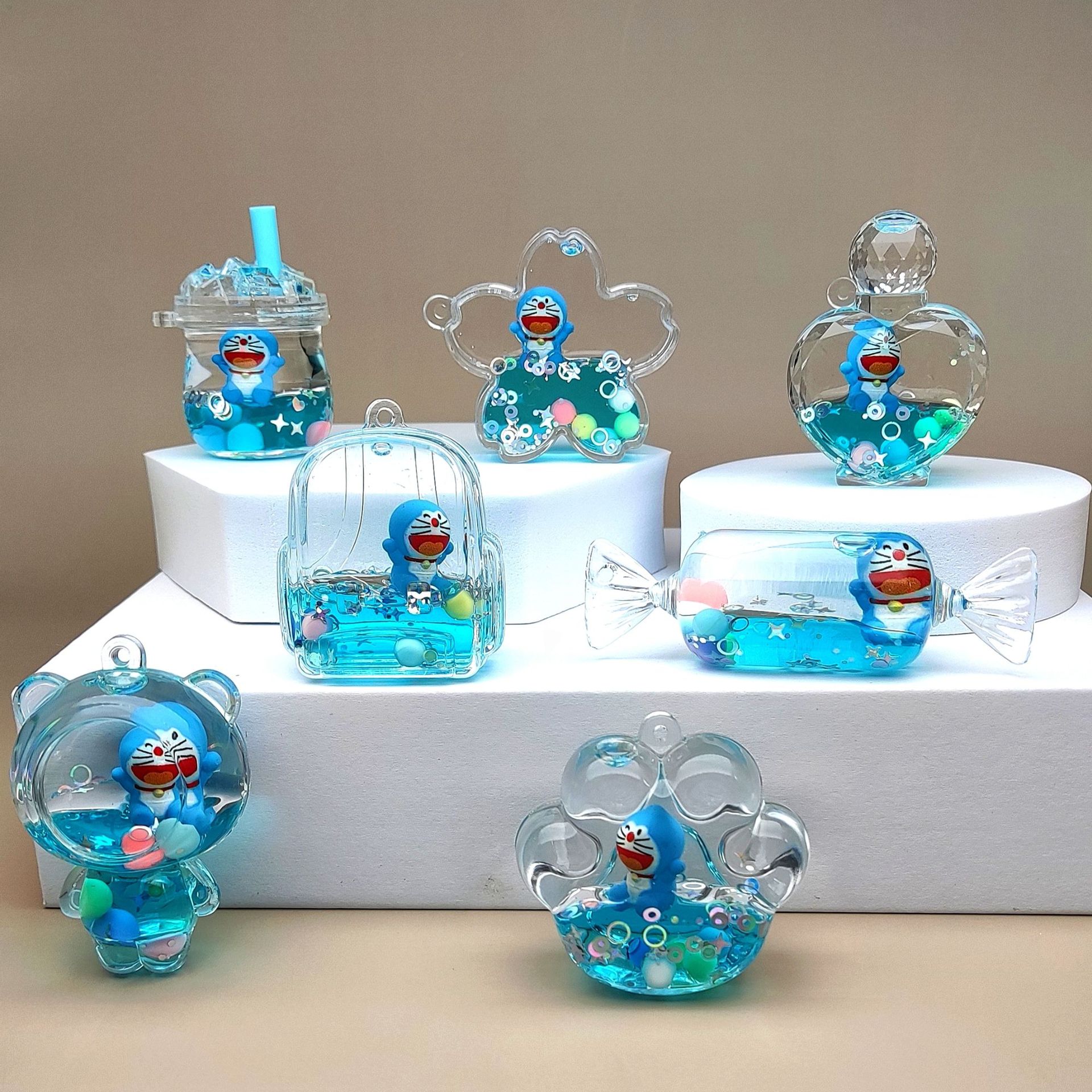 크리 에이 티브 아크릴 오일 인 플로우 모래 병 블루 만화 시리즈 키 체인 자동차 액세서리 데스크탑 장식품