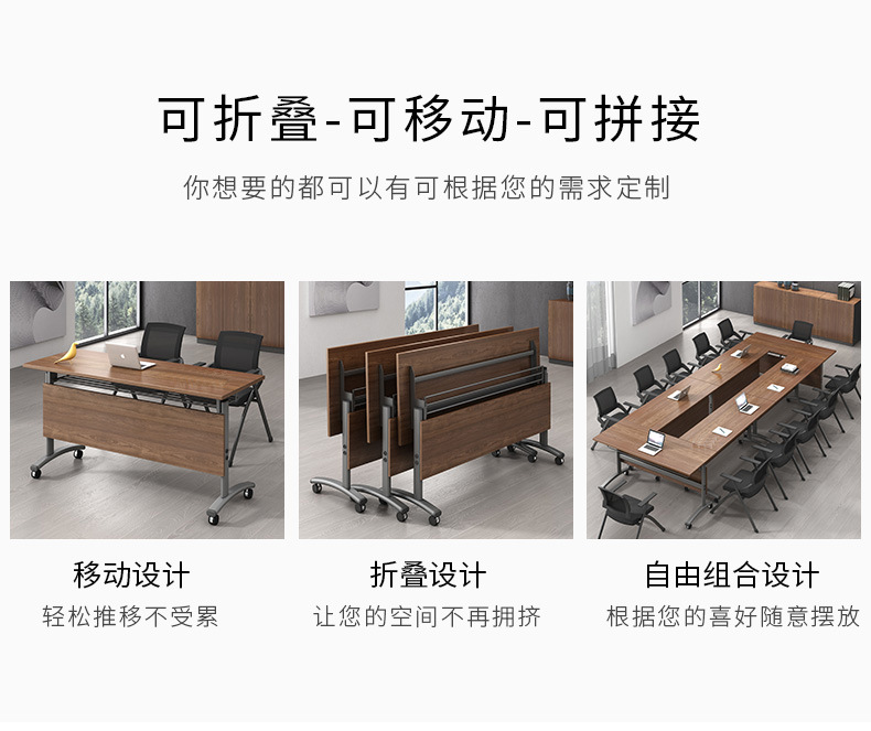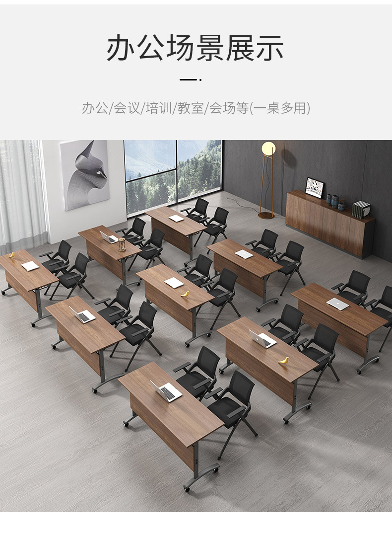 휠 테이블과 의자 훈련 조합 회의 테이블 이동식 테이블 훈련 책상 책상 접합 접이식 벨트 사무실스토어 가기