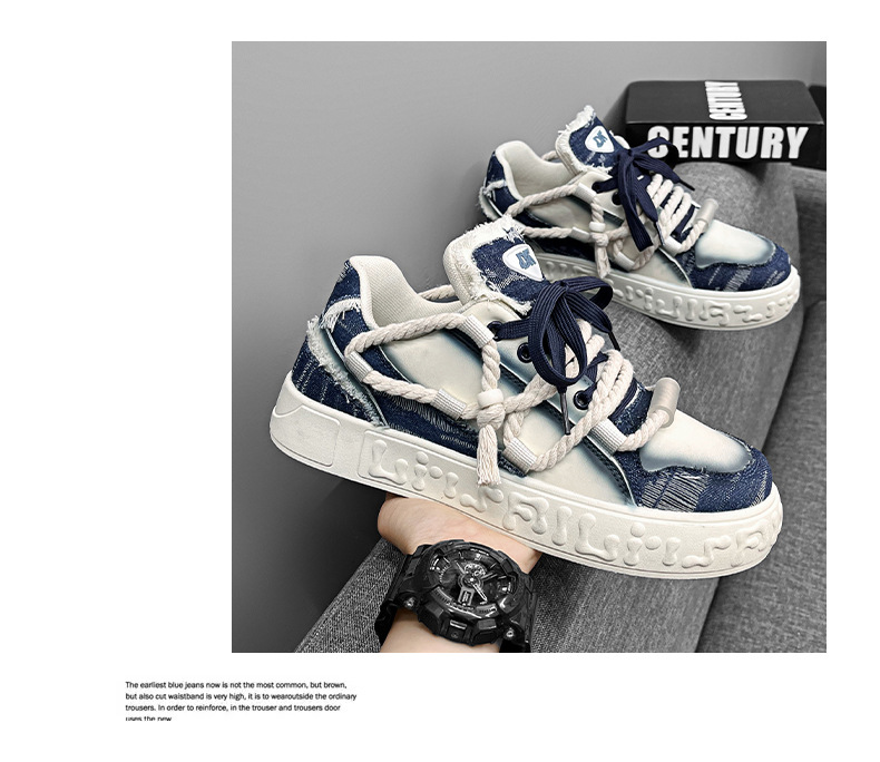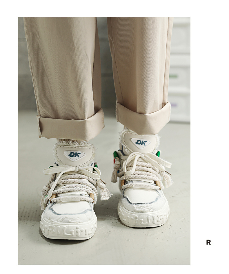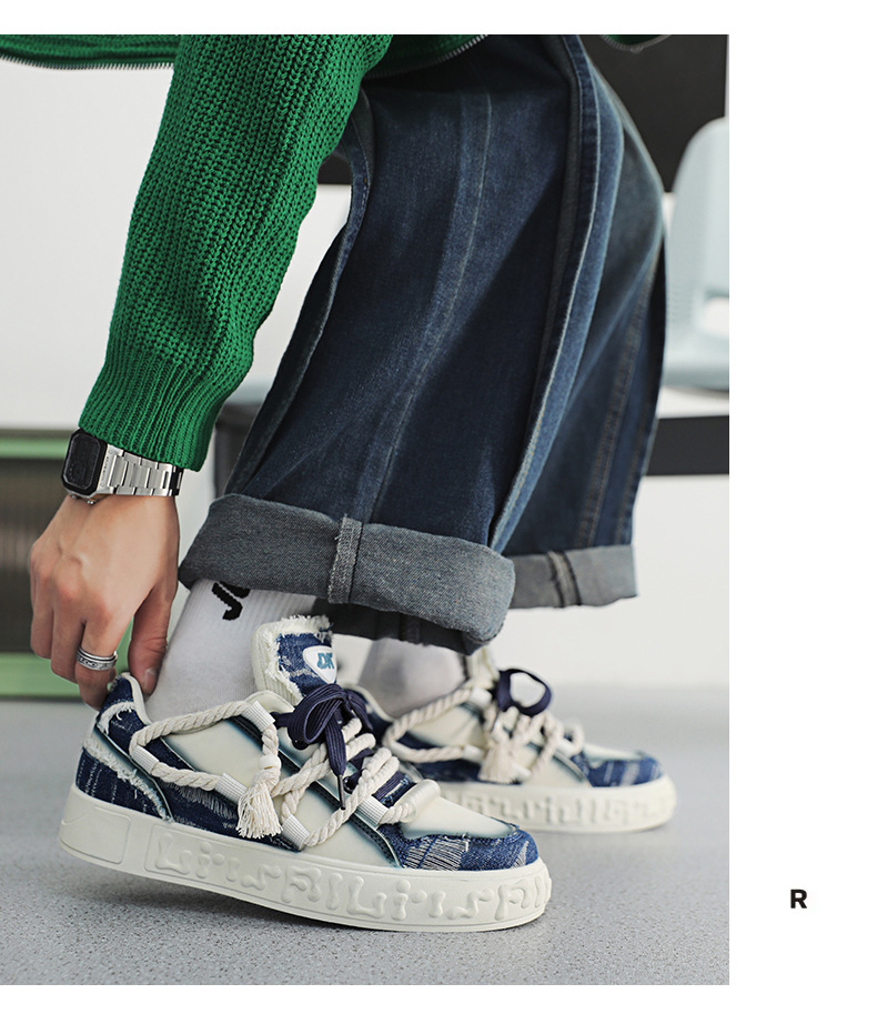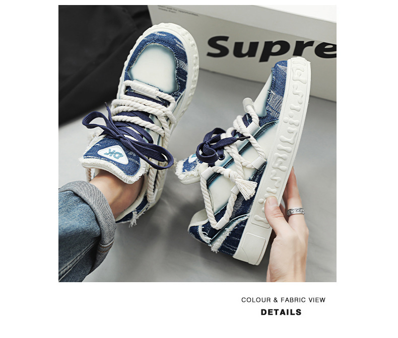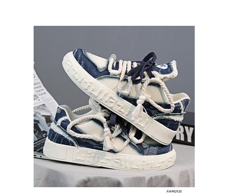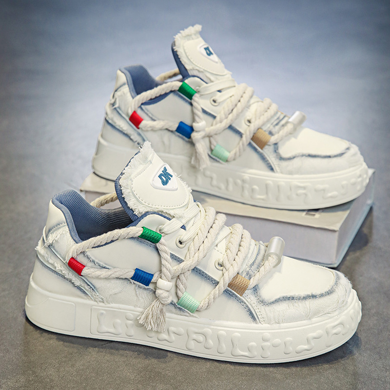 틈새 하이 엔드 신발 남성용 빵 신발 2023 로우 탑 두꺼운 밑창 보드 신발 두꺼운 로프 디자인 청소년 레저 러닝화