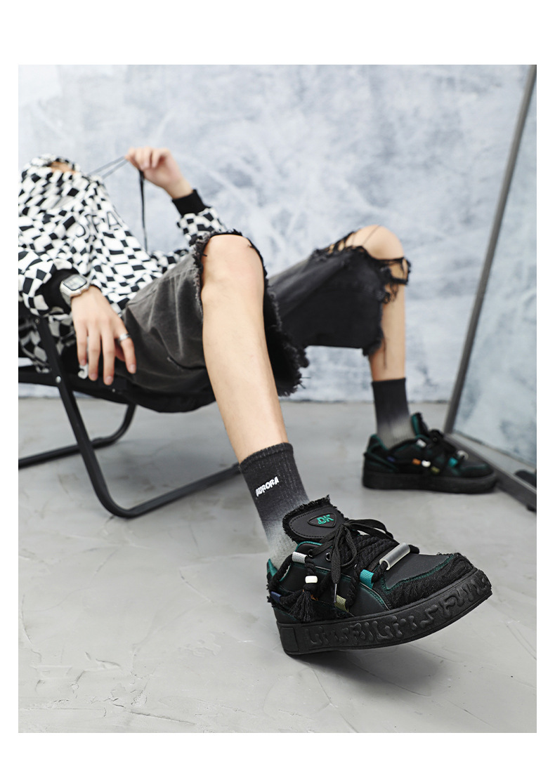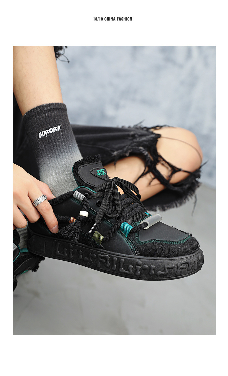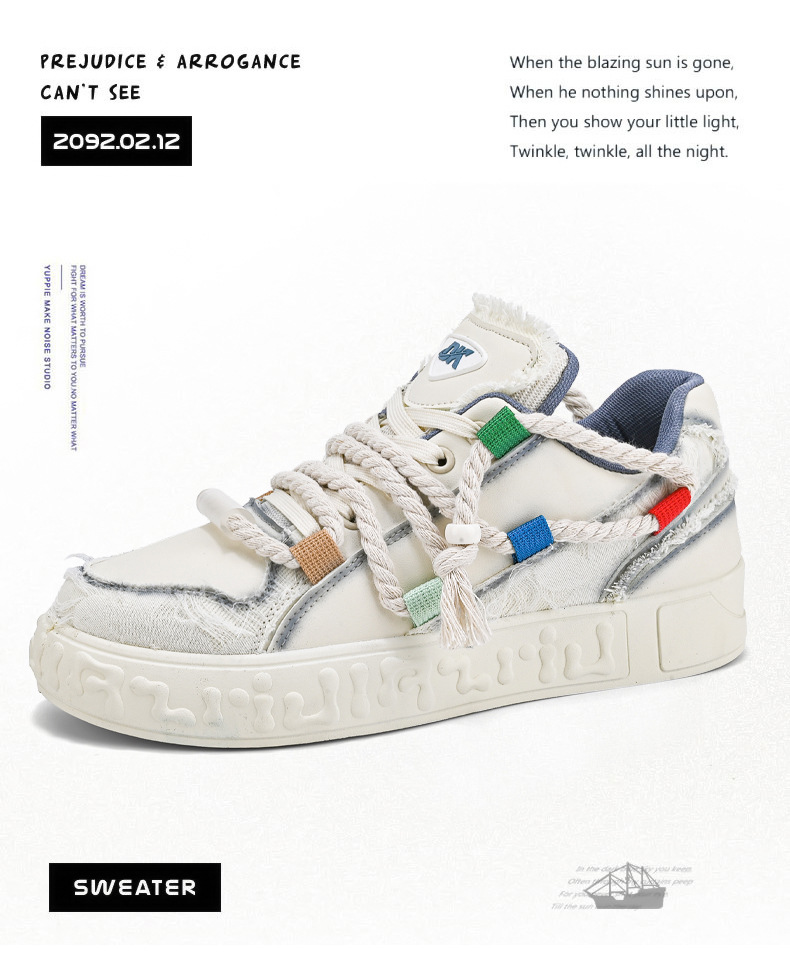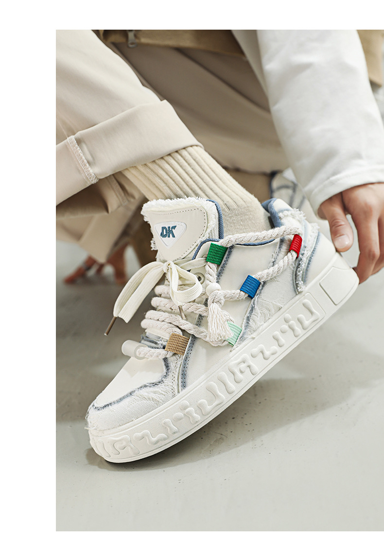틈새 하이 엔드 신발 남성용 빵 신발 2023 로우 탑 두꺼운 밑창 보드 신발 두꺼운 로프 디자인 청소년 레저 러닝화