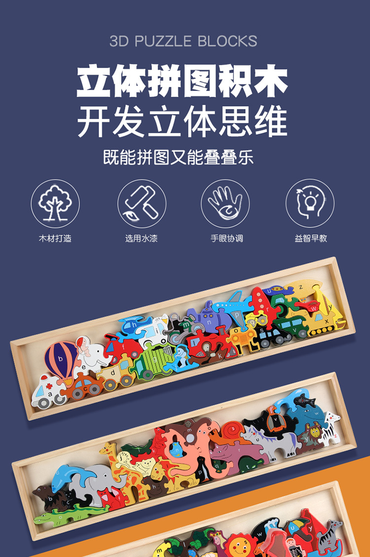 새로운 대형 3 만화 교통 동물 스테레오 직소 퍼즐 나무 어린이 아기 나무 조기 교육 혜택스토어 가기
