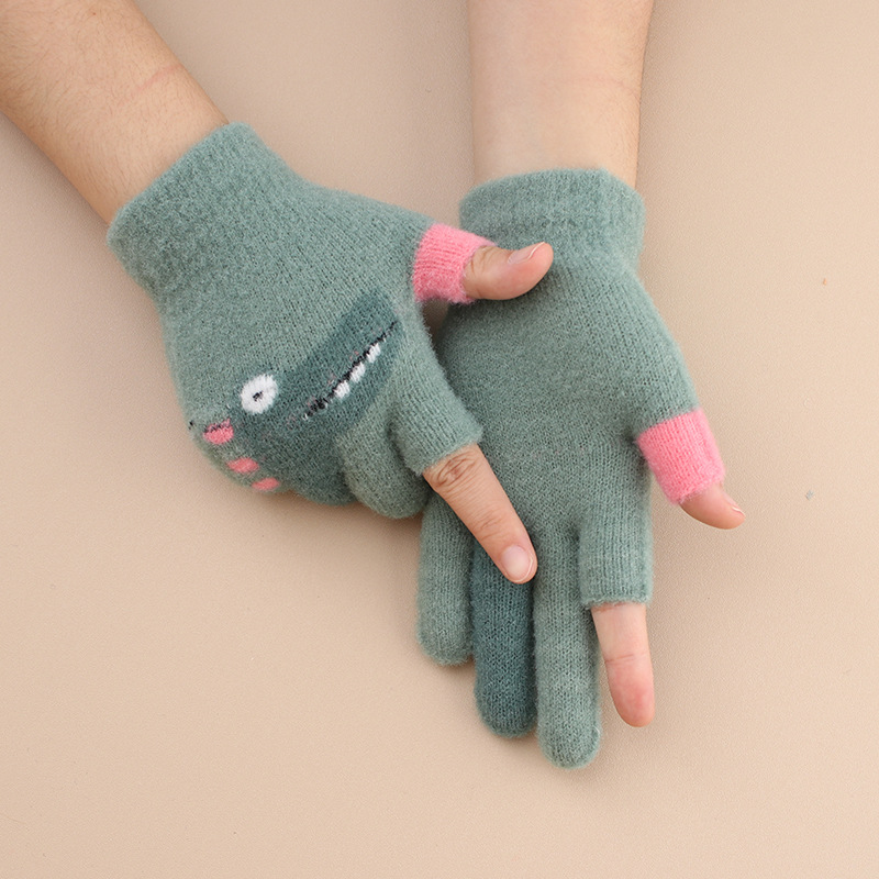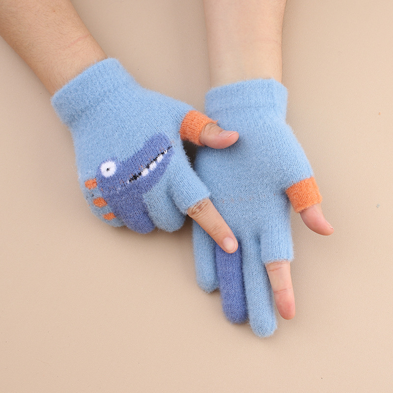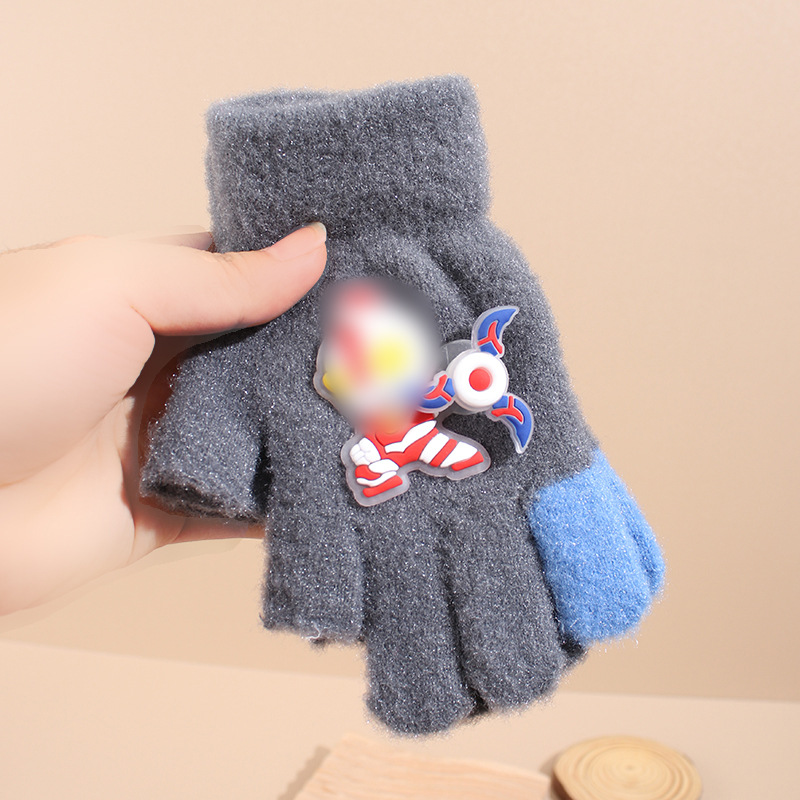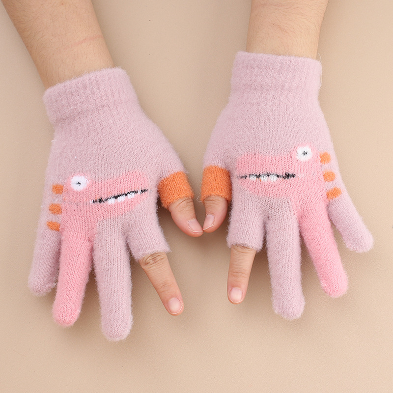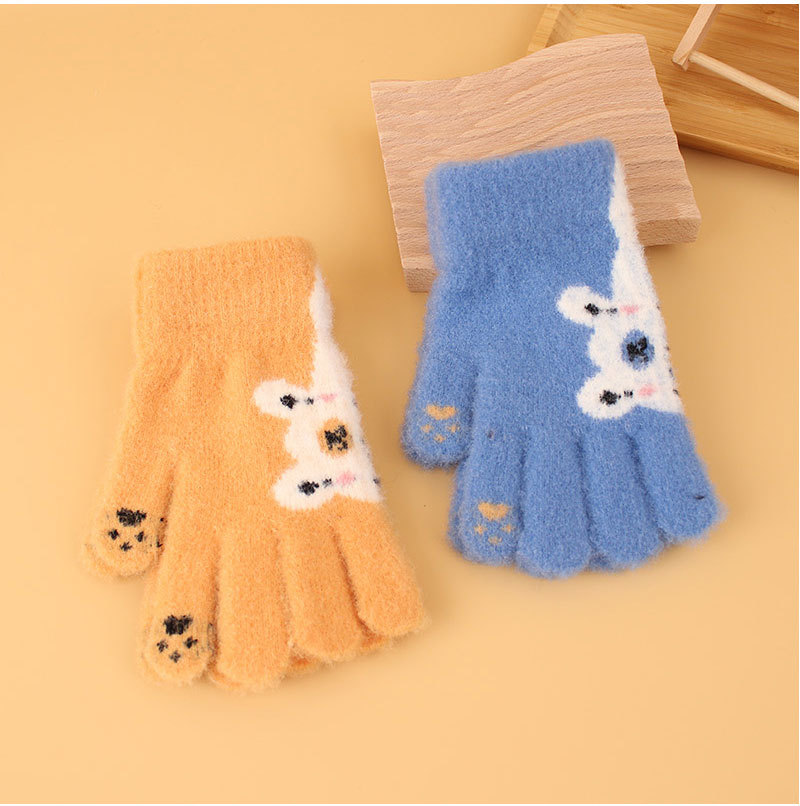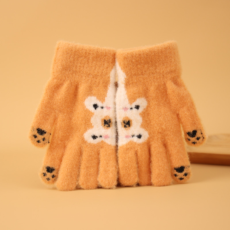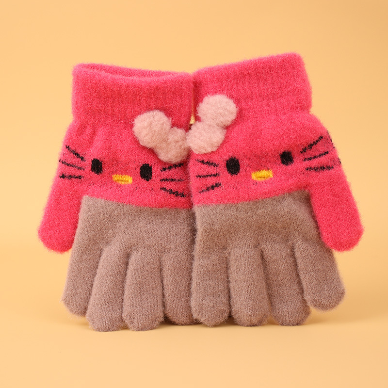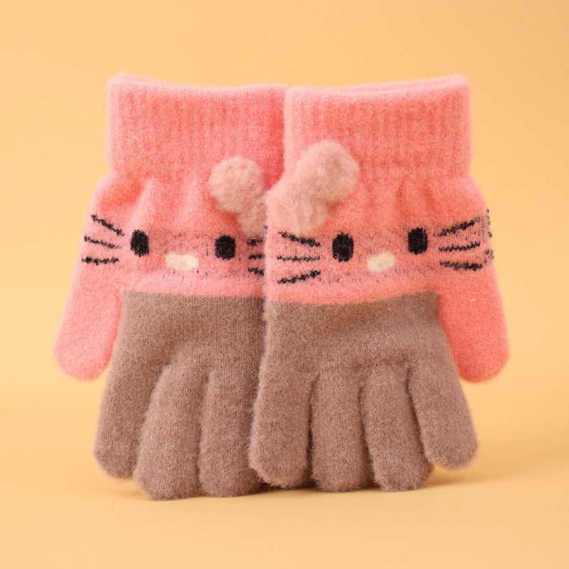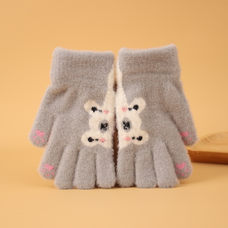 어린이 장갑 겨울 4-10세 따뜻한 초등학생 귀여운 만화 곰 니트 장갑 부드럽고 방한