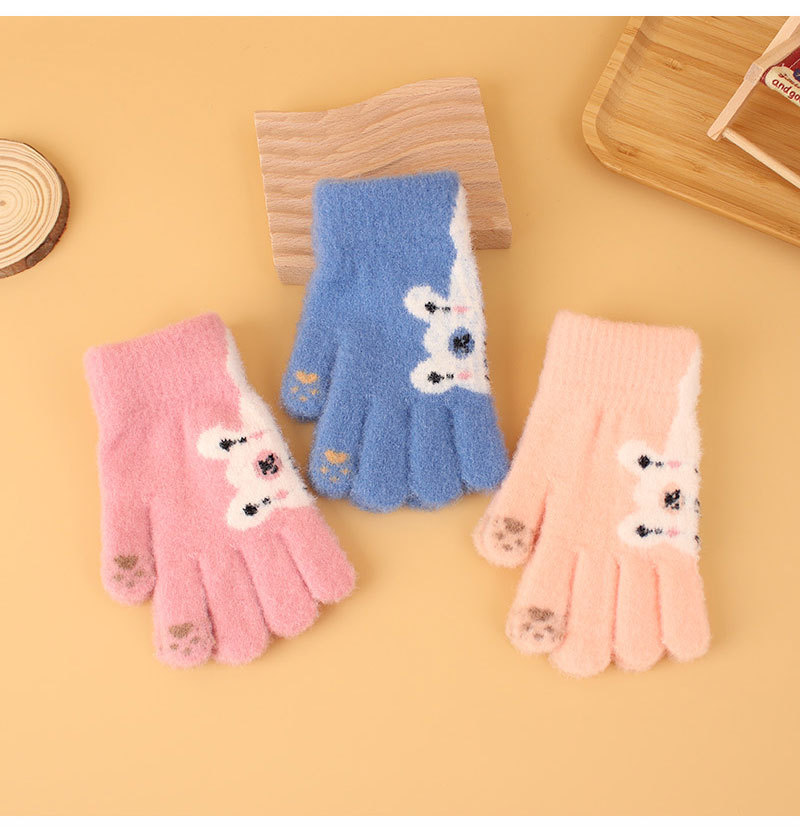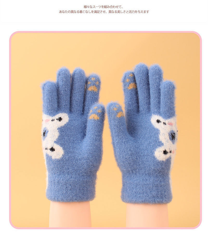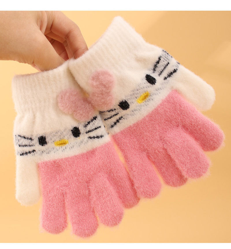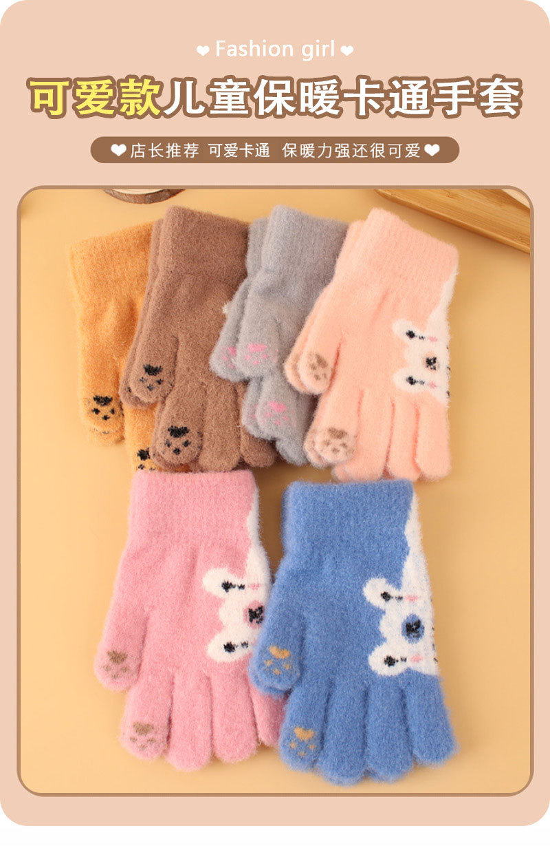 어린이 장갑 겨울 4-10세 따뜻한 초등학생 귀여운 만화 곰 니트 장갑 부드럽고 방한스토어 가기
