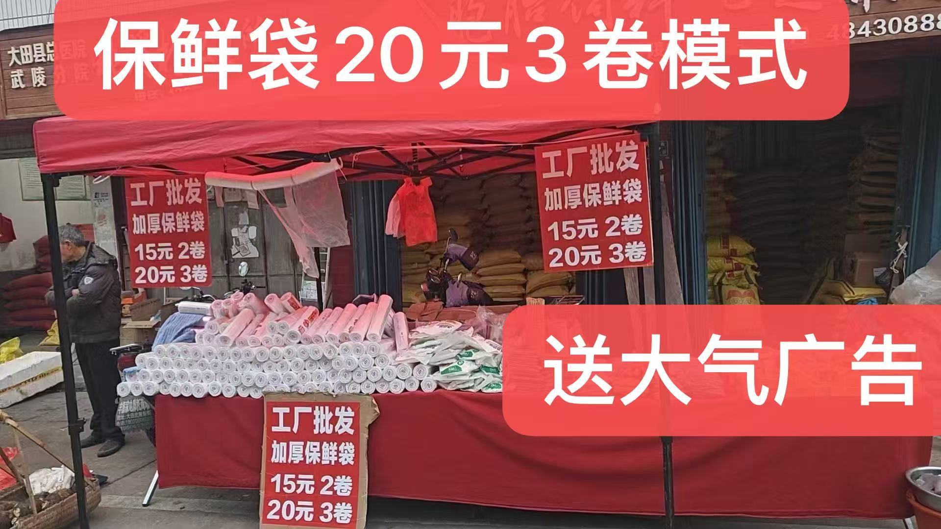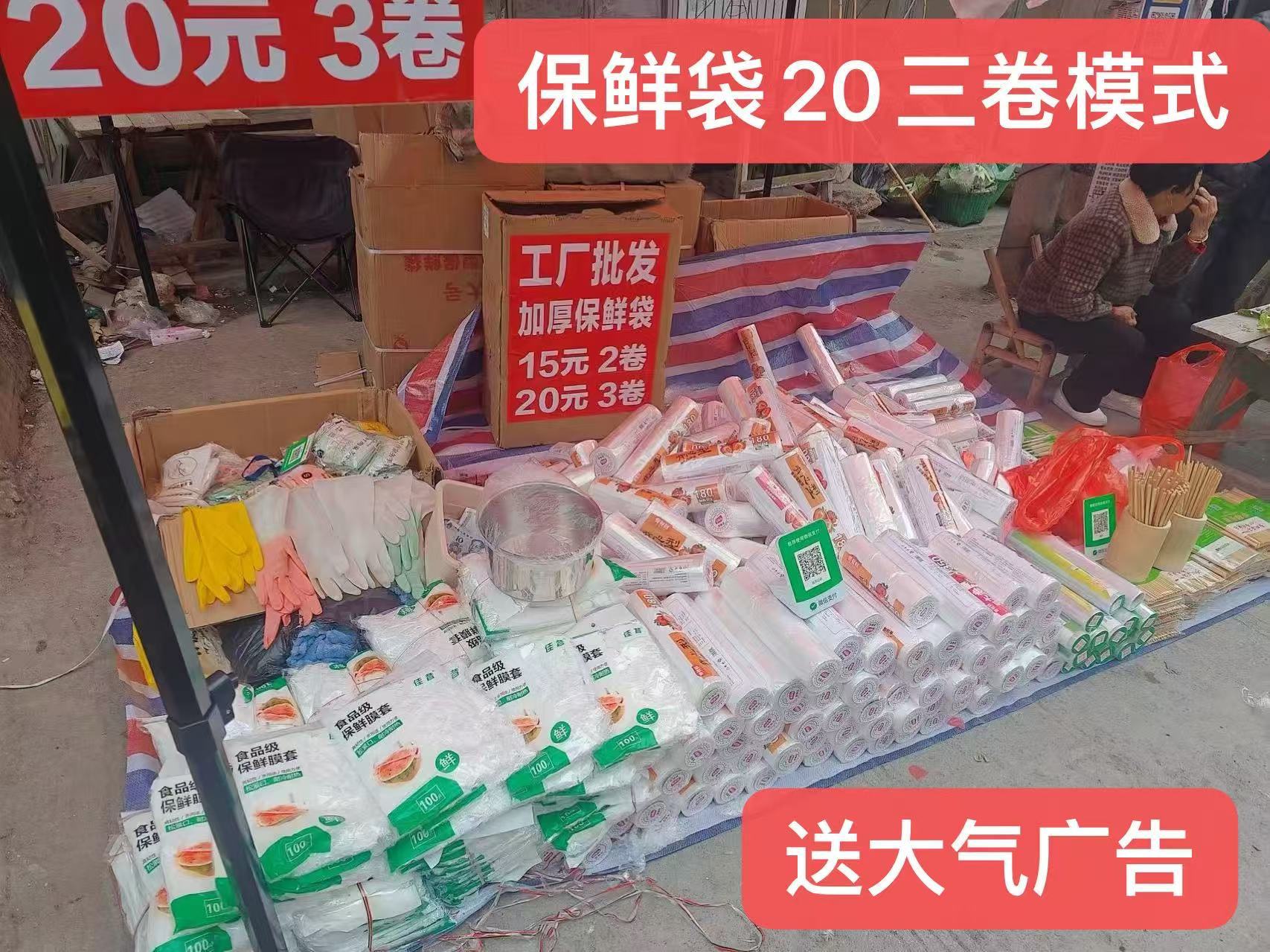 地摊展会20元三卷模式保鲜膜保鲜袋,保鲜膜保鲜袋家家户户都喜爱,适合在赶集在菜市场小区门口卖,送大气广告,U盘录音,长期靠地回头客多,加厚加大卷,PE食品级,我们都是自家工厂生产,价格优势,量大价格更优,跟多家快运直达物流合作运费更优,两广地区今天发明天到。。。。。。