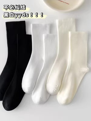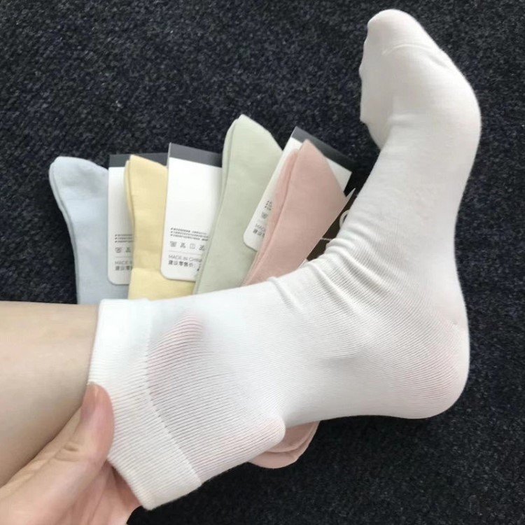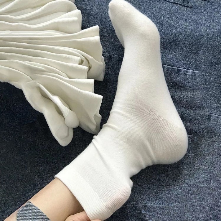 여성용 흰색 중목 양말, 여름용 얇은 학생용 단색 스타킹, 순면 검정색 긴 양말, 땀 흡수 및 항균 기능스토어 가기