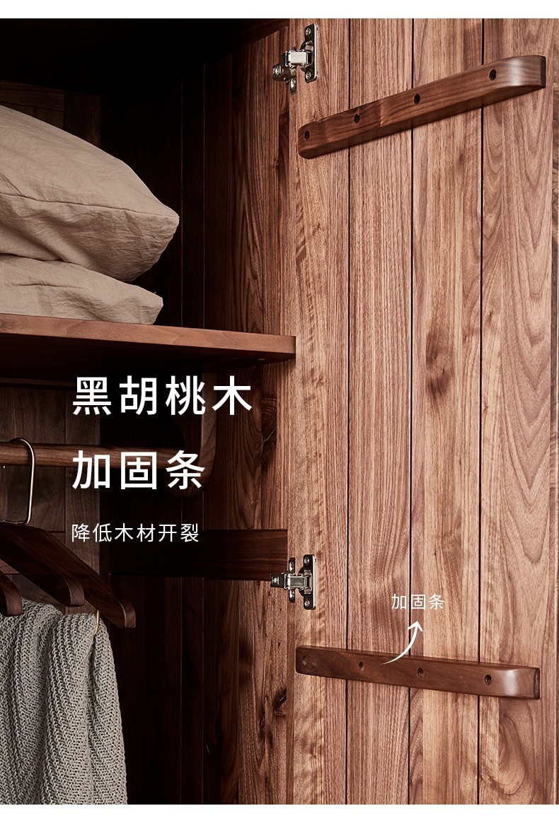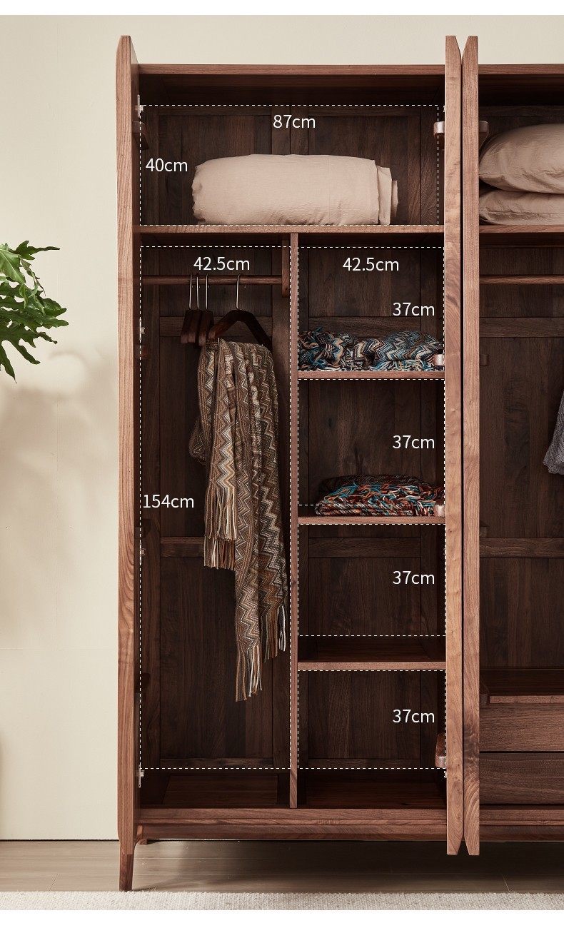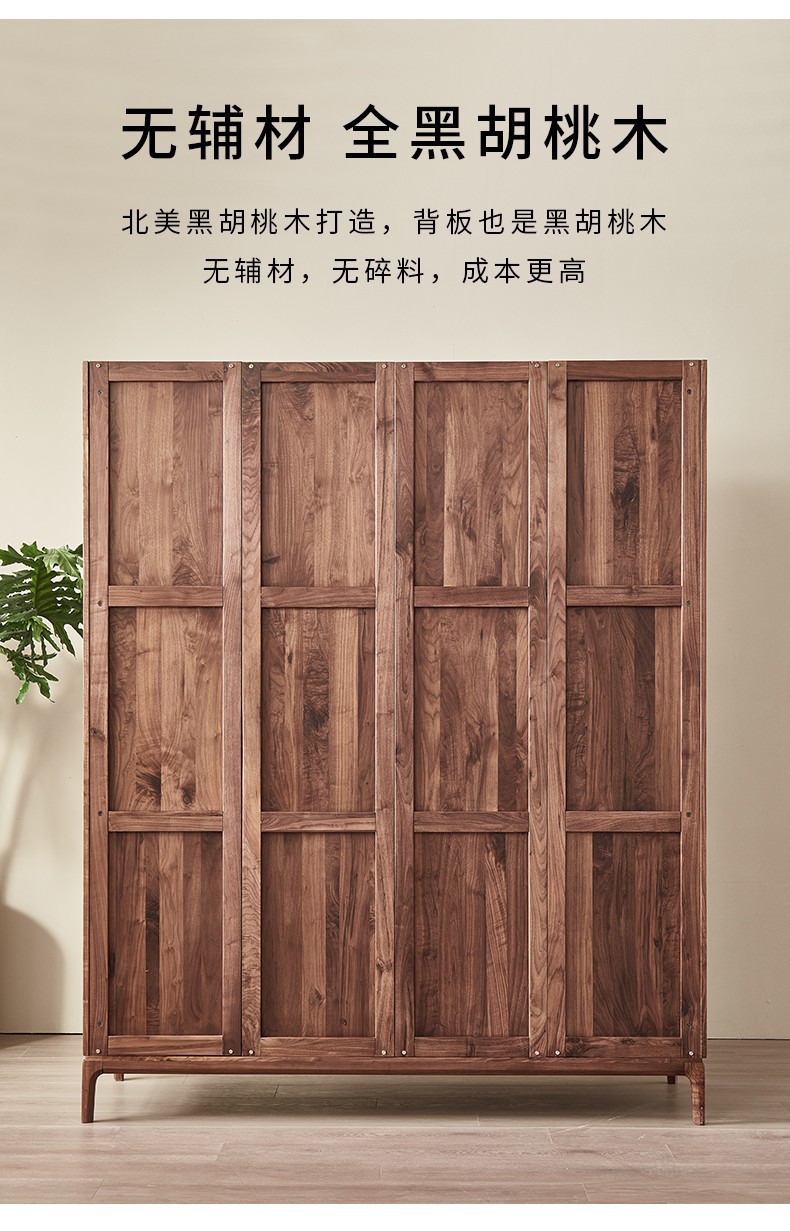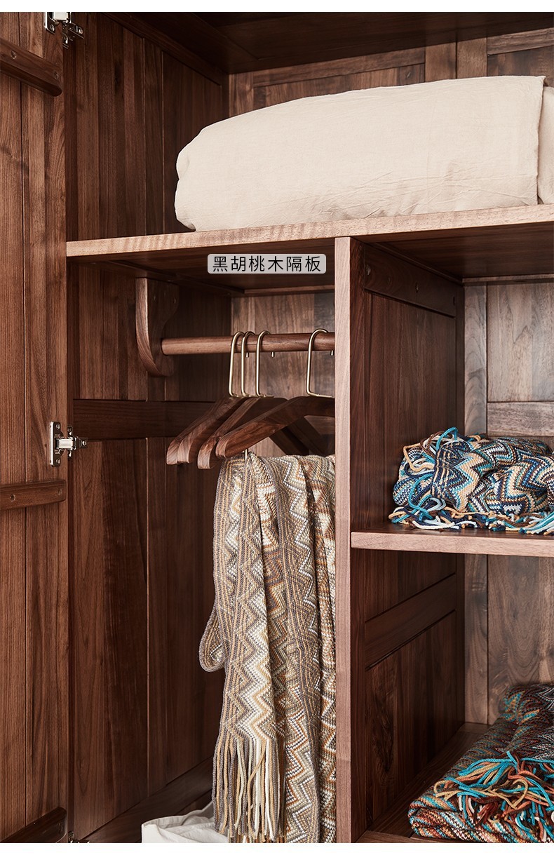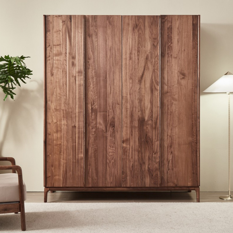 북미 블랙 월넛 옷장 현대 간단한 전체 단단한 나무 침실 대형 옷장 플랫 오프닝 일본식 스토리지 캐비닛