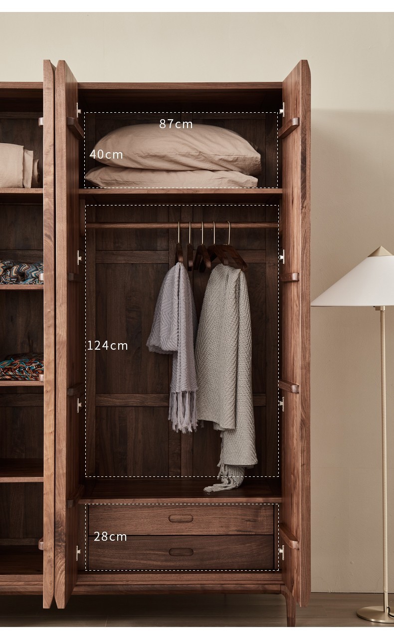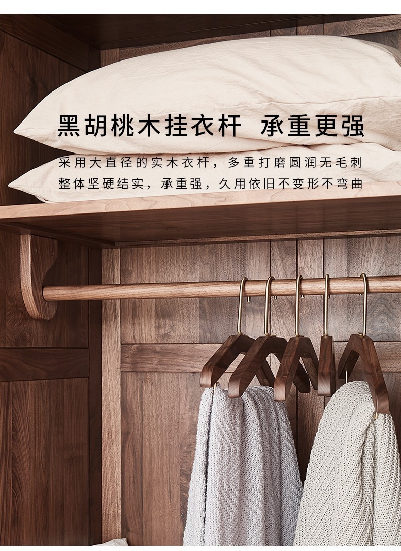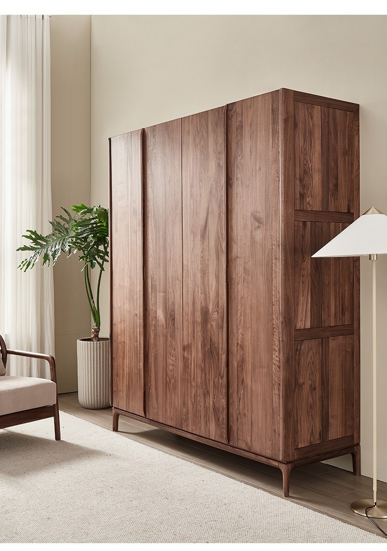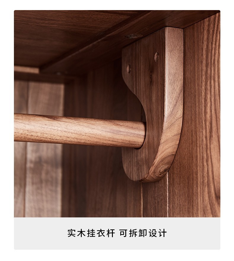 북미 블랙 월넛 옷장 현대 간단한 전체 단단한 나무 침실 대형 옷장 플랫 오프닝 일본식 스토리지 캐비닛