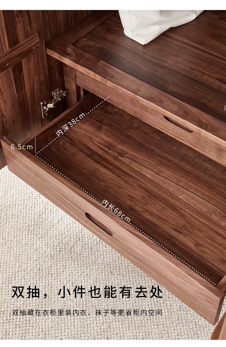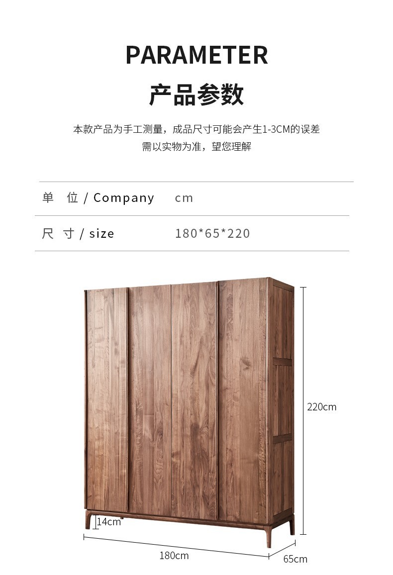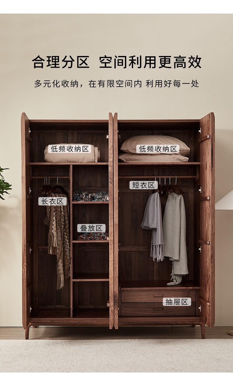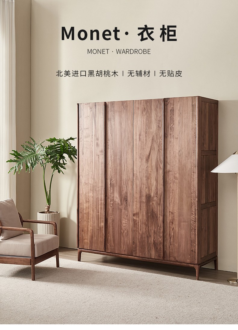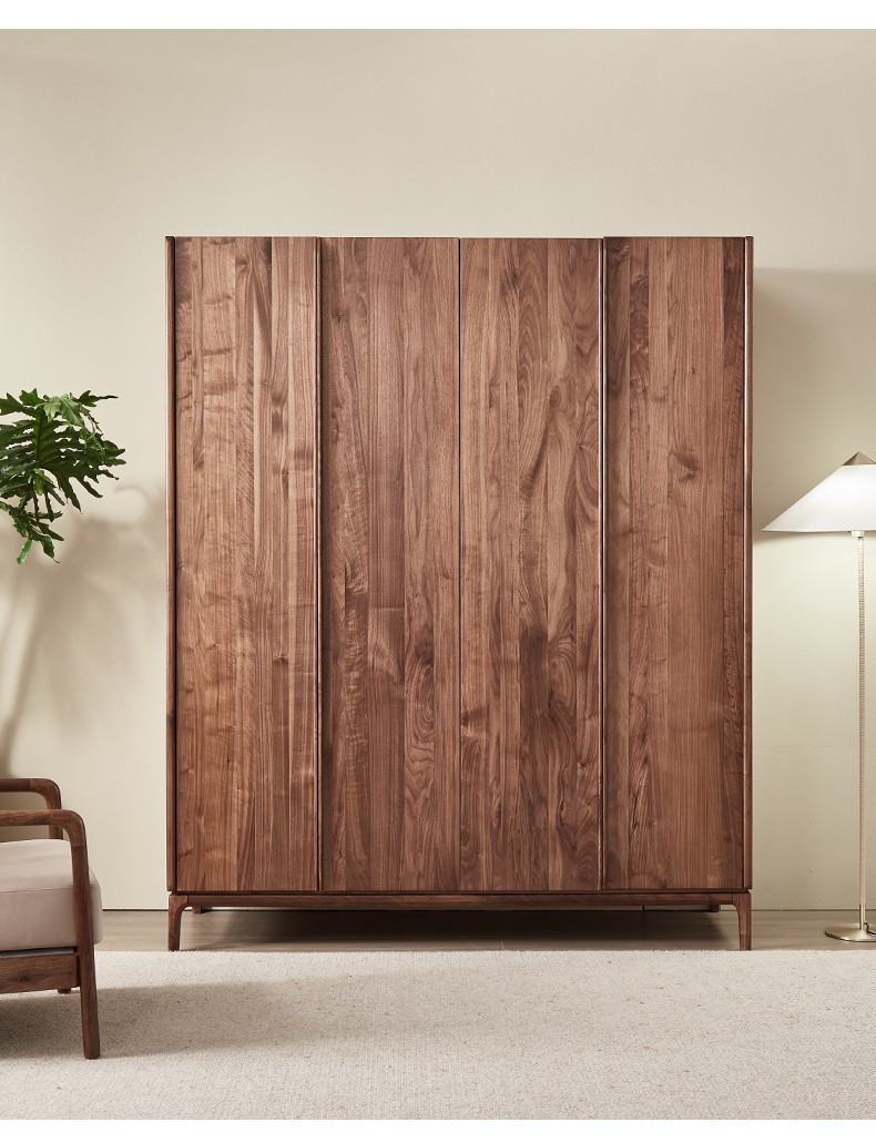 북미 블랙 월넛 옷장 현대 간단한 전체 단단한 나무 침실 대형 옷장 플랫 오프닝 일본식 스토리지 캐비닛