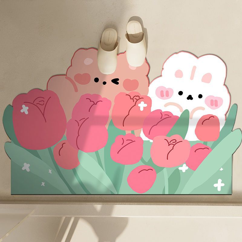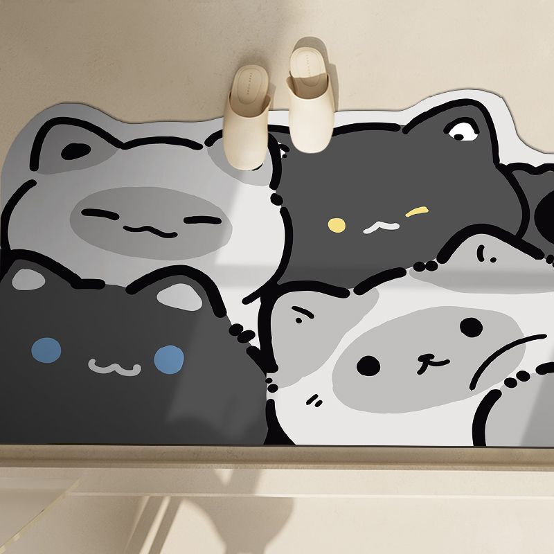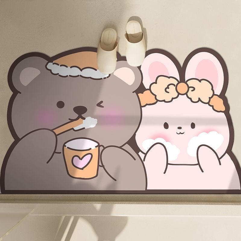 귀여운 만화 욕실 바닥 매트 화장실 문 흡수성 미끄럼 방지 발 매트 빠른 건조 간편한 관리 규조 진흙 바닥 매트스토어 가기