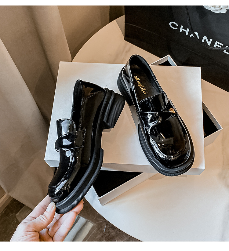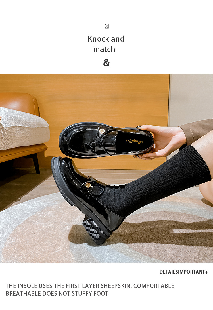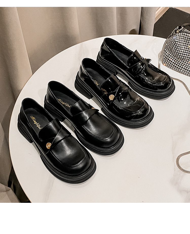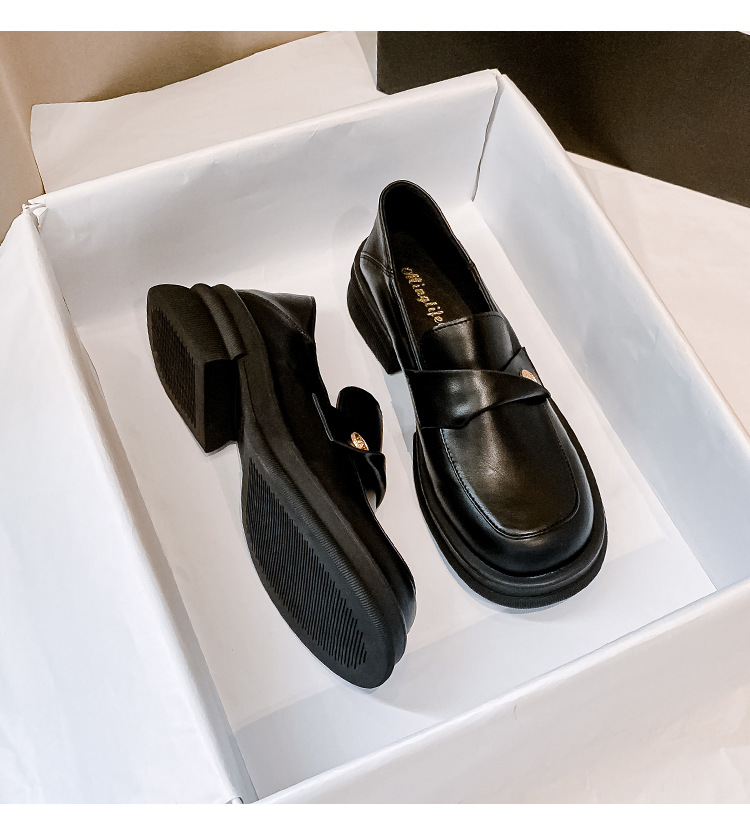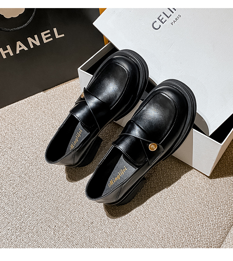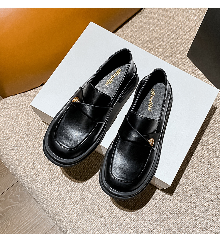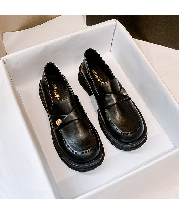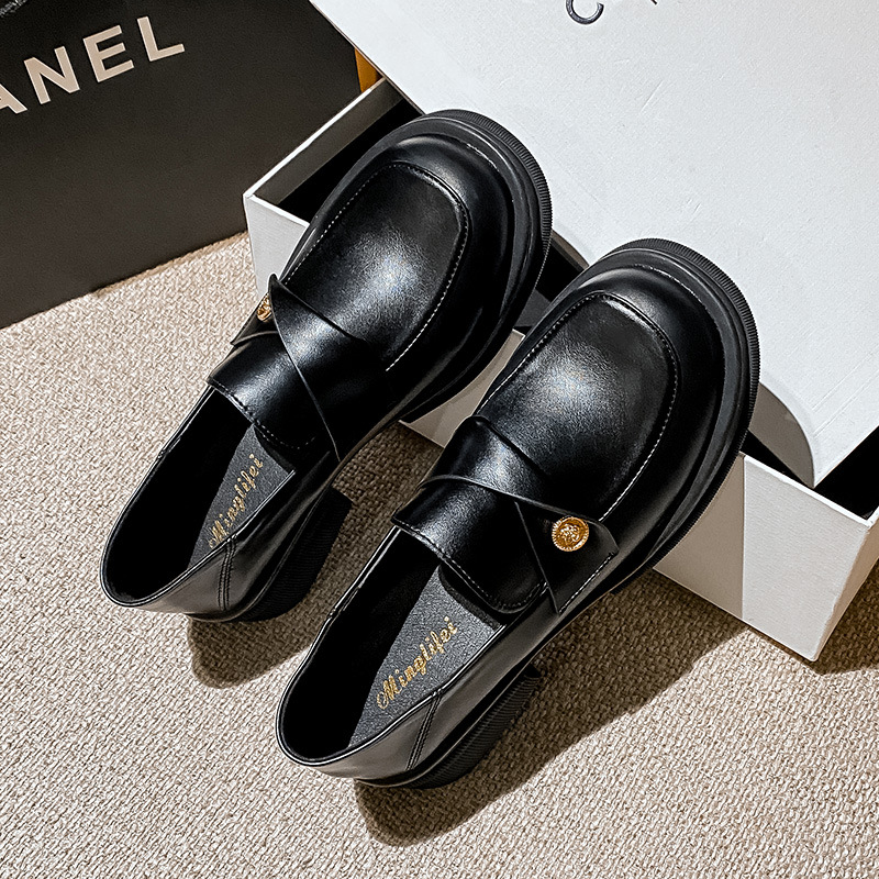 여성을 위한 작은 금화 두꺼운 밑창 슬립온 로퍼, 레트로 슬립온 작은 가죽 신발, 봄과 가을 여성을 위한 슬립온 로퍼