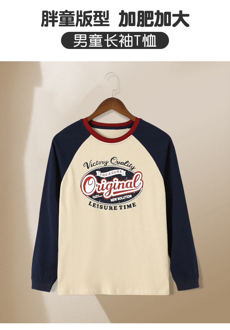 뚱뚱한 남자아이 긴팔 티셔츠 2025 신상 미국 스타일 루즈핏 중대형 아동 청소년 남아 이너웨어 원피스 도매스토어 가기