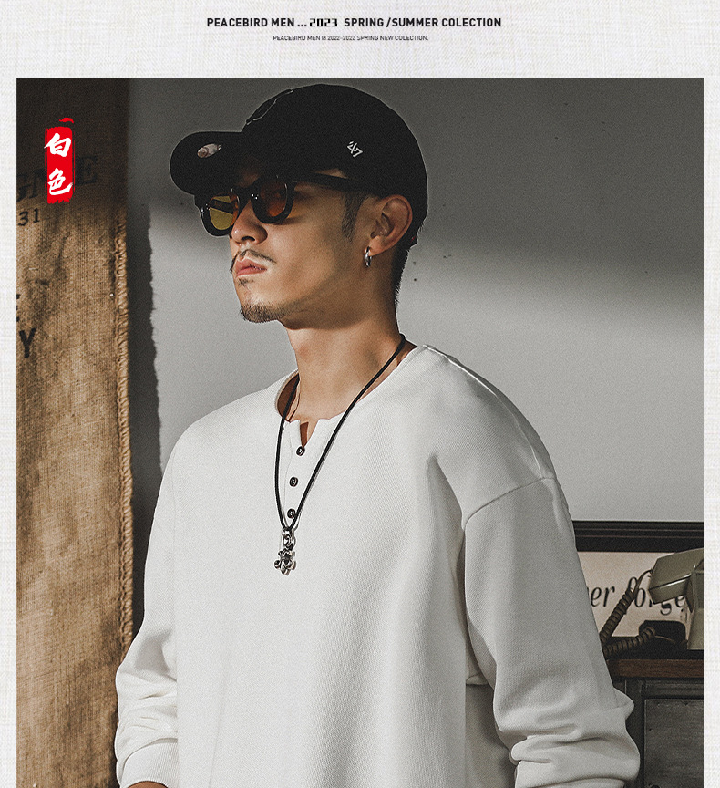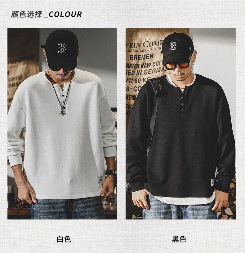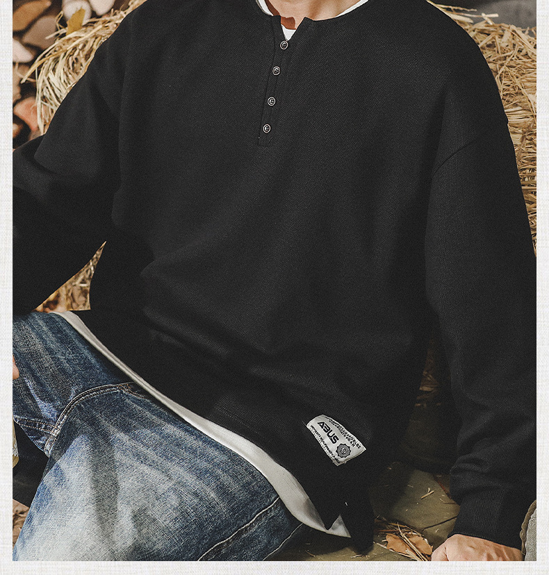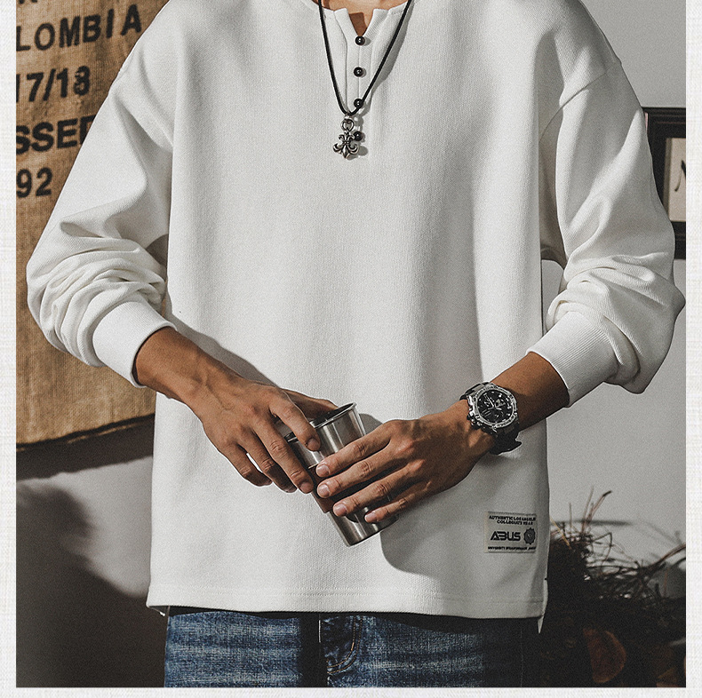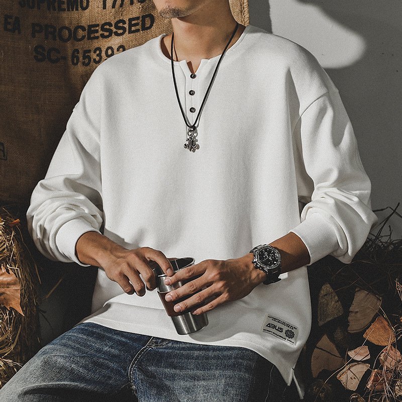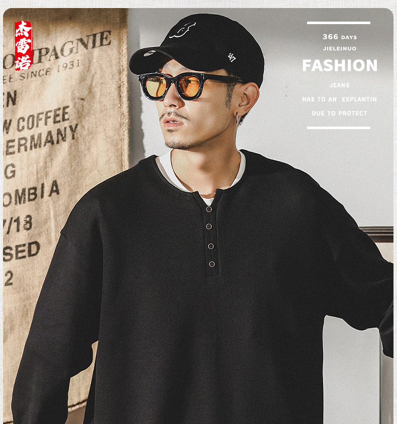 미국 320g 무거운 스웨터 남자의 가을 2023 패션 브랜드 영국 신사 헨리 칼라 최고 남성의 새로운 기능