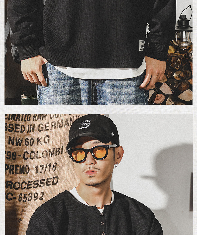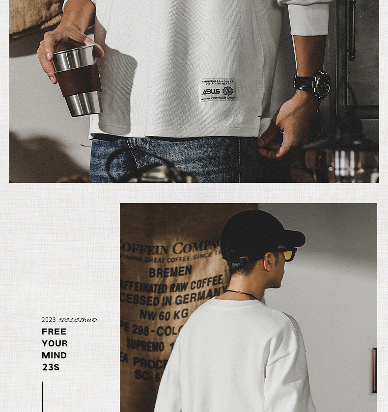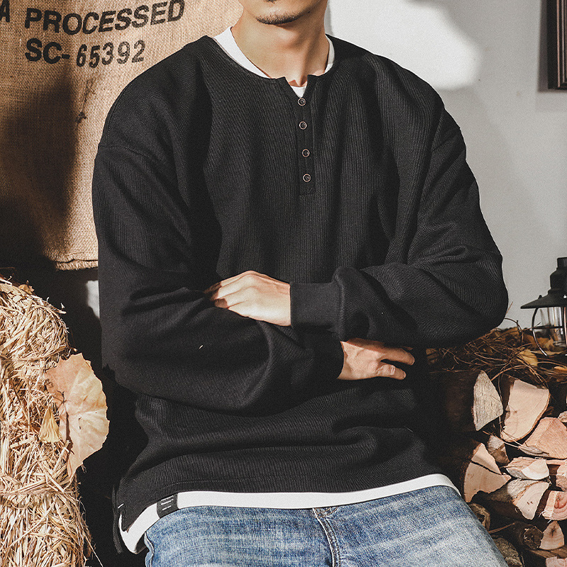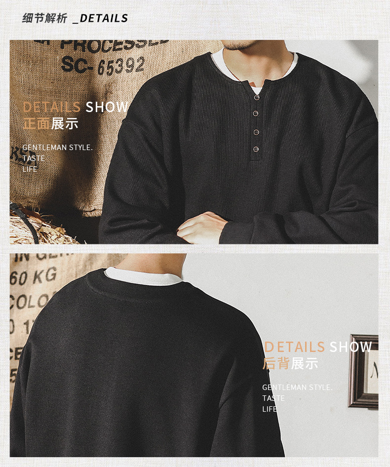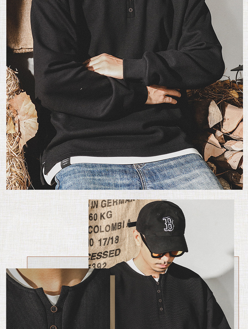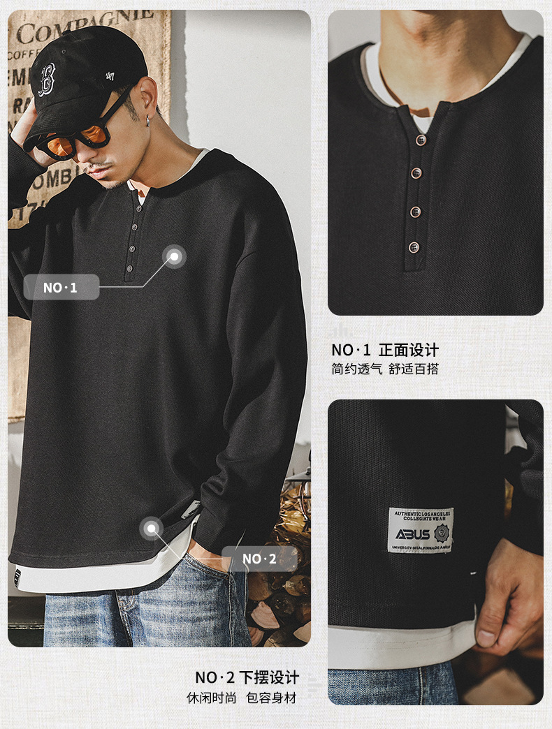 미국 320g 무거운 스웨터 남자의 가을 2023 패션 브랜드 영국 신사 헨리 칼라 최고 남성의 새로운 기능