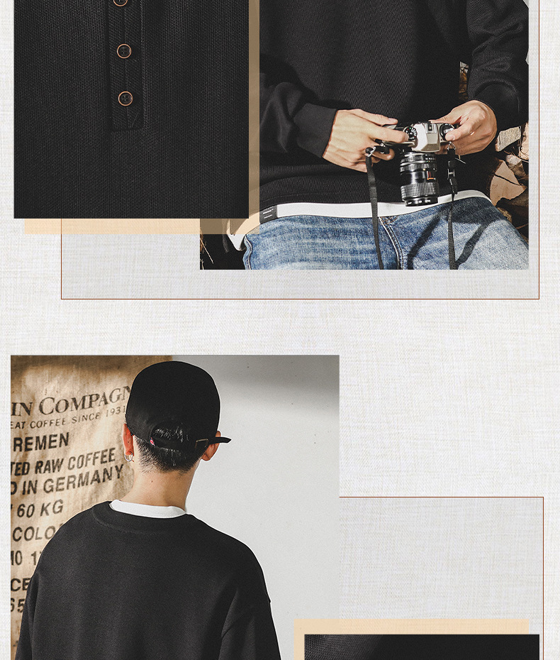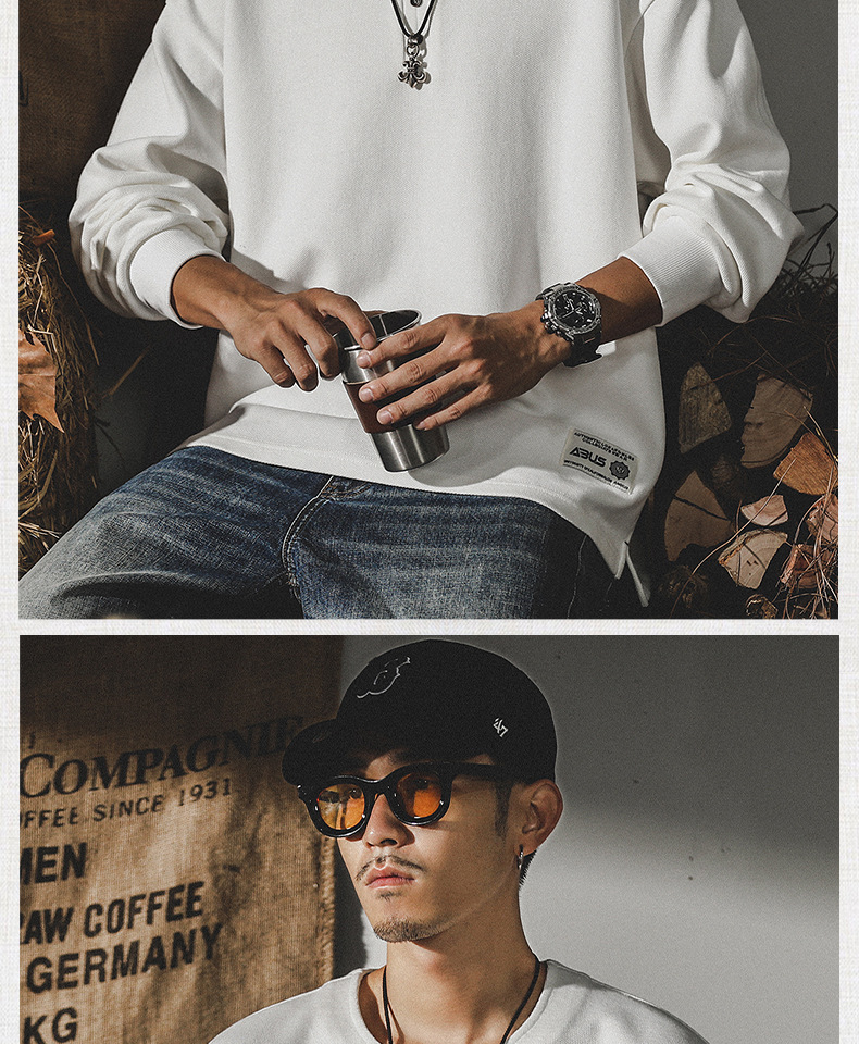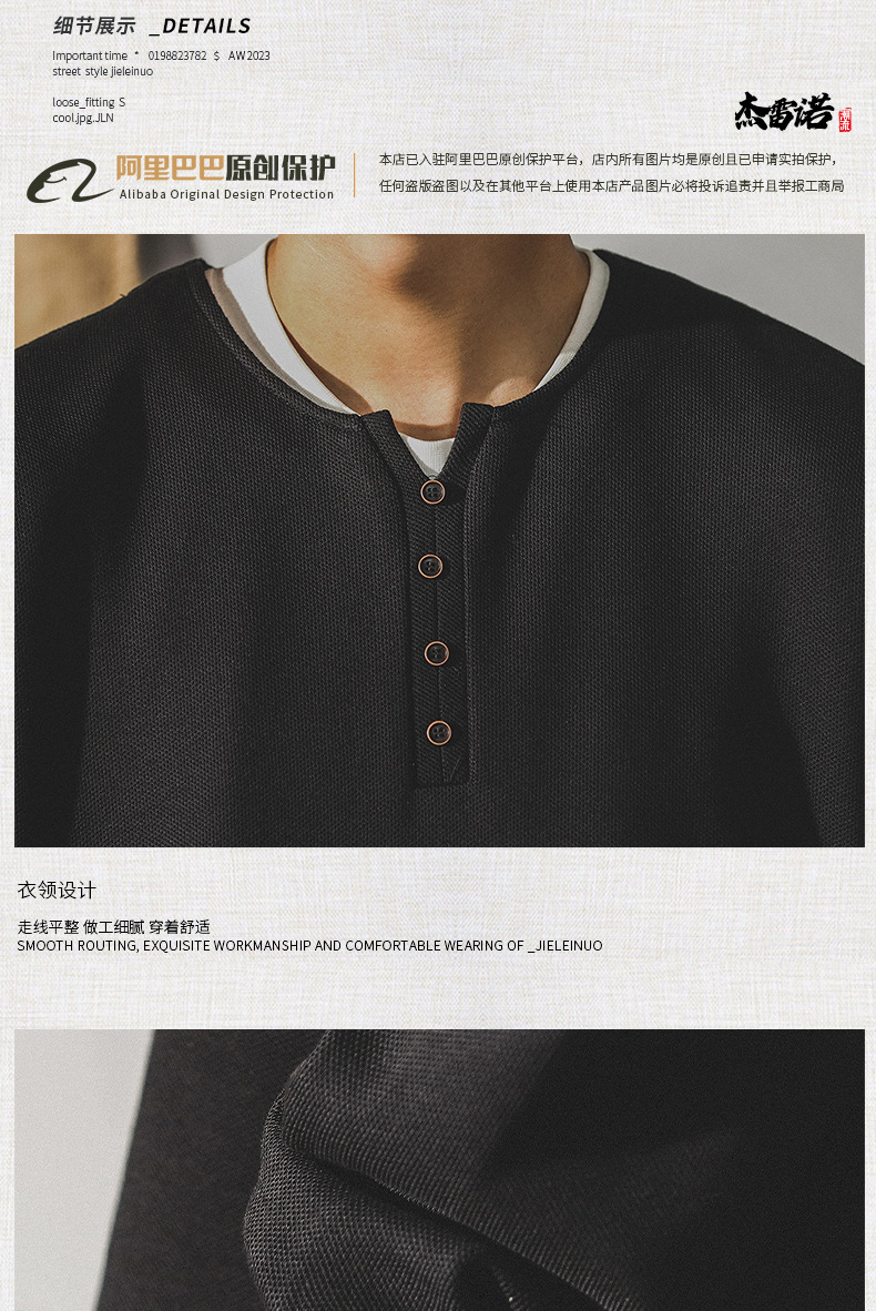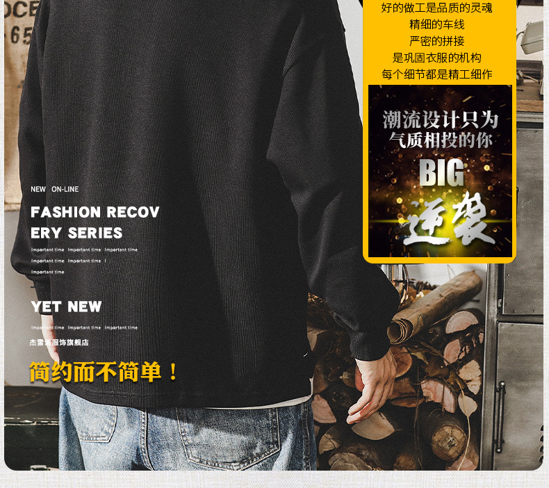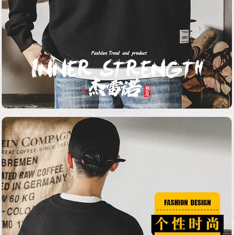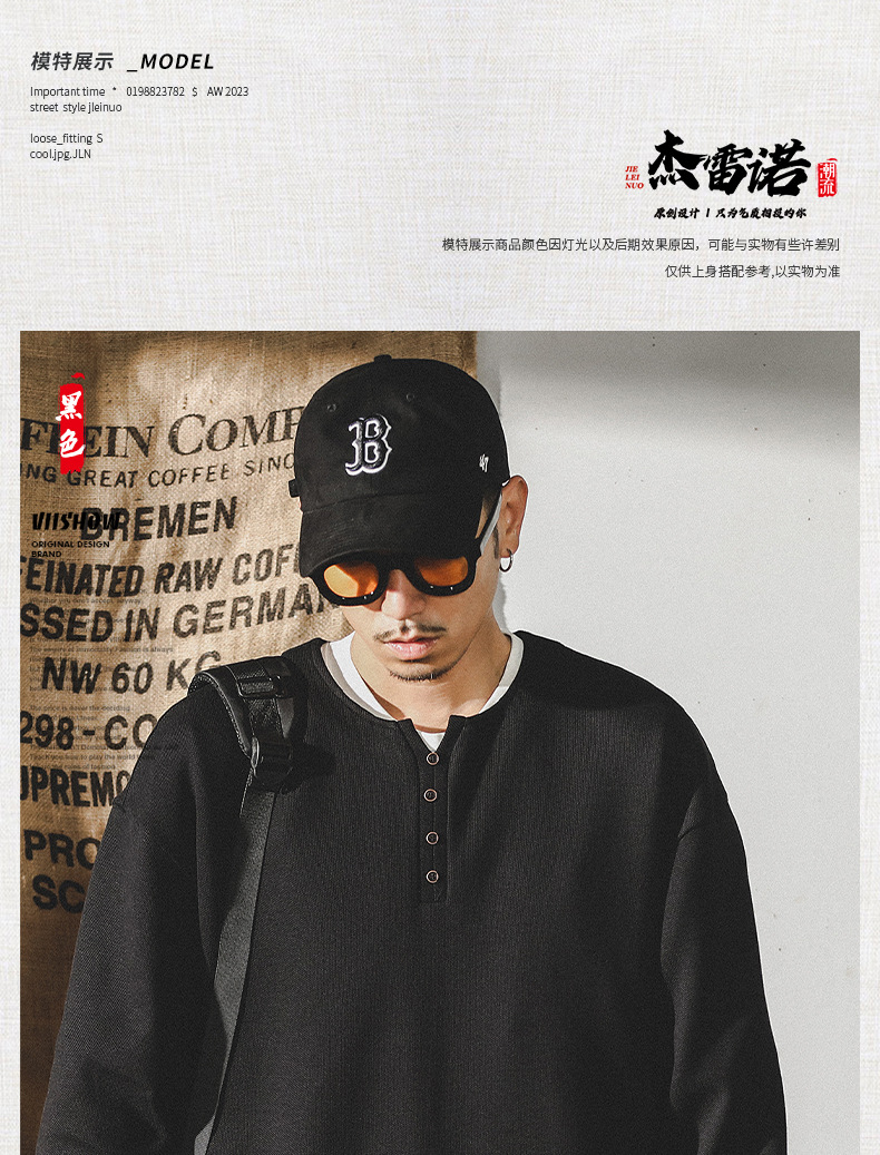 미국 320g 무거운 스웨터 남자의 가을 2023 패션 브랜드 영국 신사 헨리 칼라 최고 남성의 새로운 기능