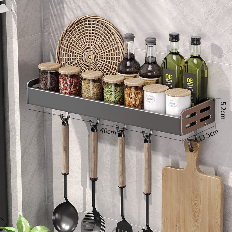 건 그레이 주방 수납 랙 공간 알루미늄 펀치 프리 다기능 가정 용품 조미료 보관 랙 나이프 홀더 벽걸이 형스토어 가기