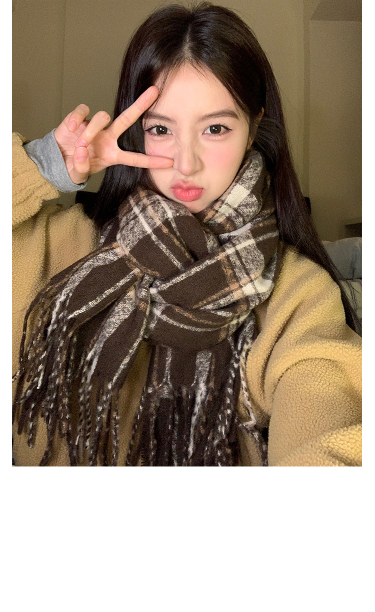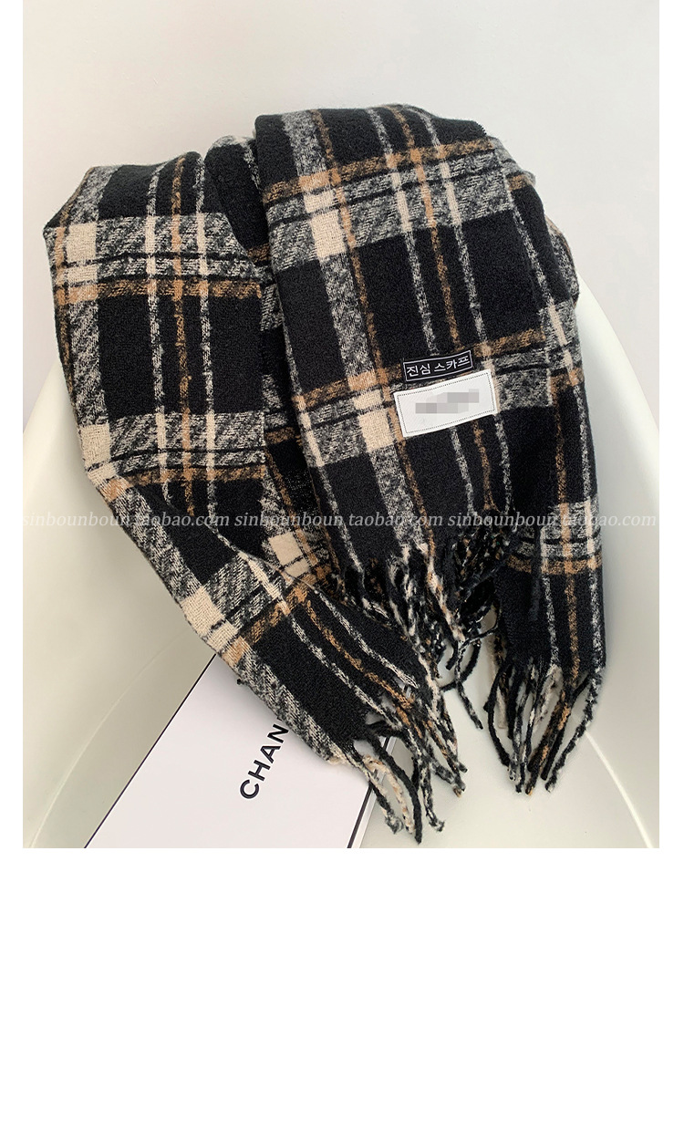 Xin Bang 커플 술 스카프 겨울 격자 무늬 숄 학생 빈티지 두꺼운 따뜻한 대비 색상 격자 무늬 스카프 여성스토어 가기