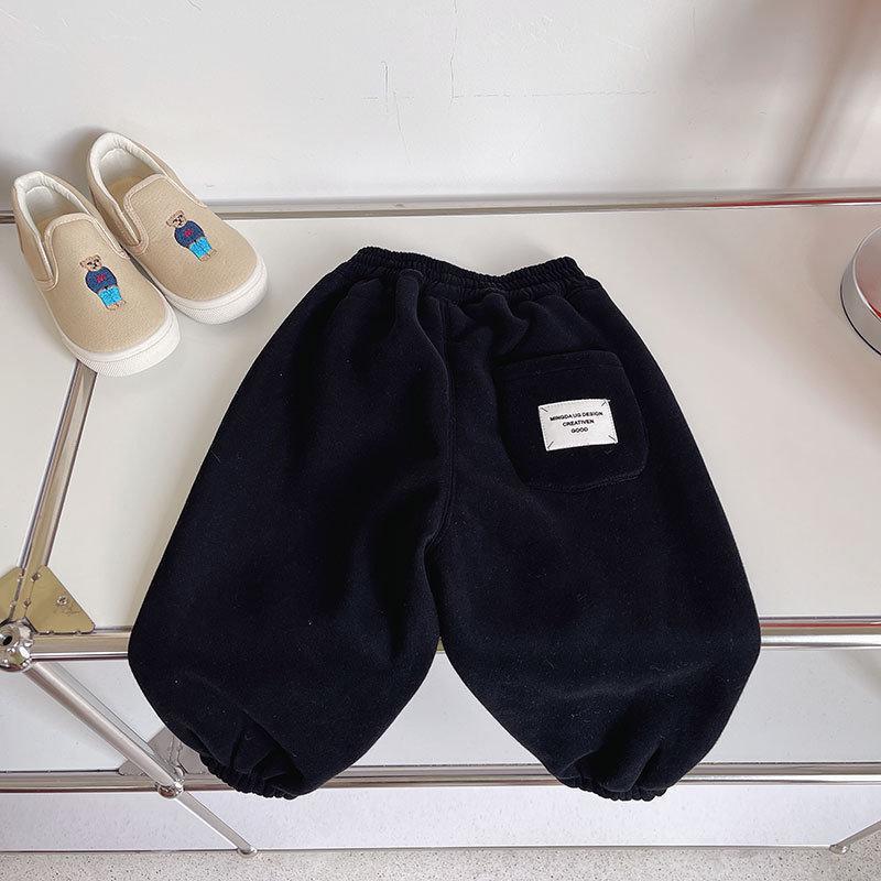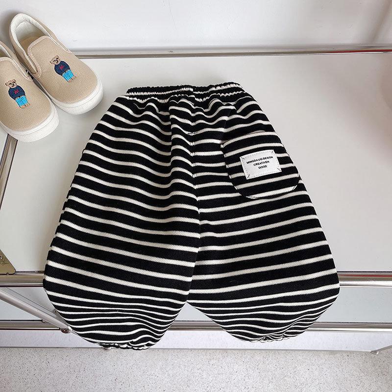 소년과 소녀 더블 레이어 기모 스포츠 바지 가을과 겨울 두꺼운 유행 스트라이프 느슨한 바지 어린이 아기 소년 운동복 바지