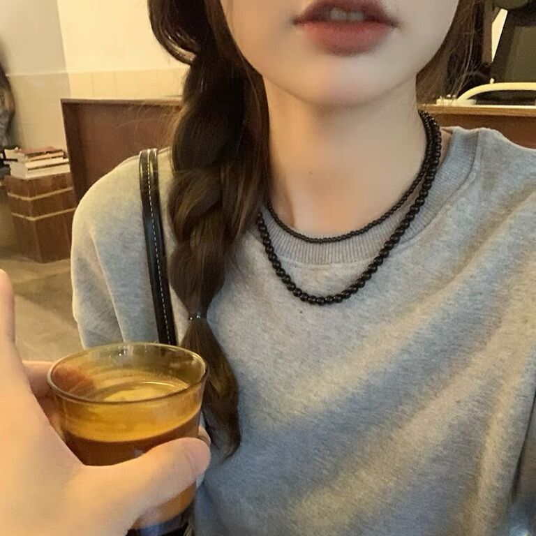 고급 흑진주 feve 같은 스타일의 틈새 디자인 단순한 개성 복고풍 다재다능한 기질 목걸이 쇄골 체인스토어 가기