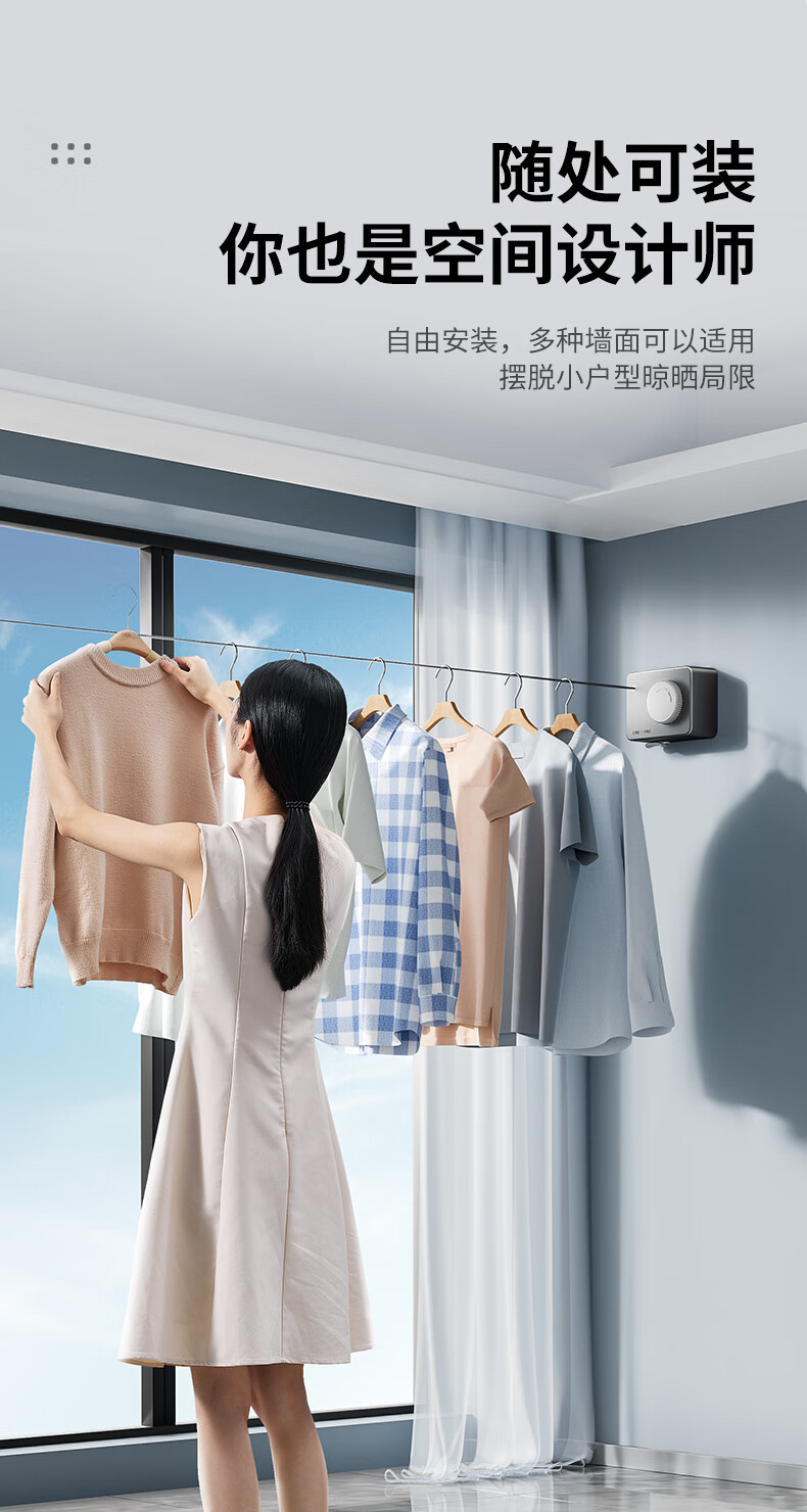 건 그레이 보이지 않는 수축 빨랫줄 실내 비 펀치 욕실 의류 건조 유물 발코니 와이어 로프 건조 랙스토어 가기
