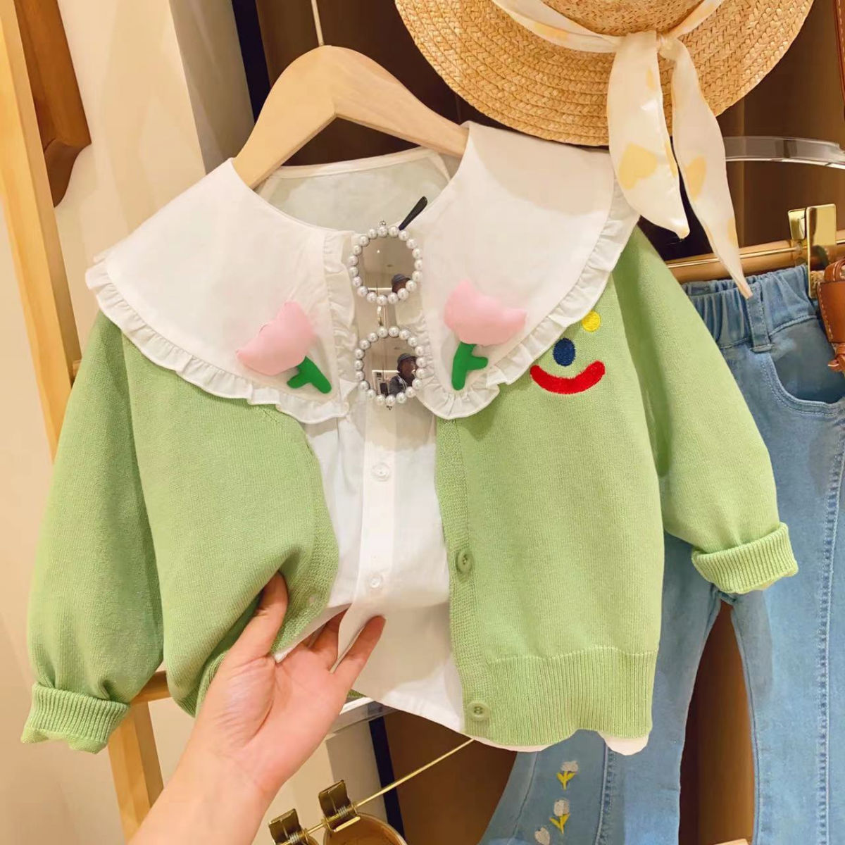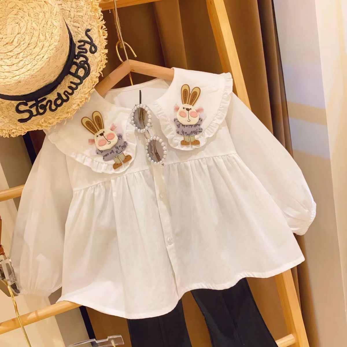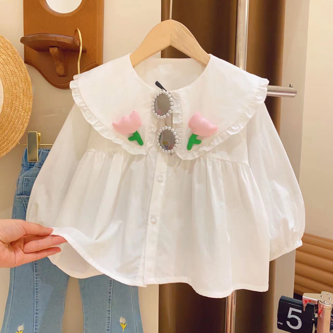 여자 흰 셔츠 봄과 가을 2023 새로운 어린이 한국 스타일 서양 긴 소매 옷깃베이스 셔츠 아기 봄 탑스토어 가기