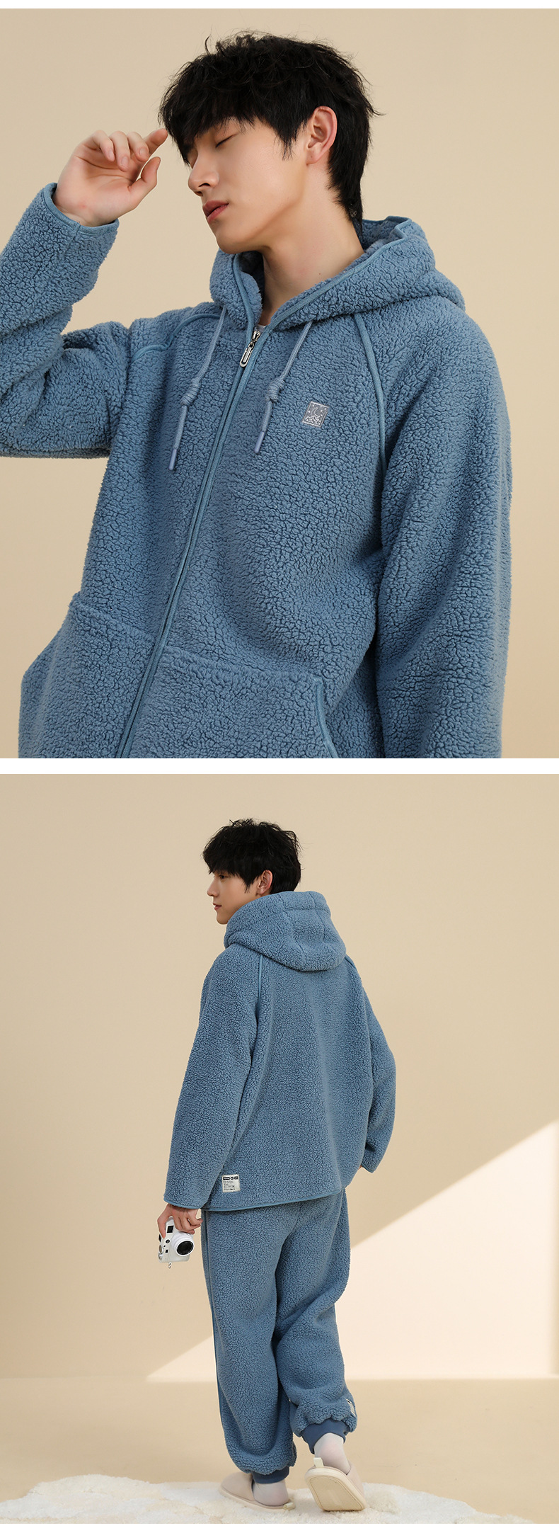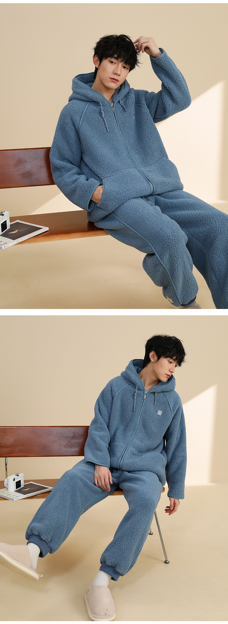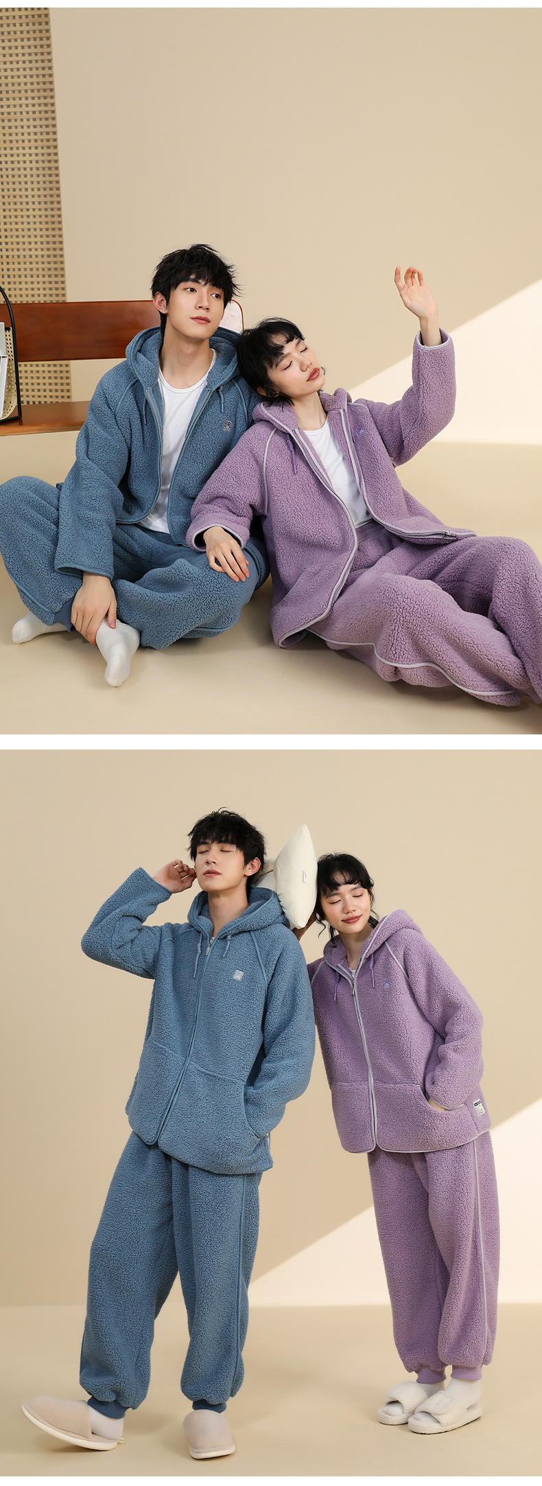 가을과 겨울 새로운 후드 카디건 잠옷 여자의 겨울 커플의 홈 의류 남자의 아웃웨어 기모 두꺼운 따뜻한 세트