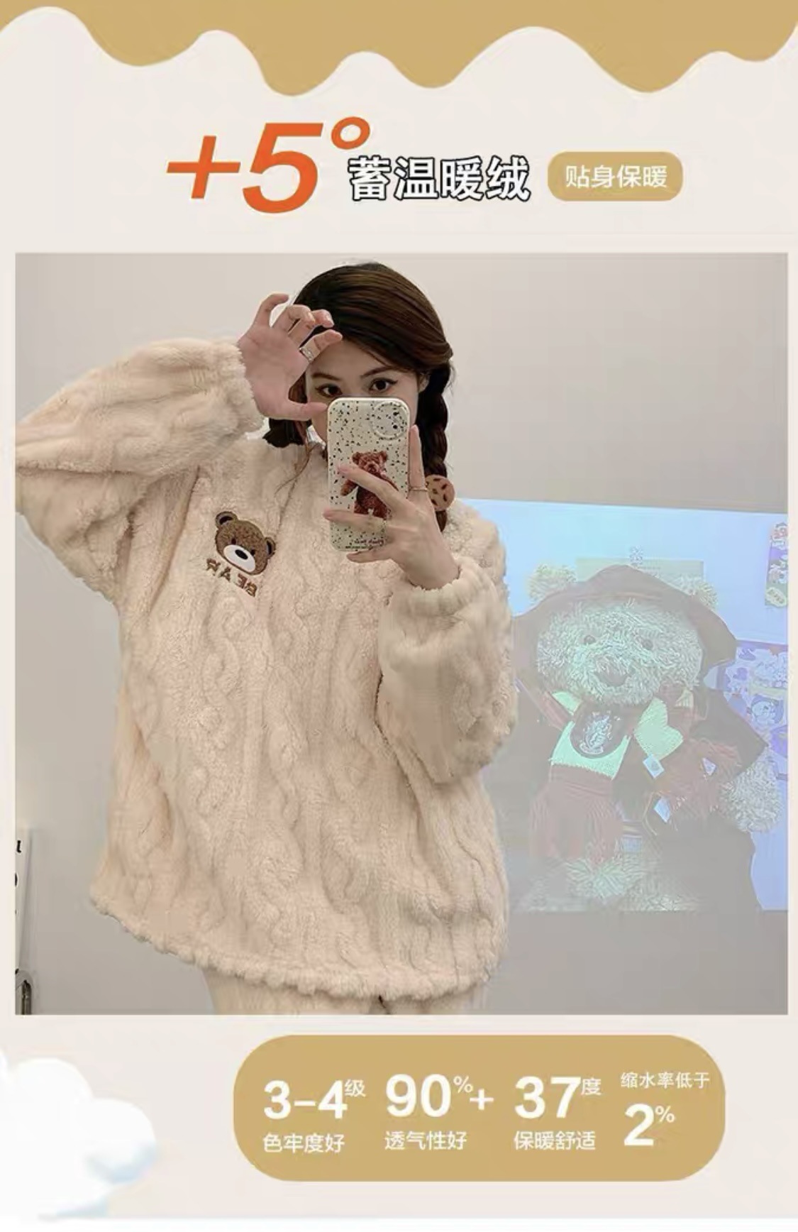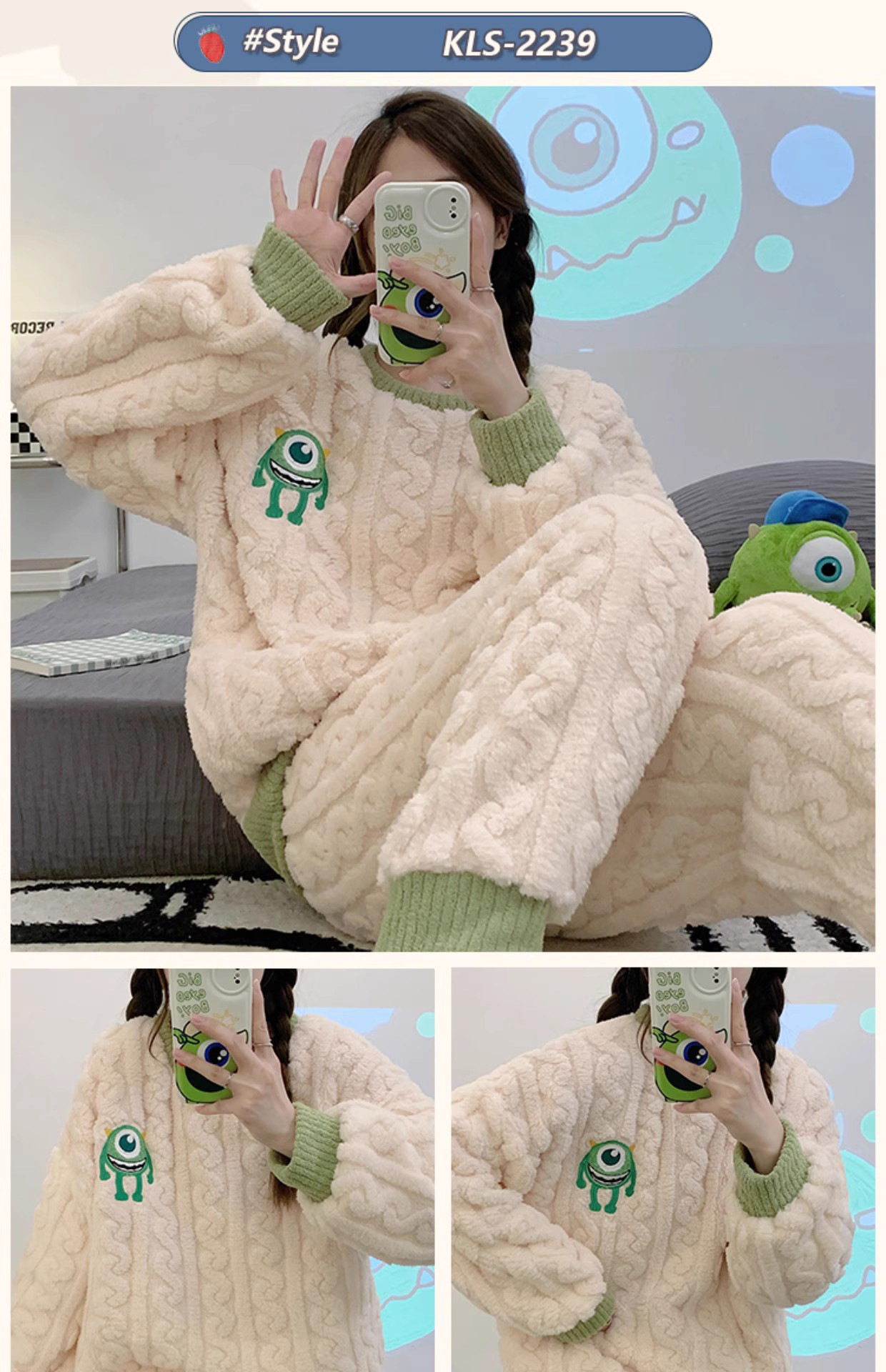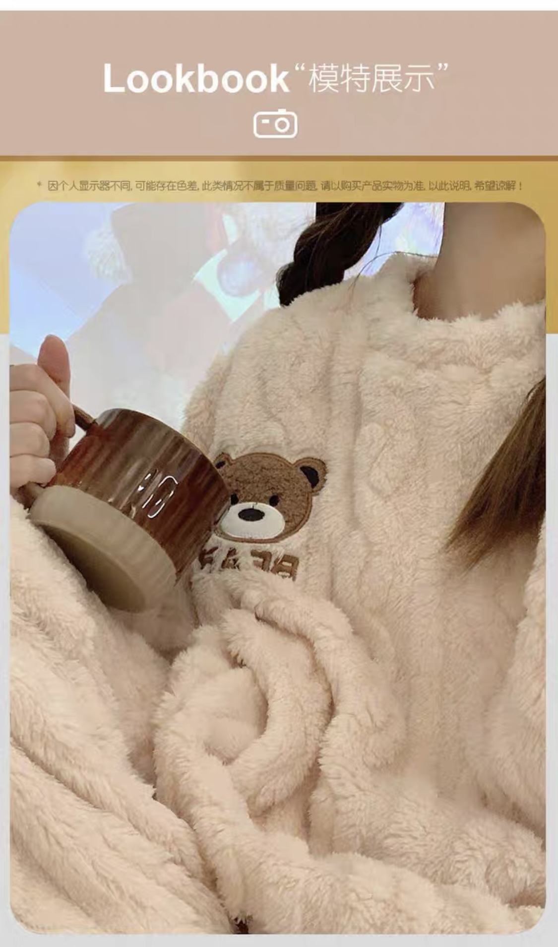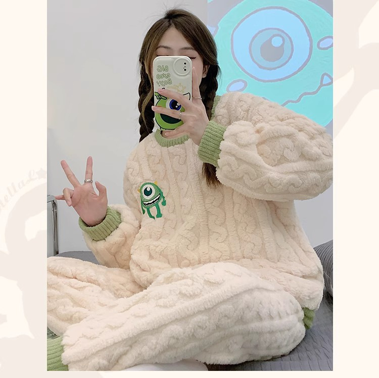 크로스 보더 폭발 잠옷 여성용 긴팔 가을과 겨울 인터넷 연예인 플러시 트위스트 따뜻한 가정복 여성용 달콤한 투피스 세트스토어 가기