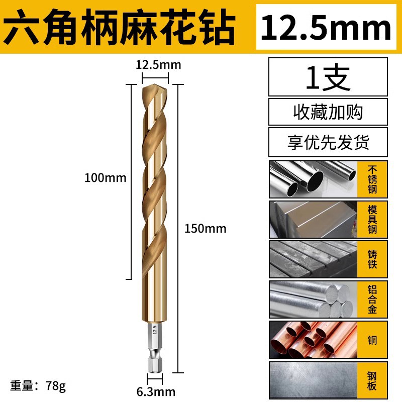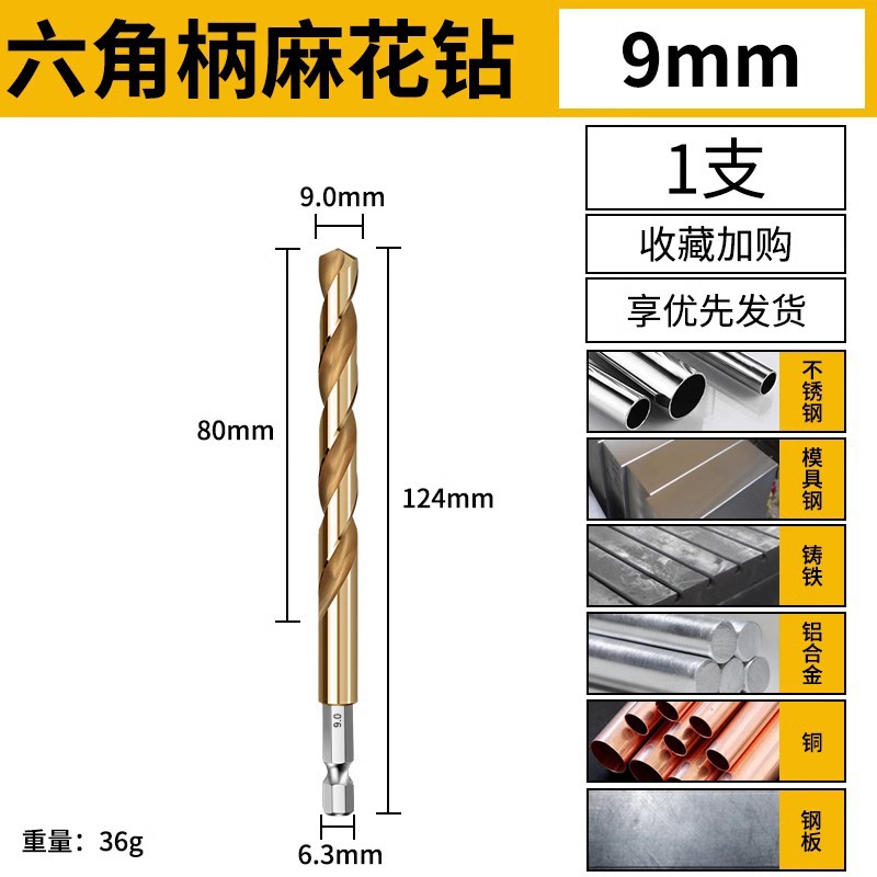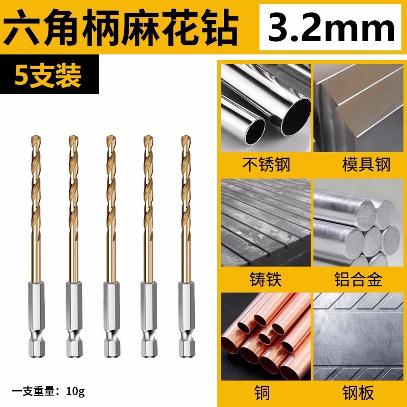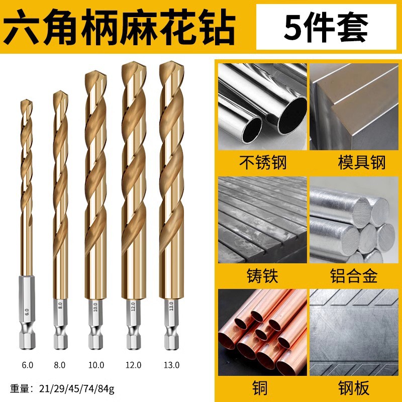 육각 생크 트위스트 드릴 스트레이트 생크 고속 스틸 스테인레스 스틸 금속 특수 구멍 오프너 합금 생크 전기 드릴링