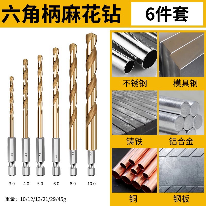 육각 생크 트위스트 드릴 스트레이트 생크 고속 스틸 스테인레스 스틸 금속 특수 구멍 오프너 합금 생크 전기 드릴링스토어 가기