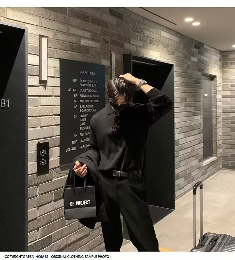 2023 트렌디 브랜드 홍콩 스타일 모든 매치 긴팔 폴로 셔츠 남성용 자수 알파벳 아메리칸 스타일 레트로 느슨한 하프 버튼 스웨터